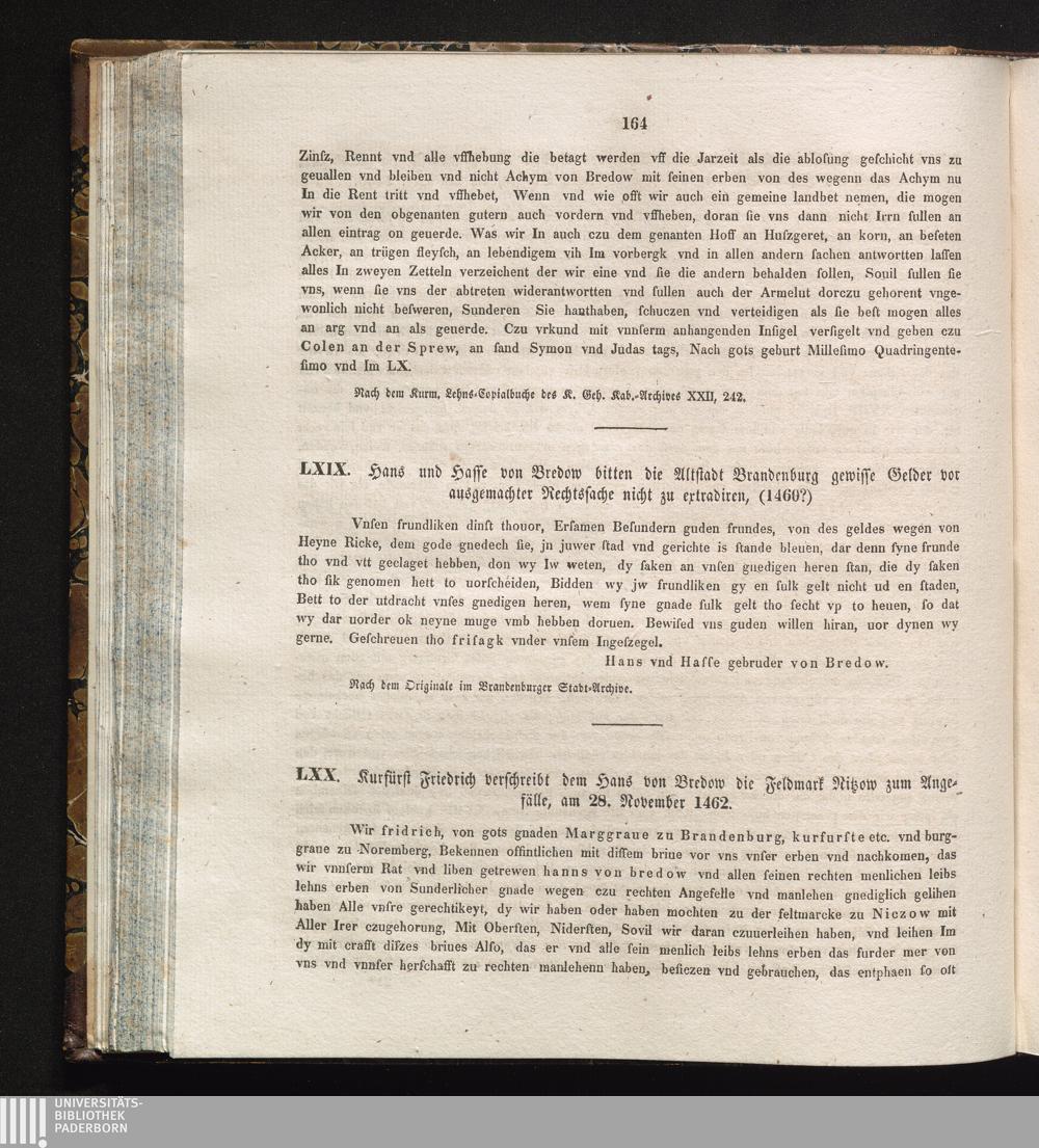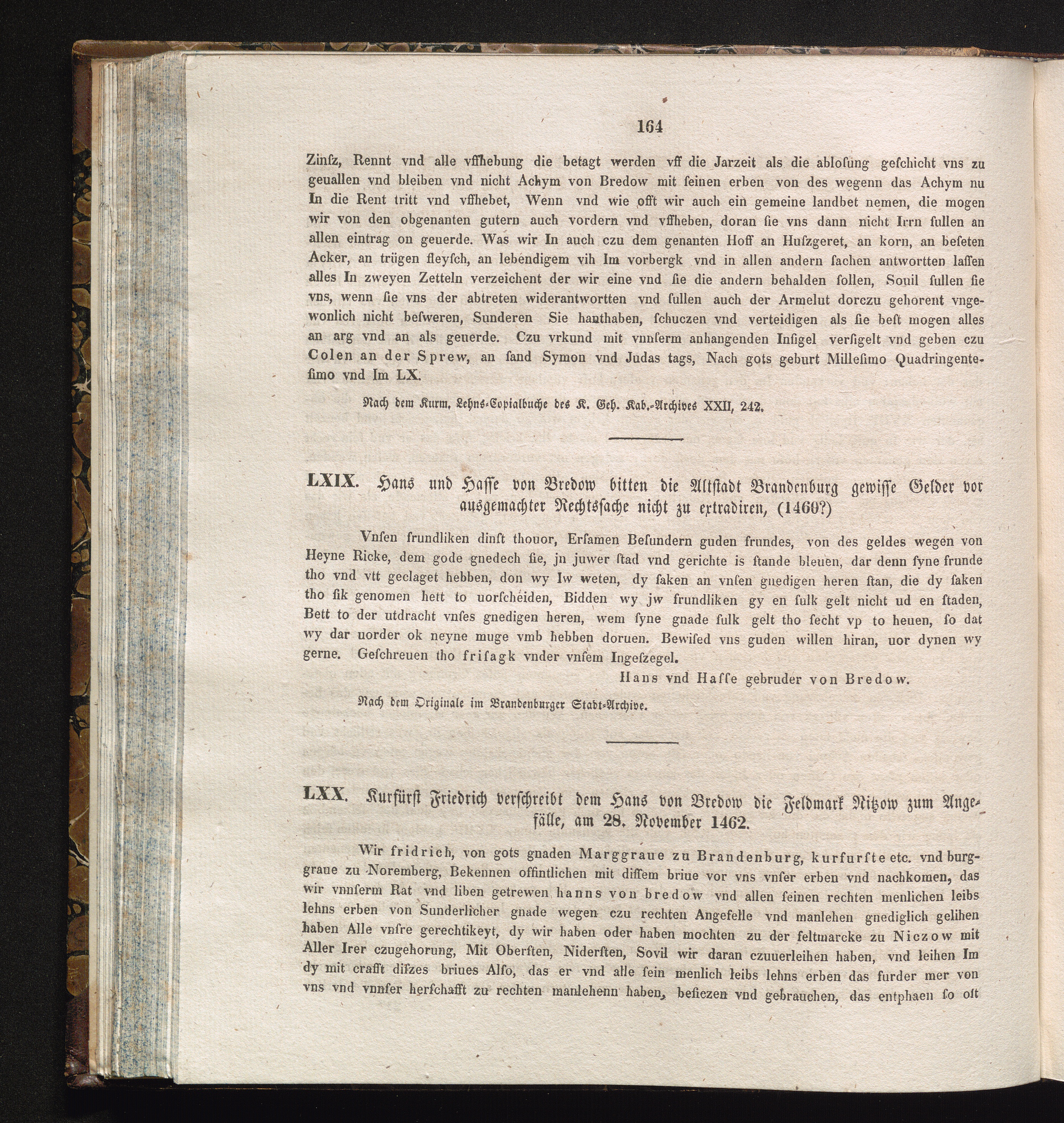 LXX. Kurfürst Friedrich verschreibt dem Hans von Bredow die Feldmark Ritzow zum Angefälle,[...]