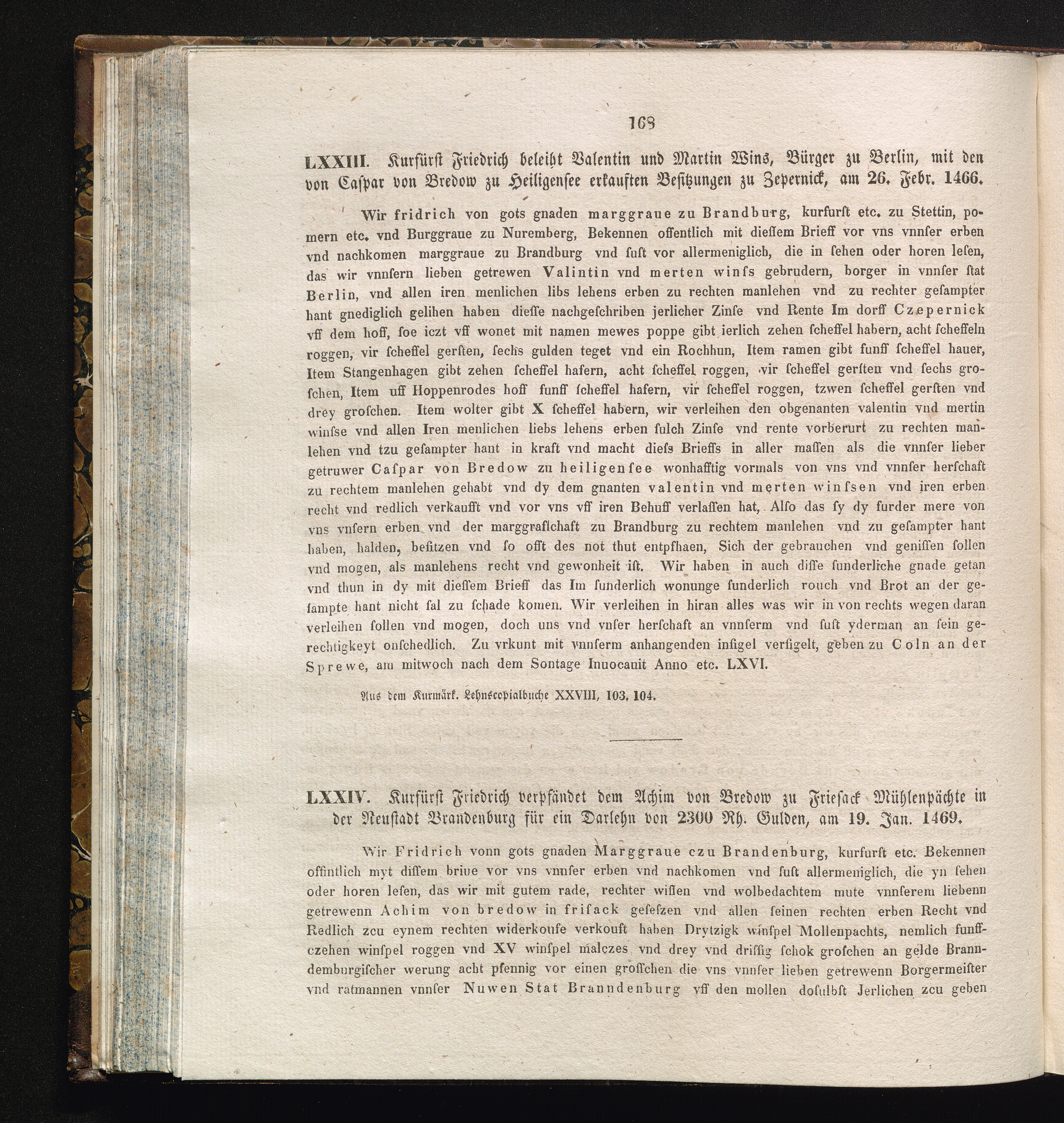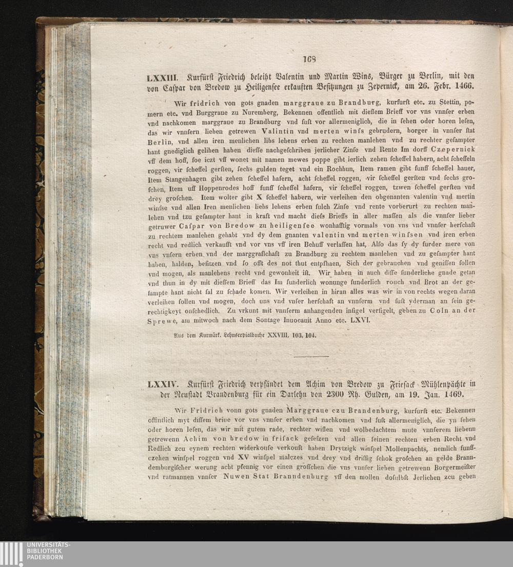 LXXIV. Kurfürst Friedrich verpfändet dem Achim von Bredow zu Friesack Mühlenpächte[...]