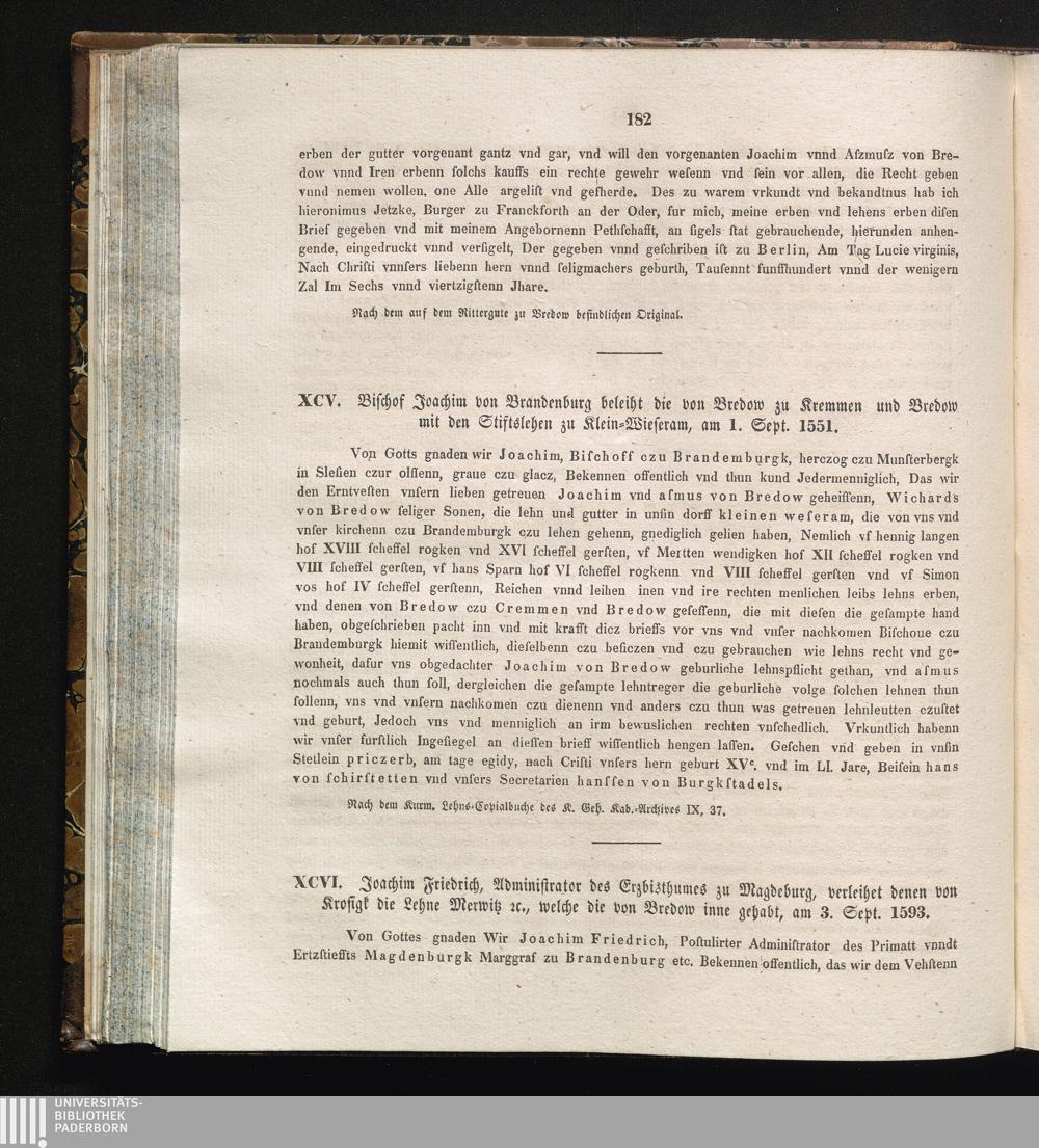 XCVI. Joachim Friedrich, Administrator des Erzbisthumes zu Magdeburg, verleihet denen[...]