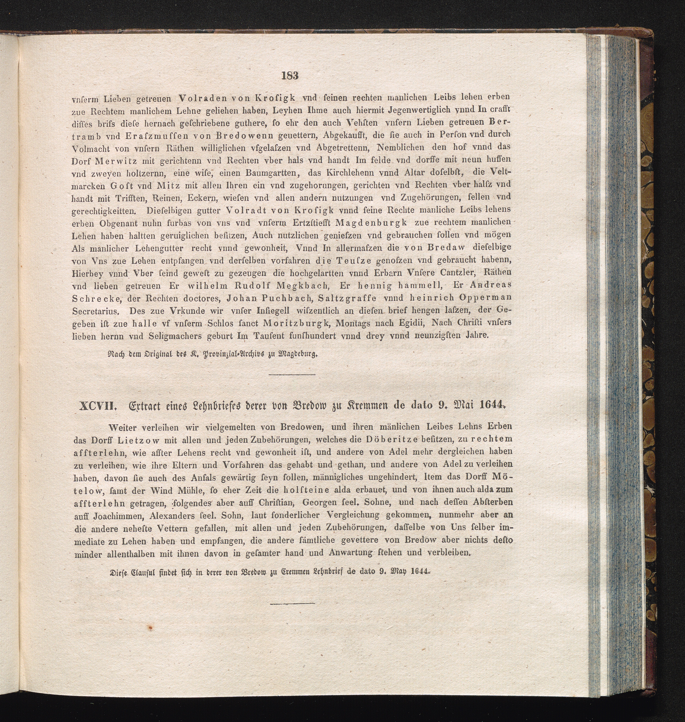XCVII. Extract eines Lehnbriefes derer von Bredow zu Kremmen de dato 9. Mai 1644[...]