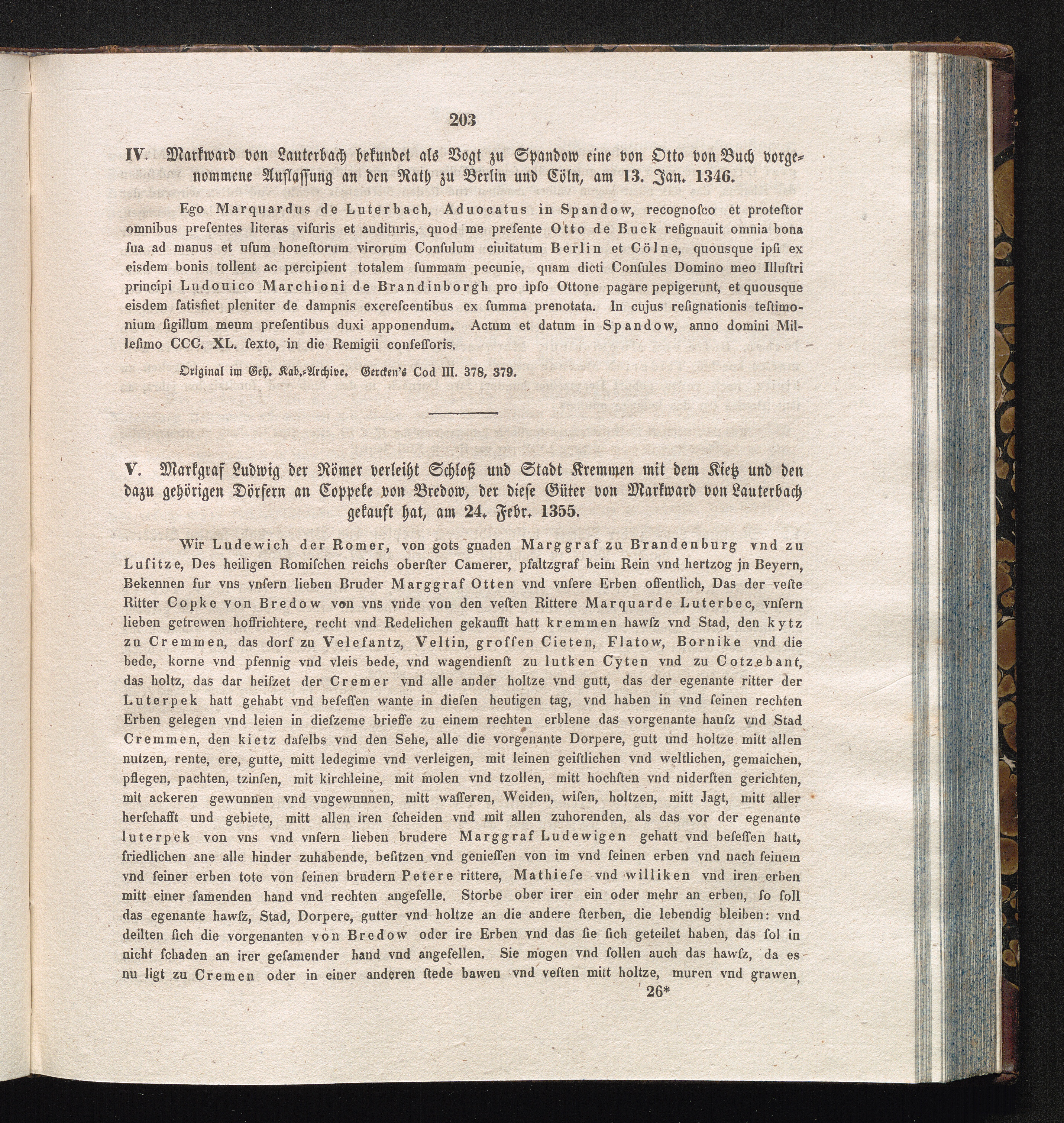 V. Markgraf Ludwig der Römer verleiht Schloß und Stadt Kremmen mit dem Kietz und[...]