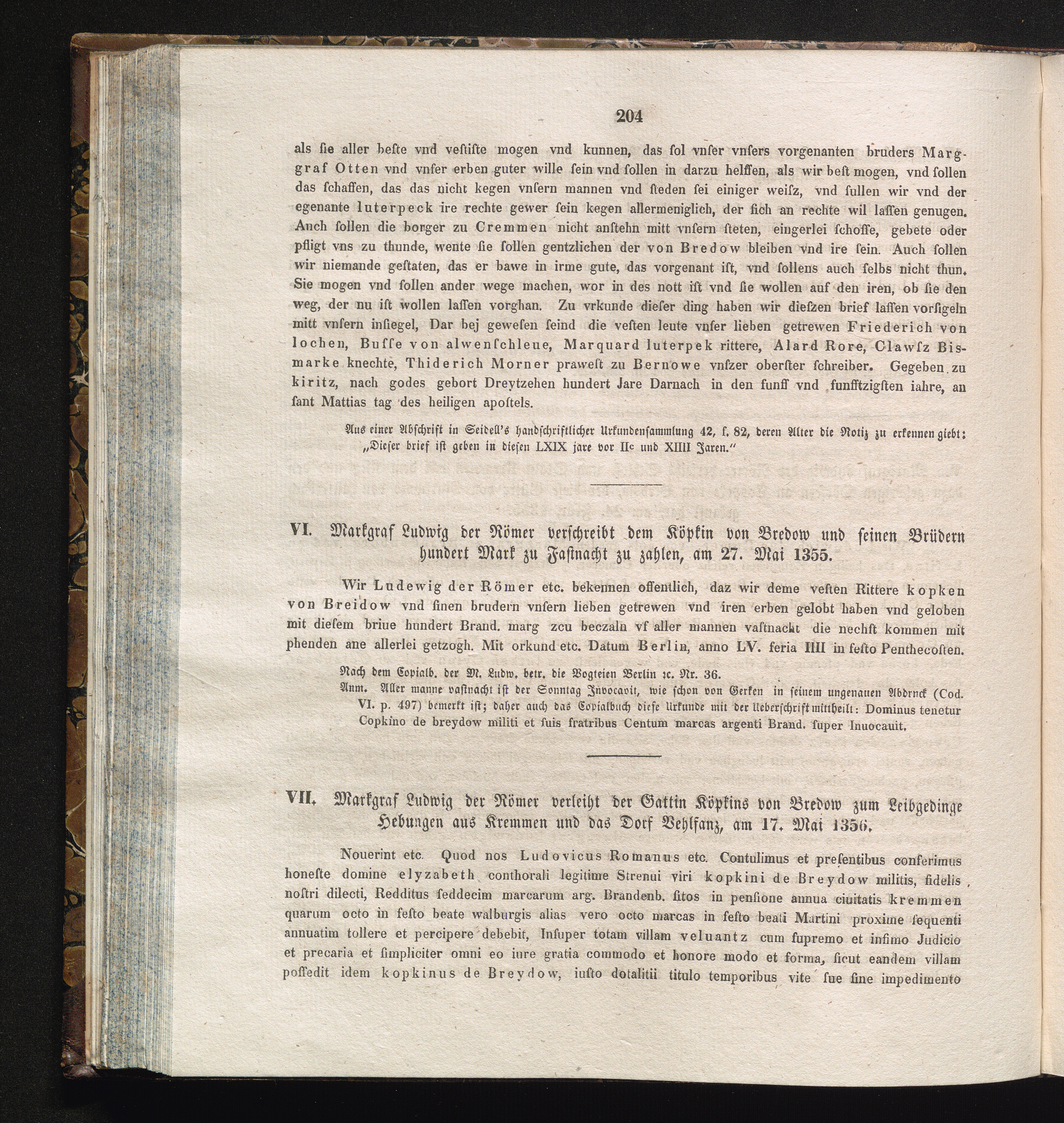 VII. Markgraf Ludwig der Römer verleiht der Gattin Köpkins von Bredow zum Leibgedinge[...]