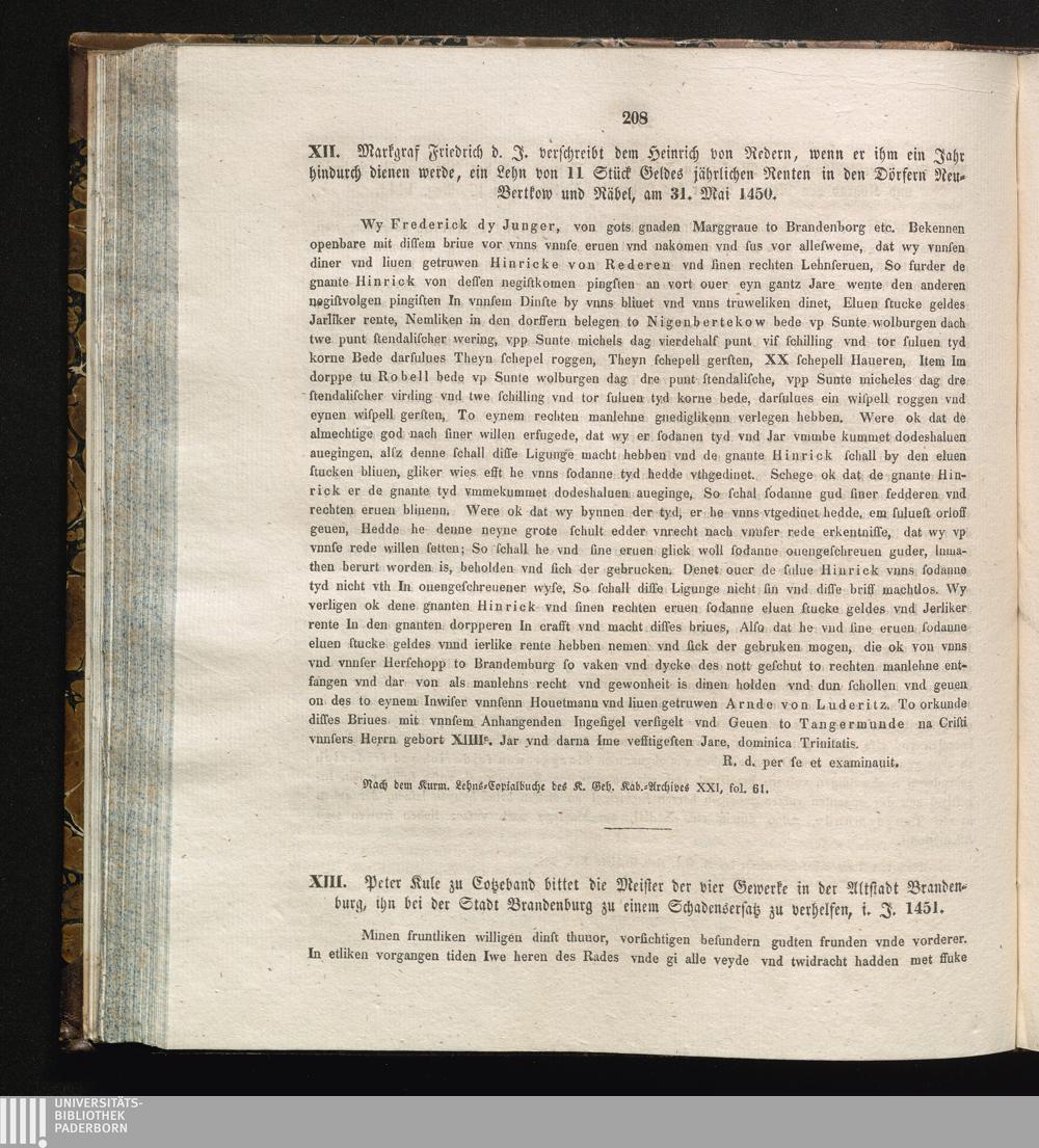 Zweite Abtheilung: Die Mittelmark. Erste Fortsetzung.