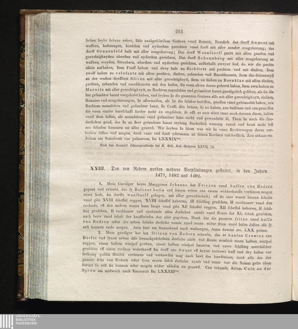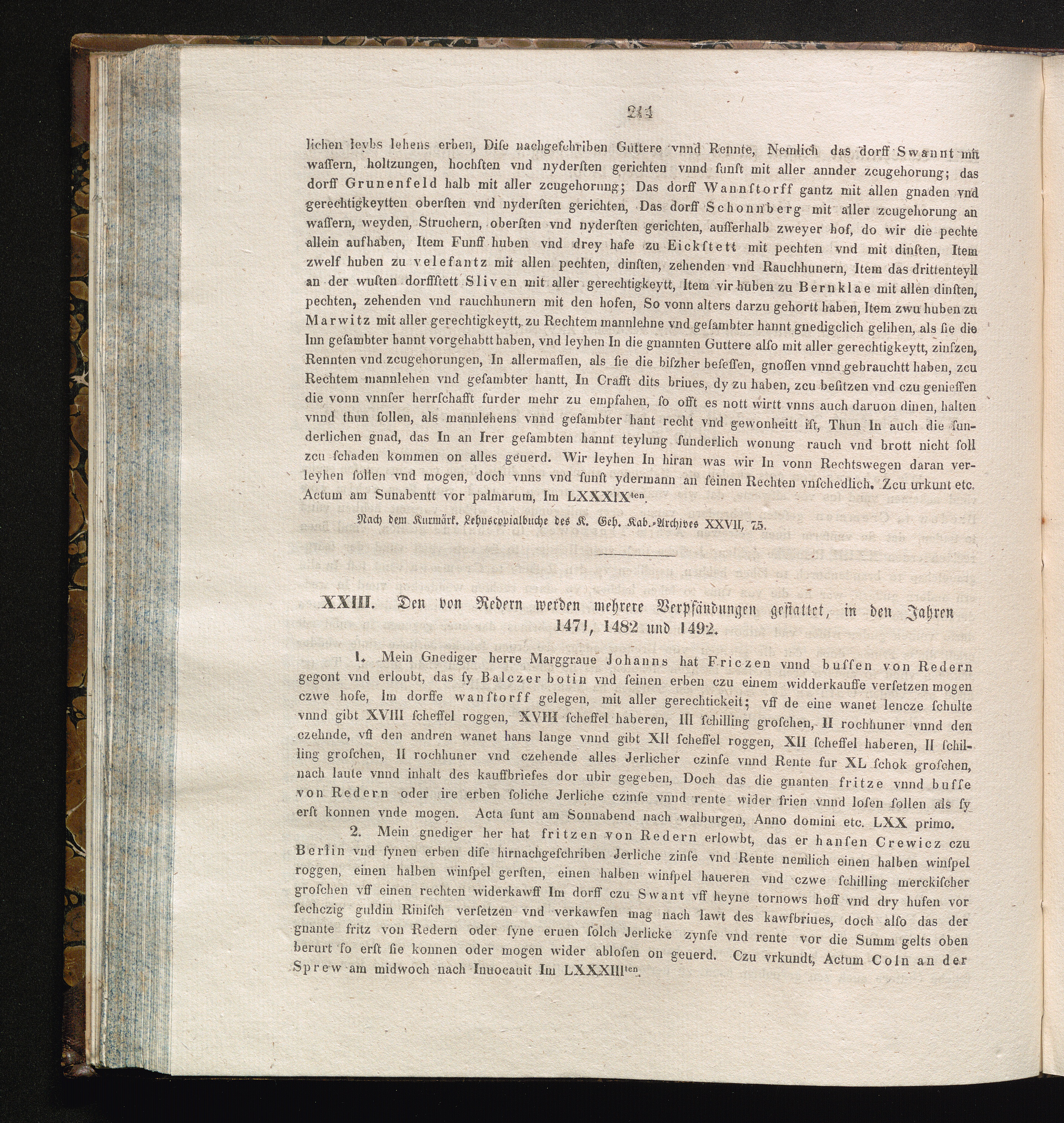 XXIII. Den von Redern werden mehrere Verpfändungen gestattet, in den Jahren 1471,[...]