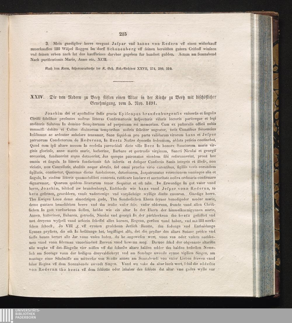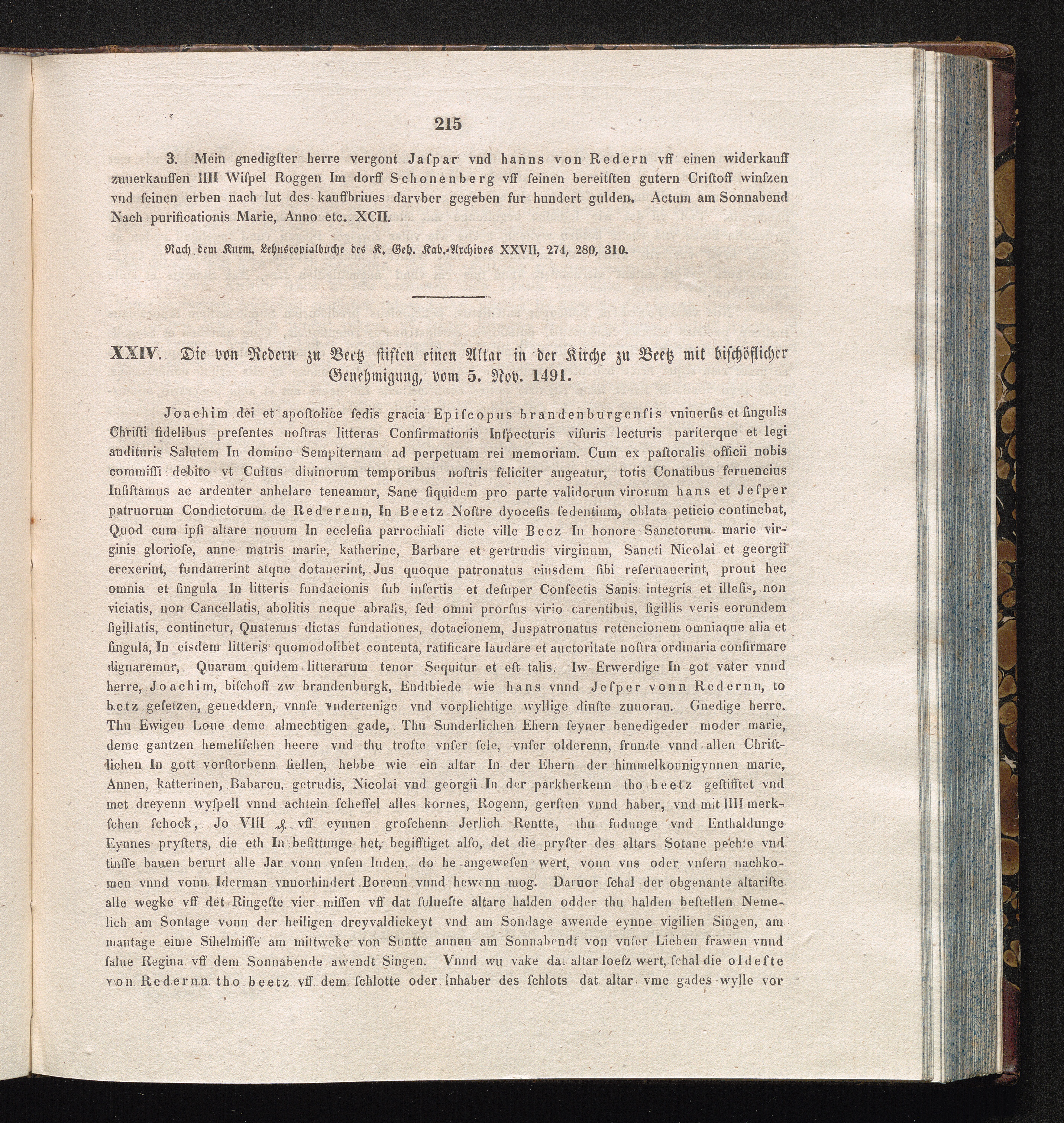 XXIV. Die von Redern zu Beetz stiften einen Altar in der Kirche zu Beetz mit bischöflicher[...]