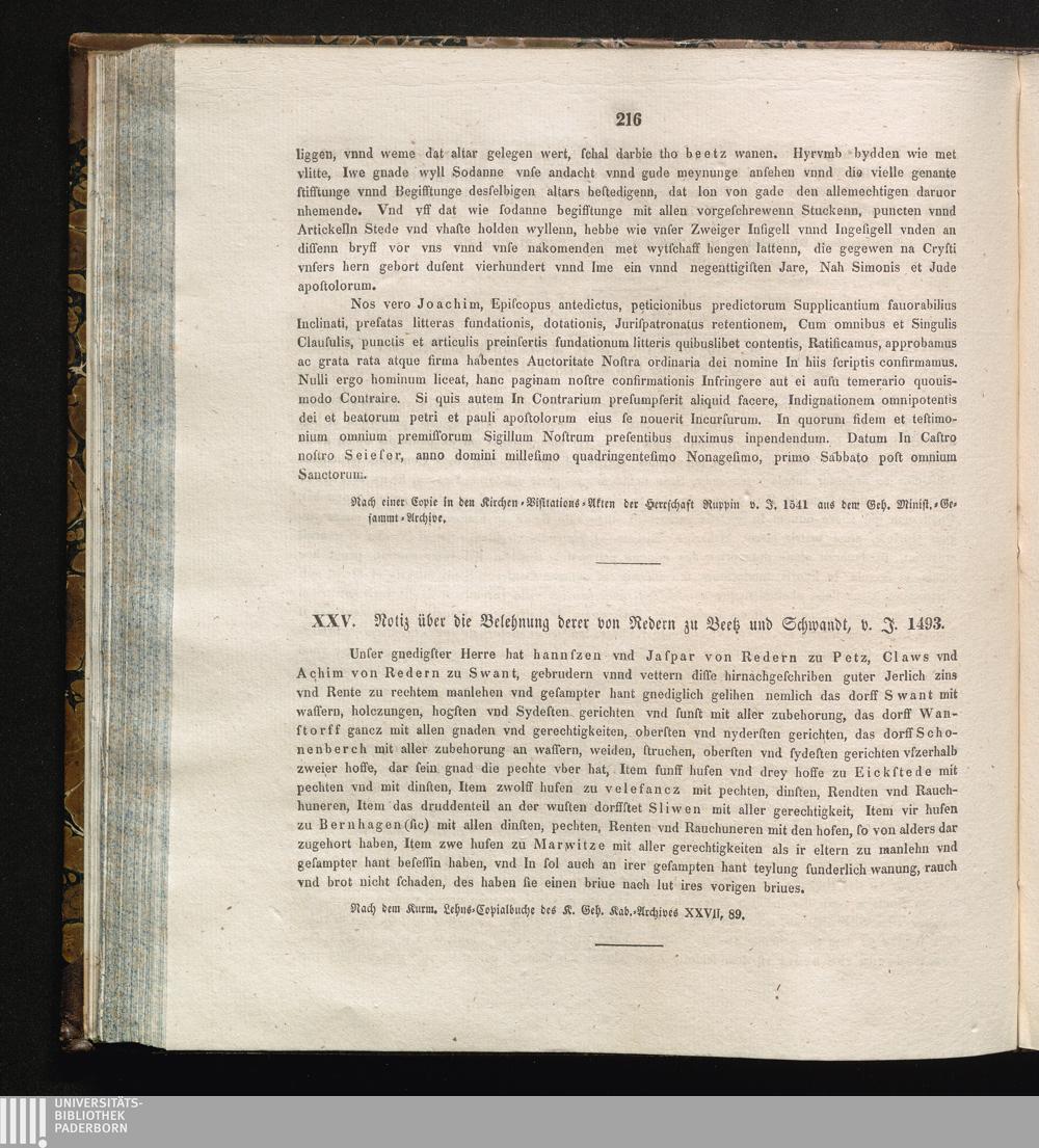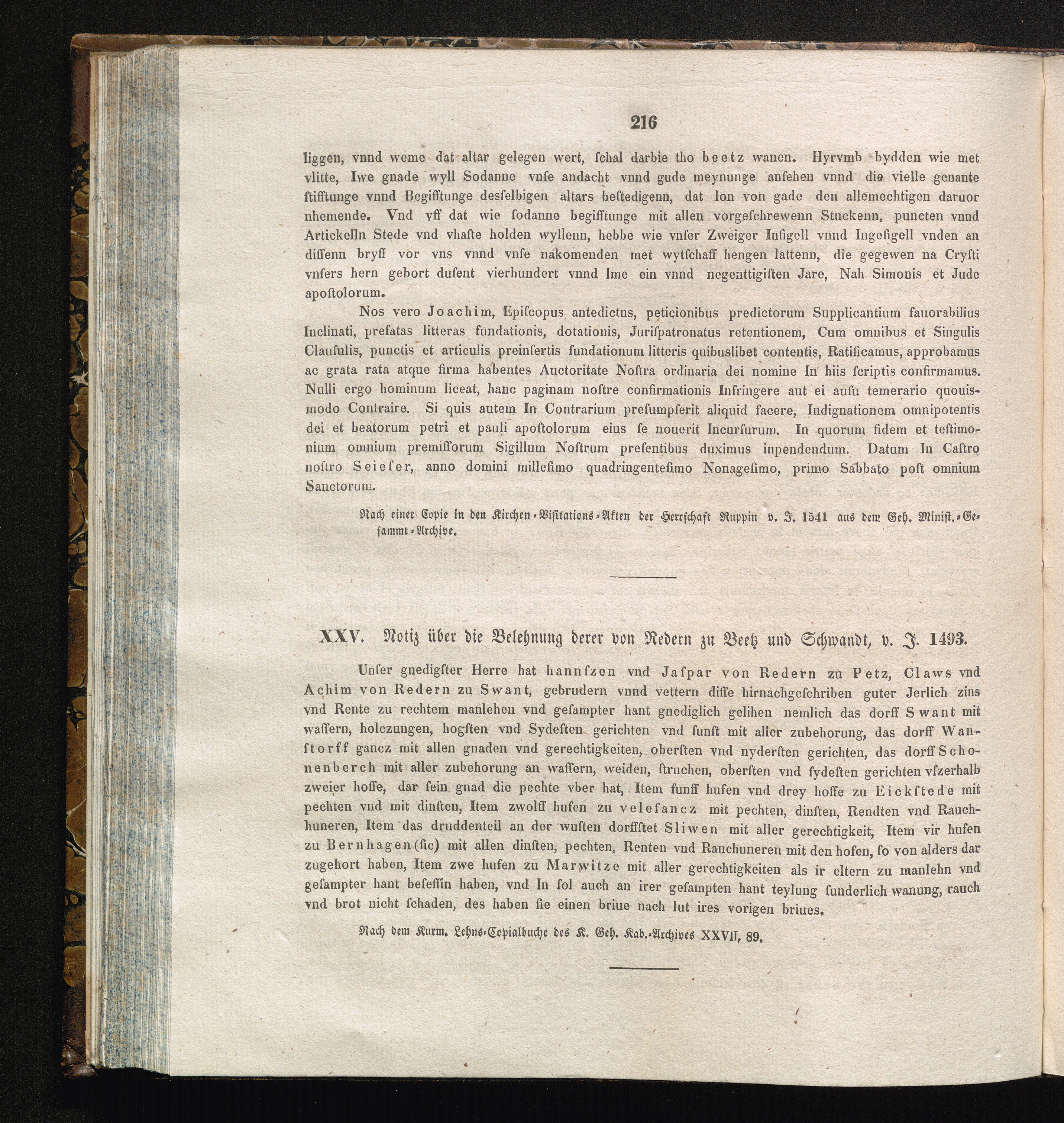 XXV. Notiz über die Belehnung derer von Redern zu Beetz und Schwandt, v. J. 1493[...]