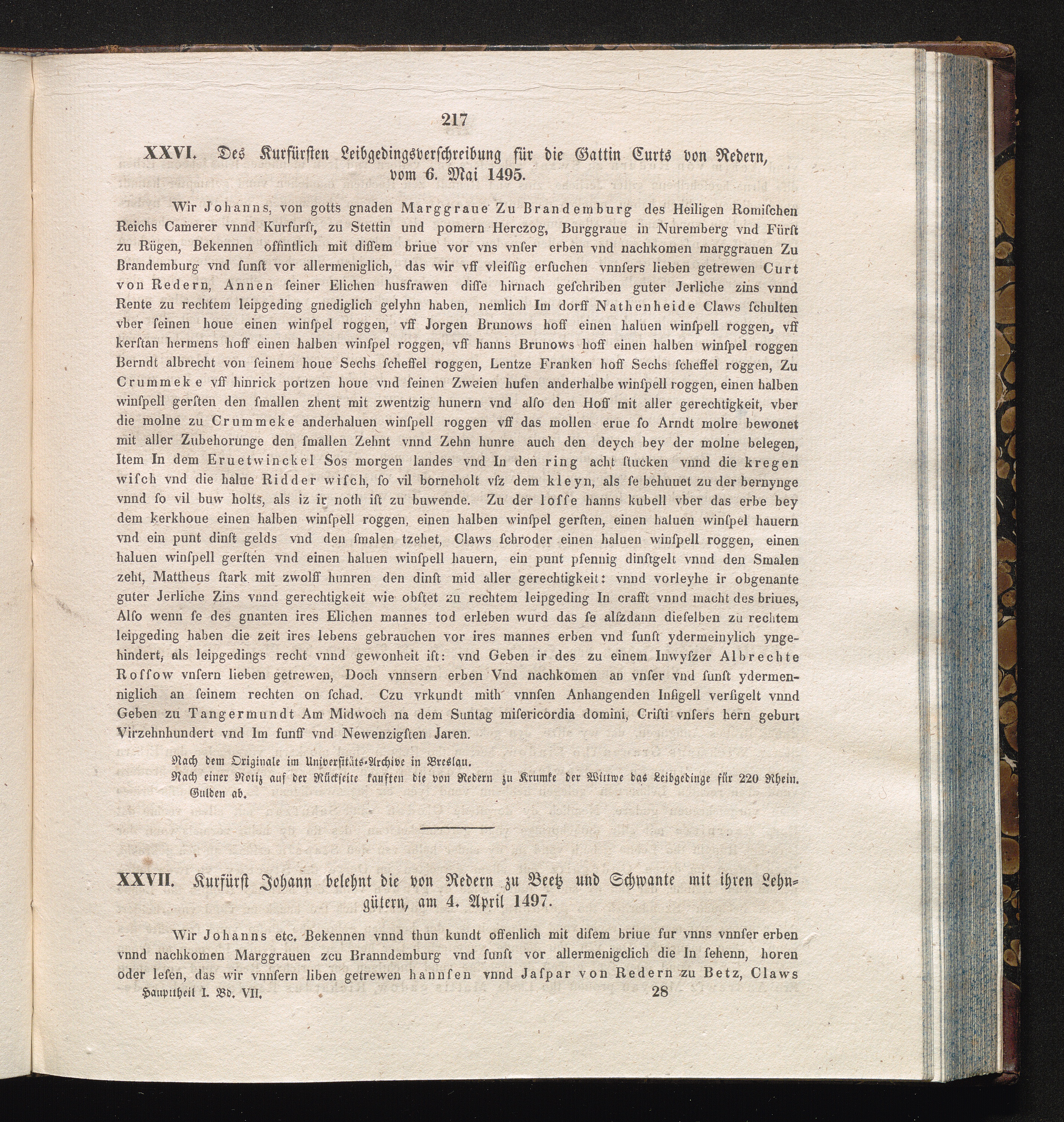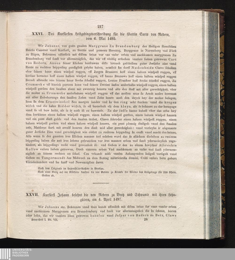 XXVII. Kurfürst Johann belehnt die von Reden zu Beetz und Schwandte mit ihren Lehngütern,[...]