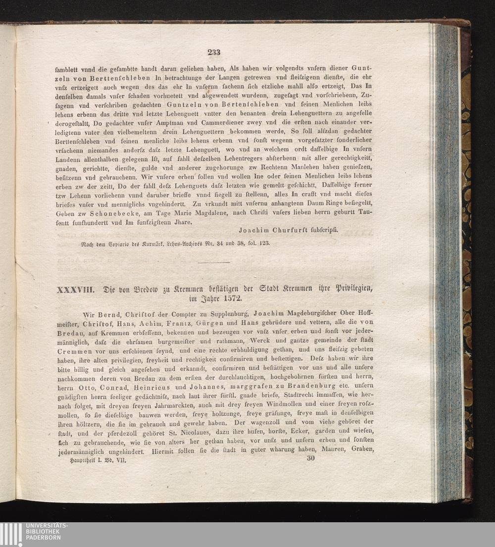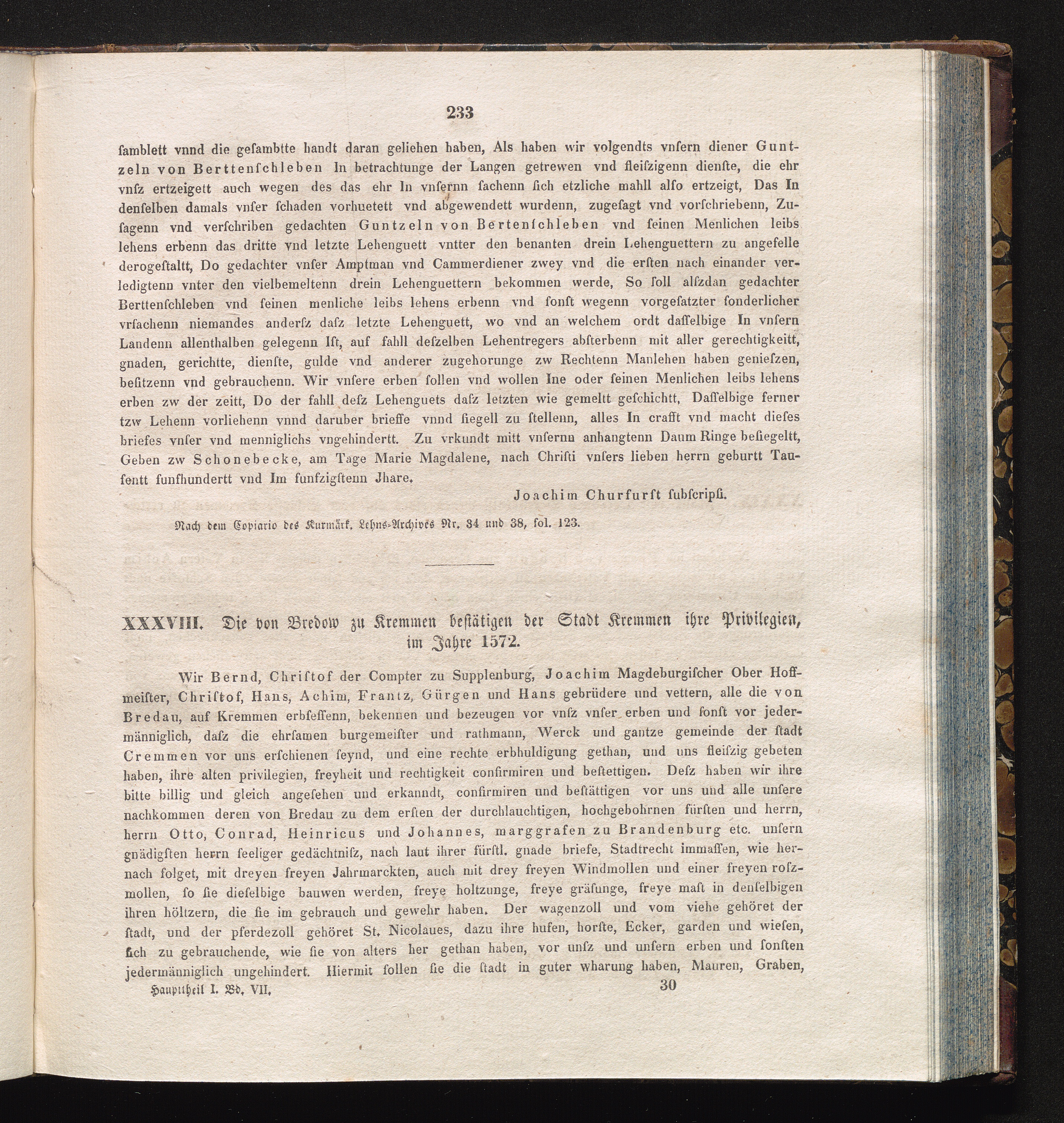 XXXVIII. Die von Bredow zu Kremmen bestätigen der Stadt Kremmen ihre Privilegien,[...]