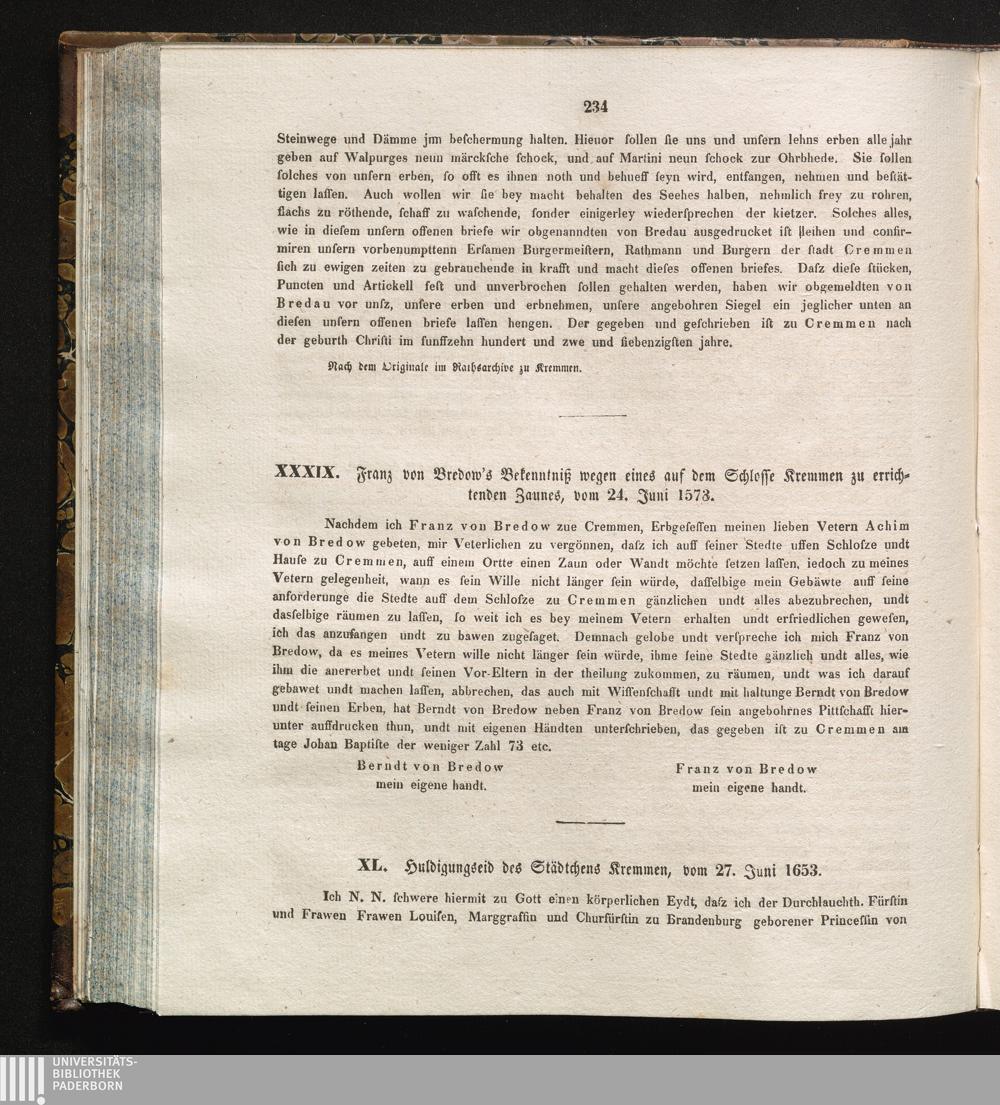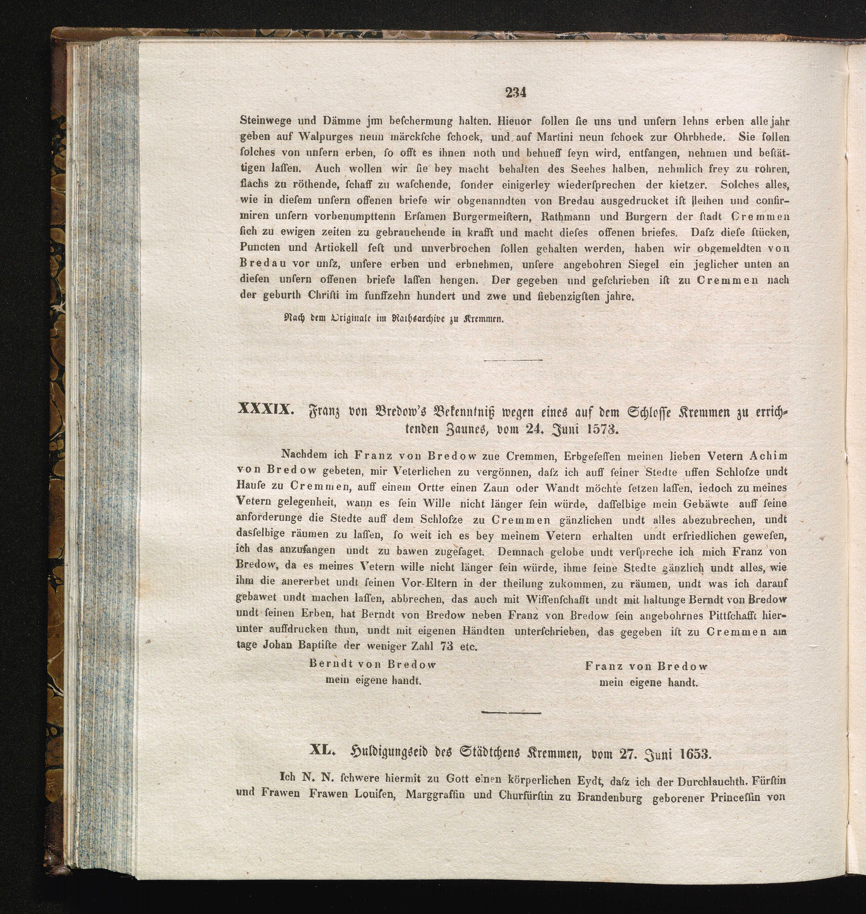 XL. Huldigungseid des Städtchens Kremmen, vom 27. Juni 1653.