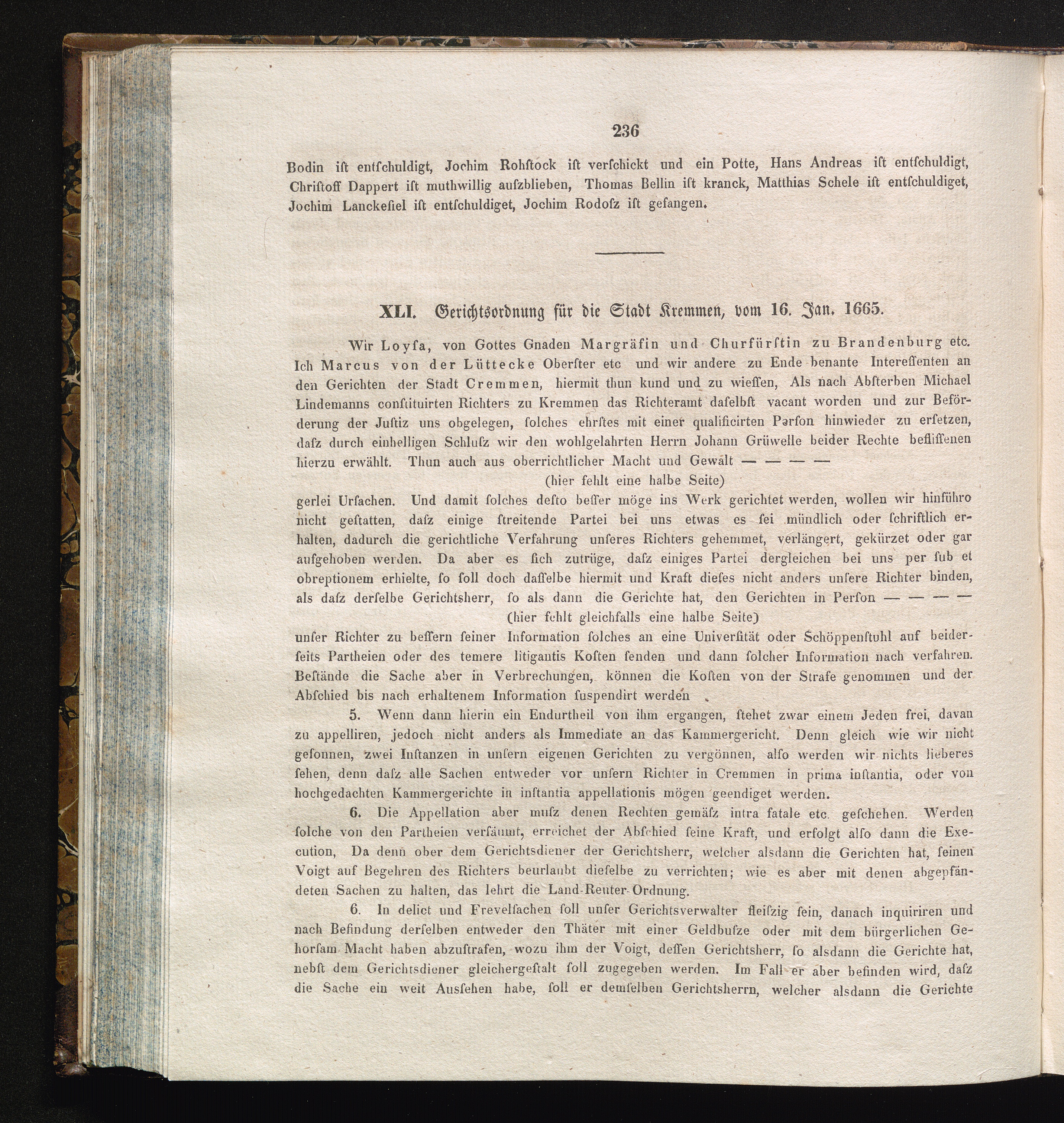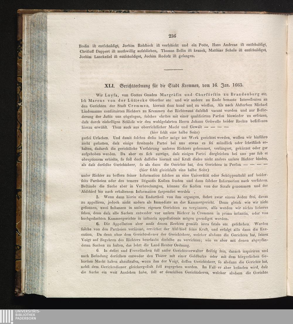 XLI. Gerichtsordnung für die Stadt Kremmen, vom 16. Jan. 1665.