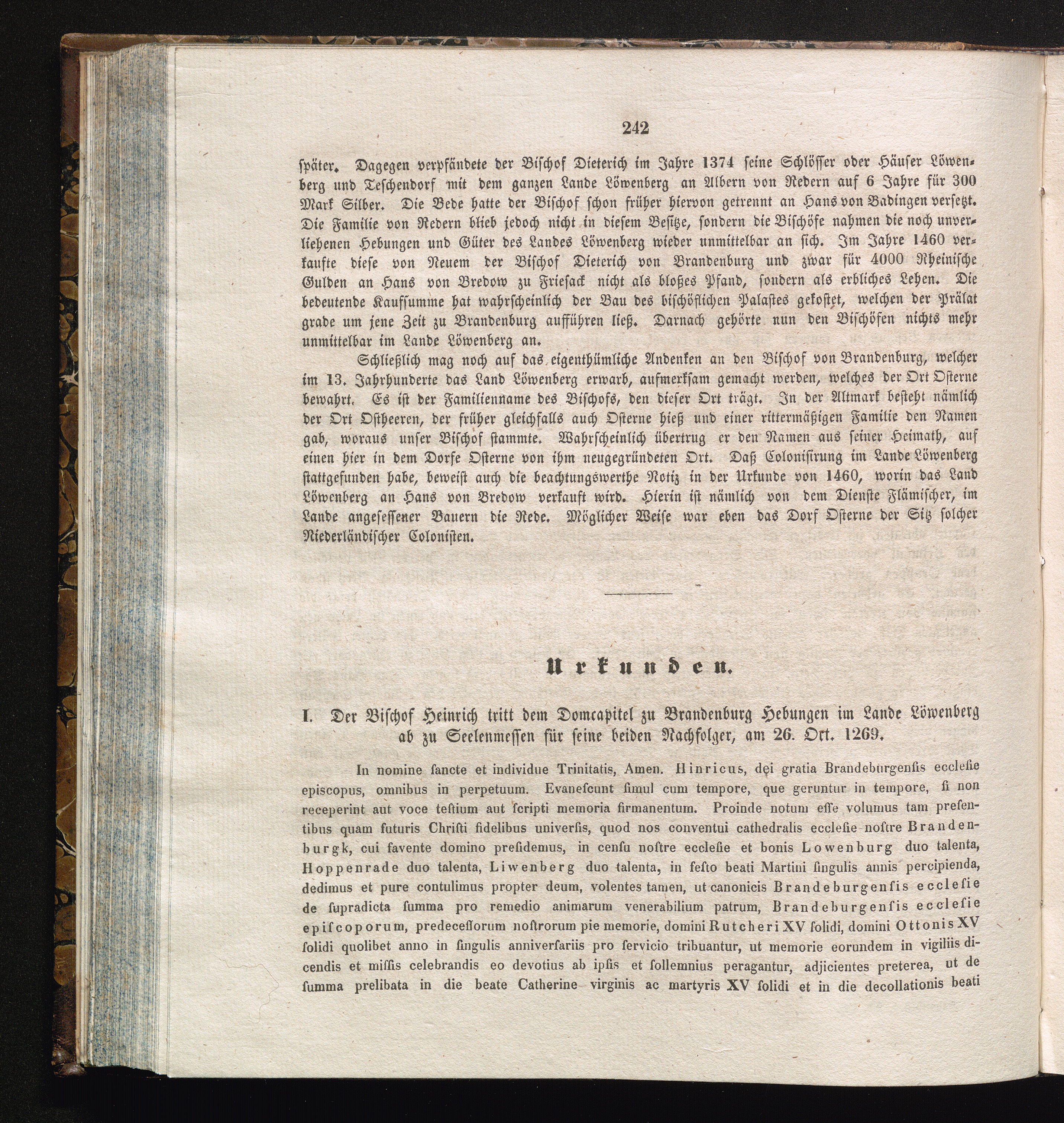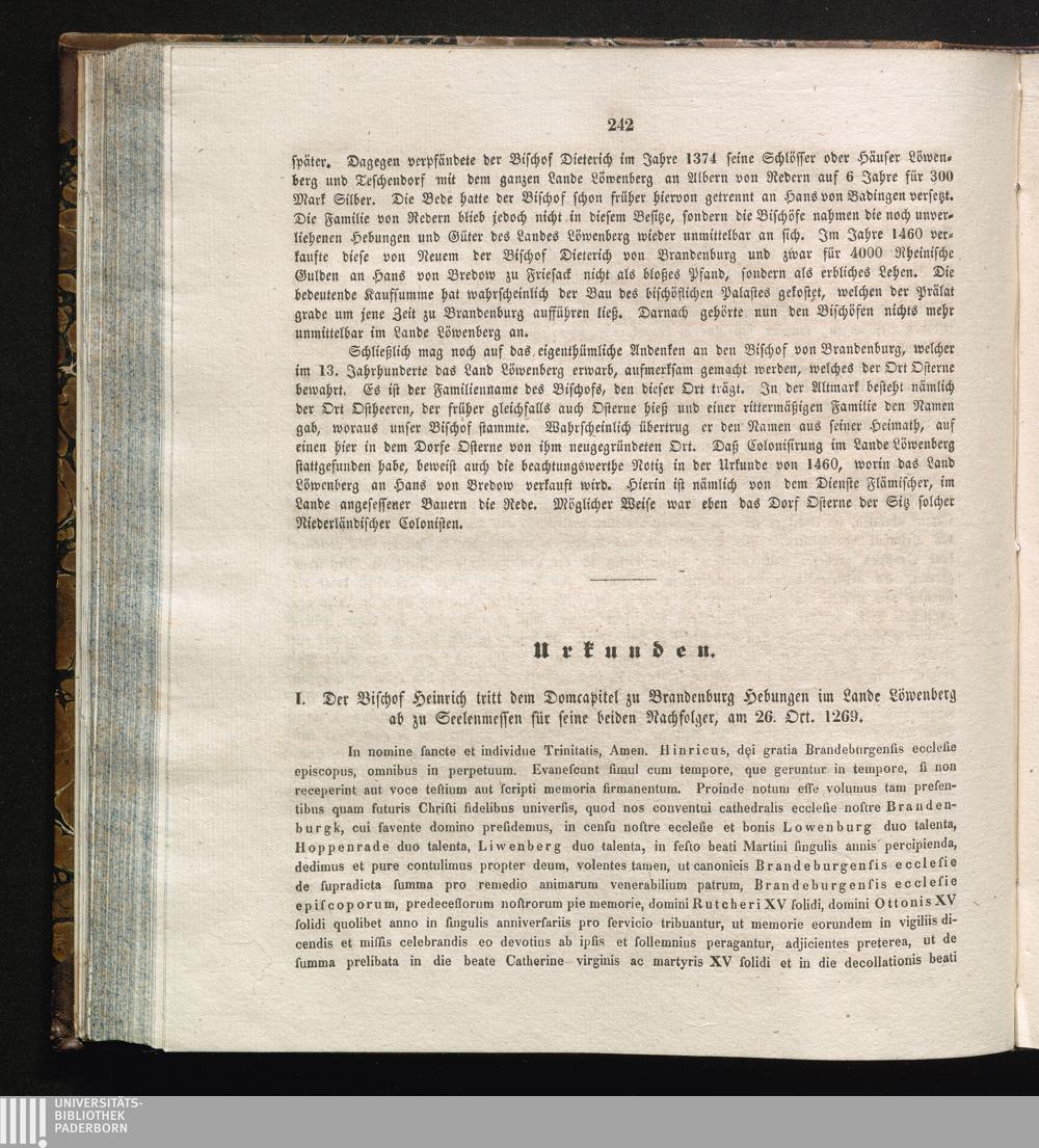 I. Der Bischof Heinrich tritt dem Domcapitel zu Brandenburg Hebungen im Lande Löwenberg[...]