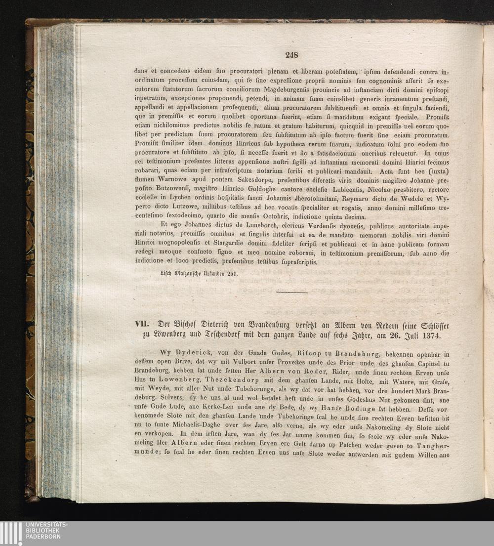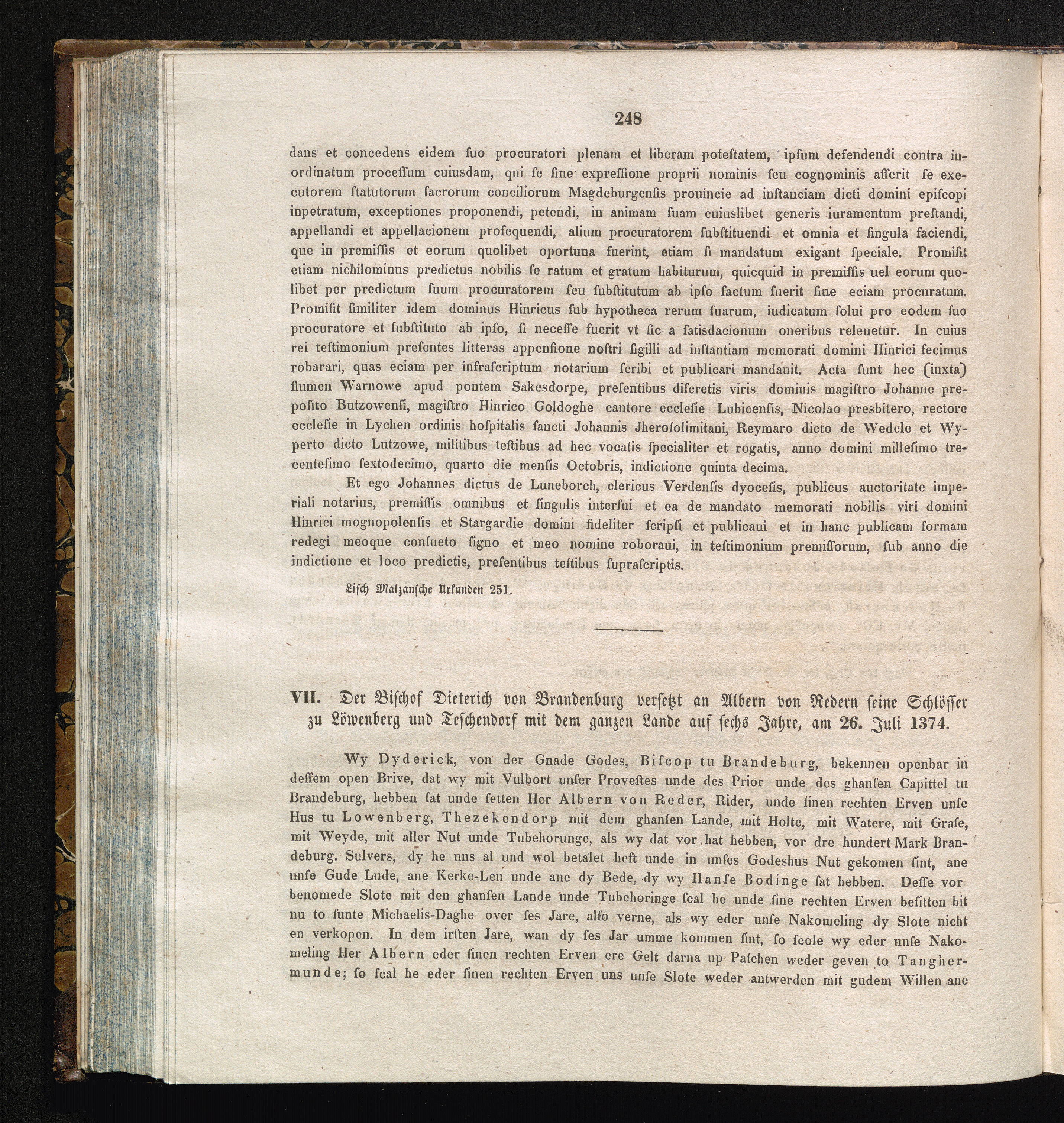 VII. Der Bischof Dieterich von Brandenburg versetzt an Albern von Redern seine Schlösser[...]