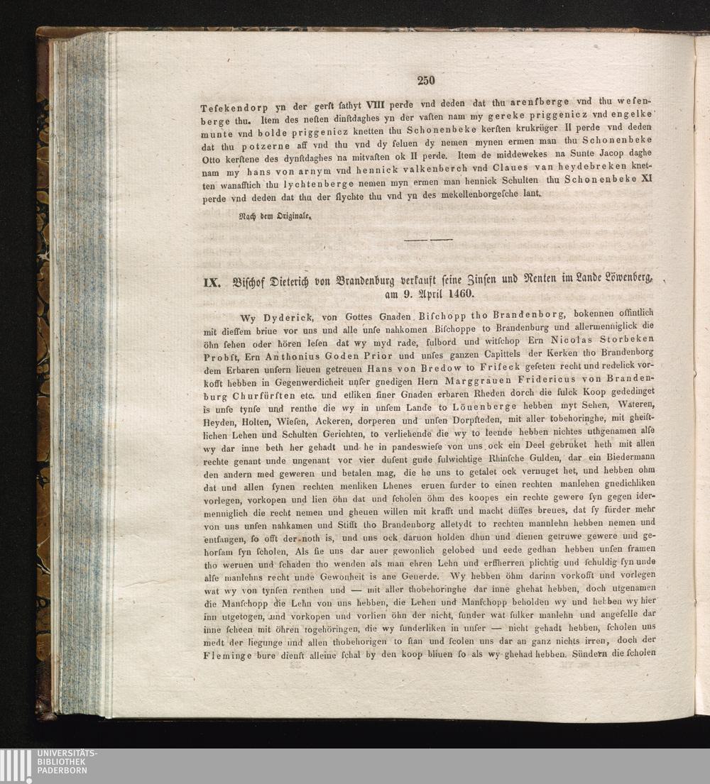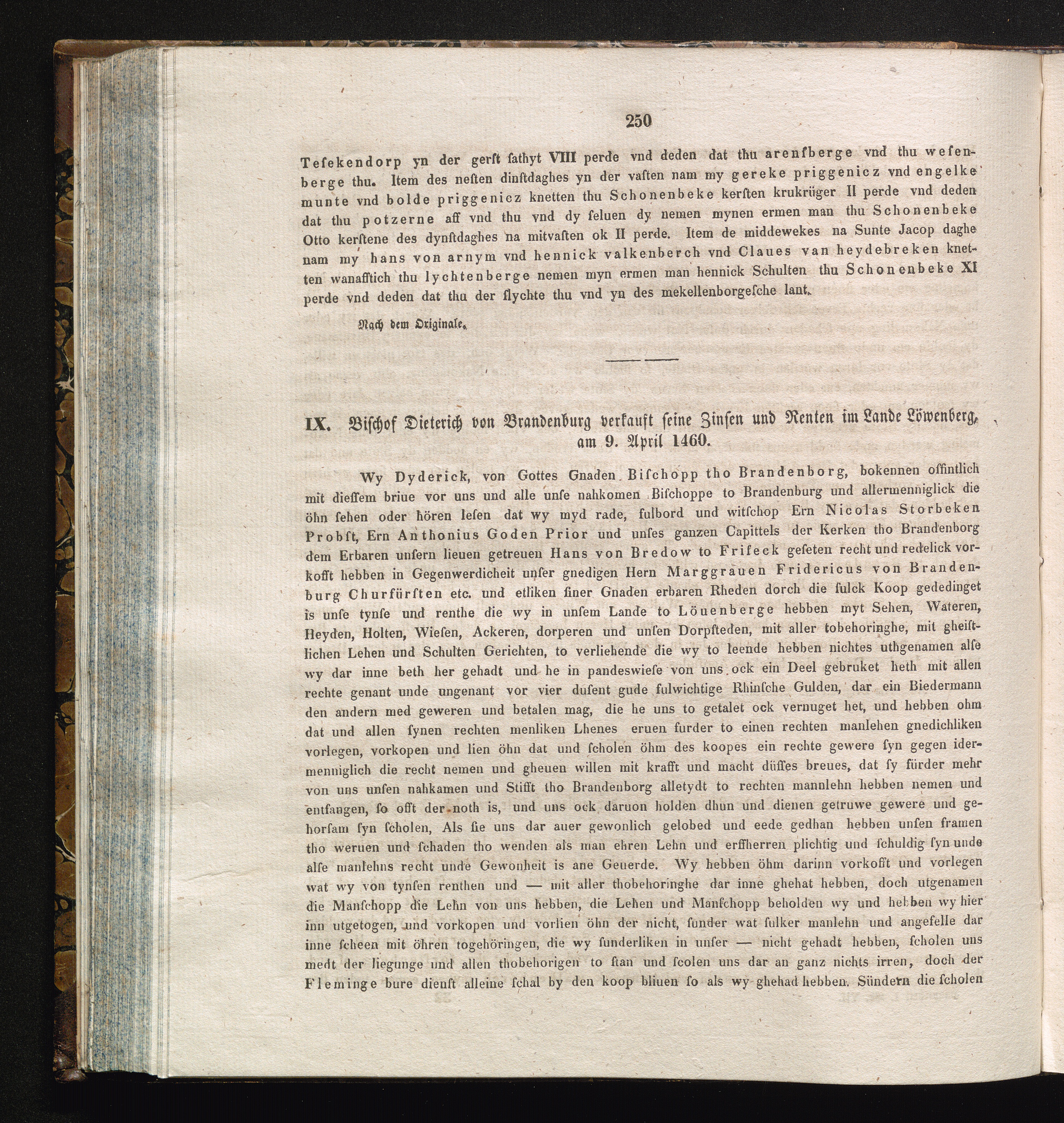 IX. Bischof Dieterich von Brandenburg verkauft seine Zinsen und Renten im Lande Löwenberg,[...]