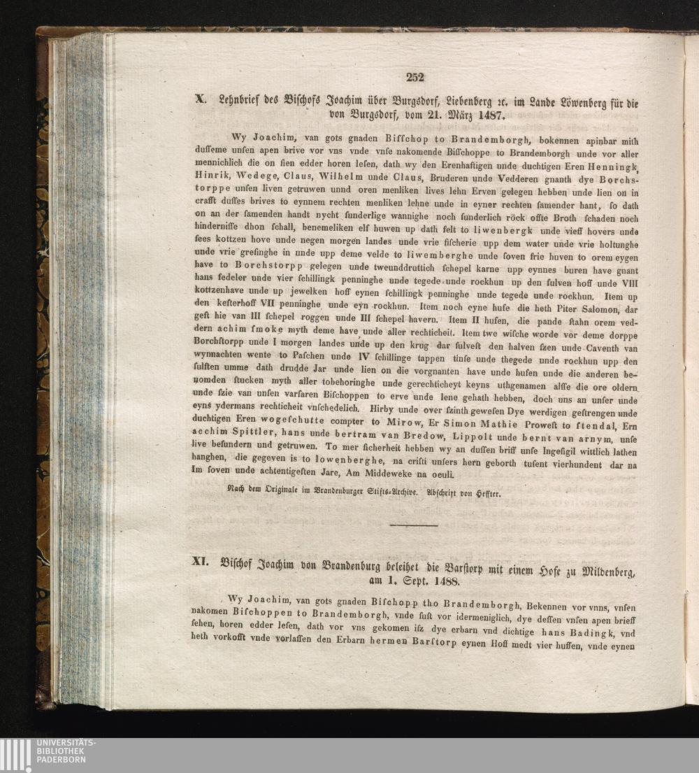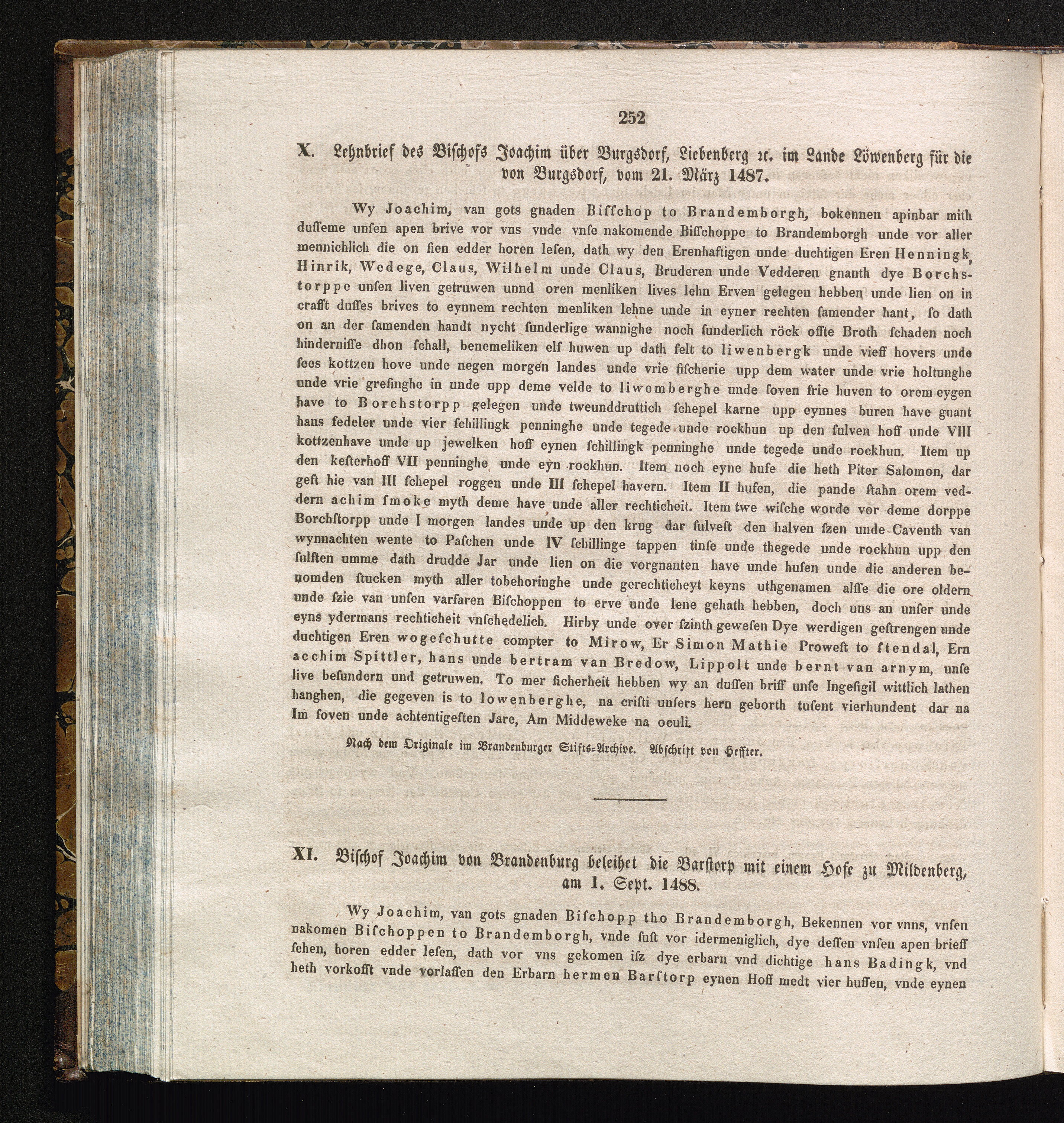 XI. Bischof Joachim von Brandenburg beleihet die Barstorp mit einem Hofe zu Mildenberg,[...]