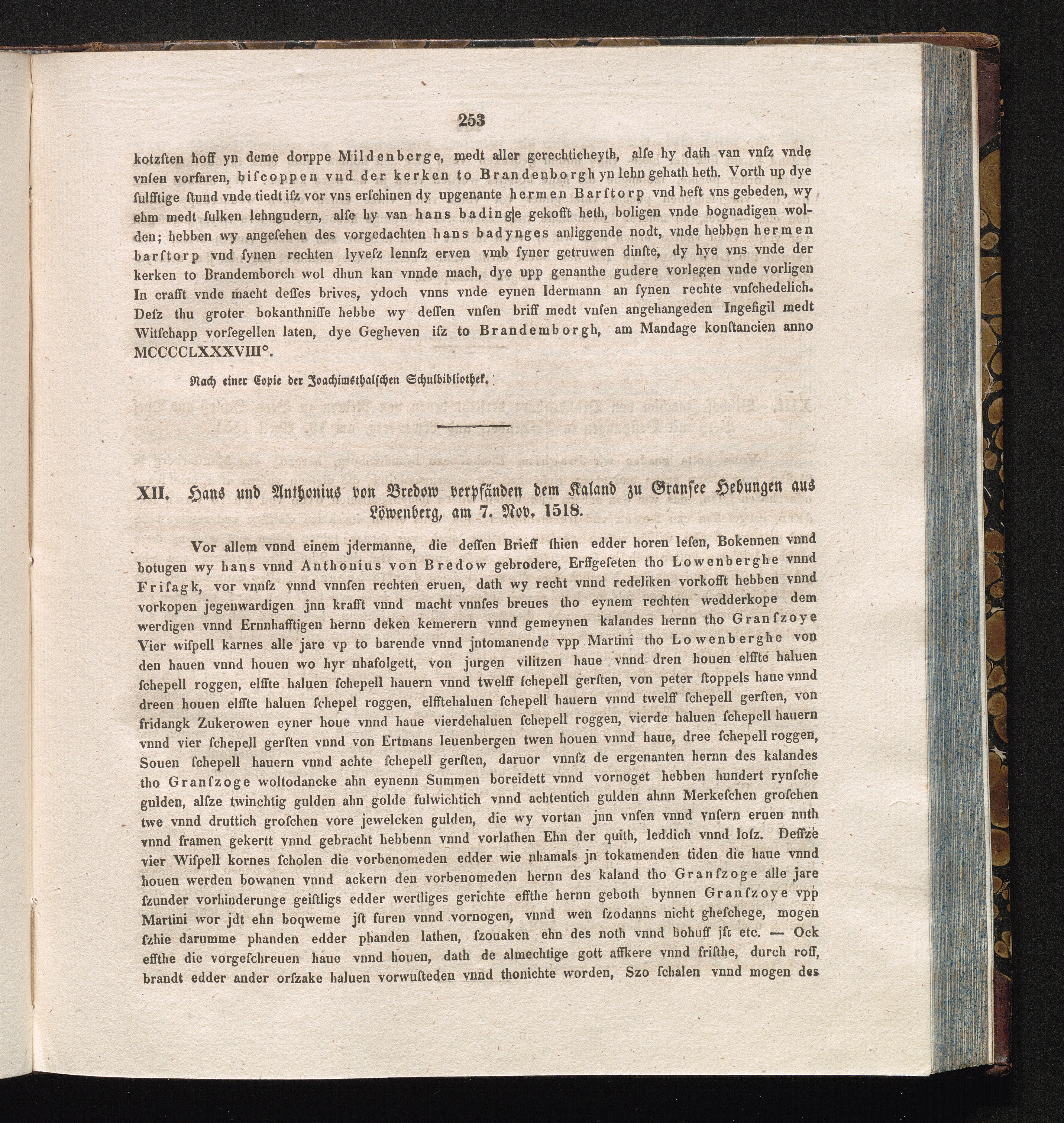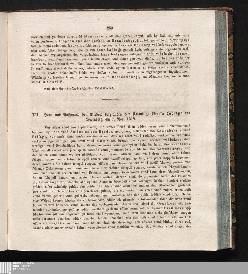 XII. Hans und Anthonius von Bredow verpfänden dem Kaland zu Gransee Hebungen aus[...]