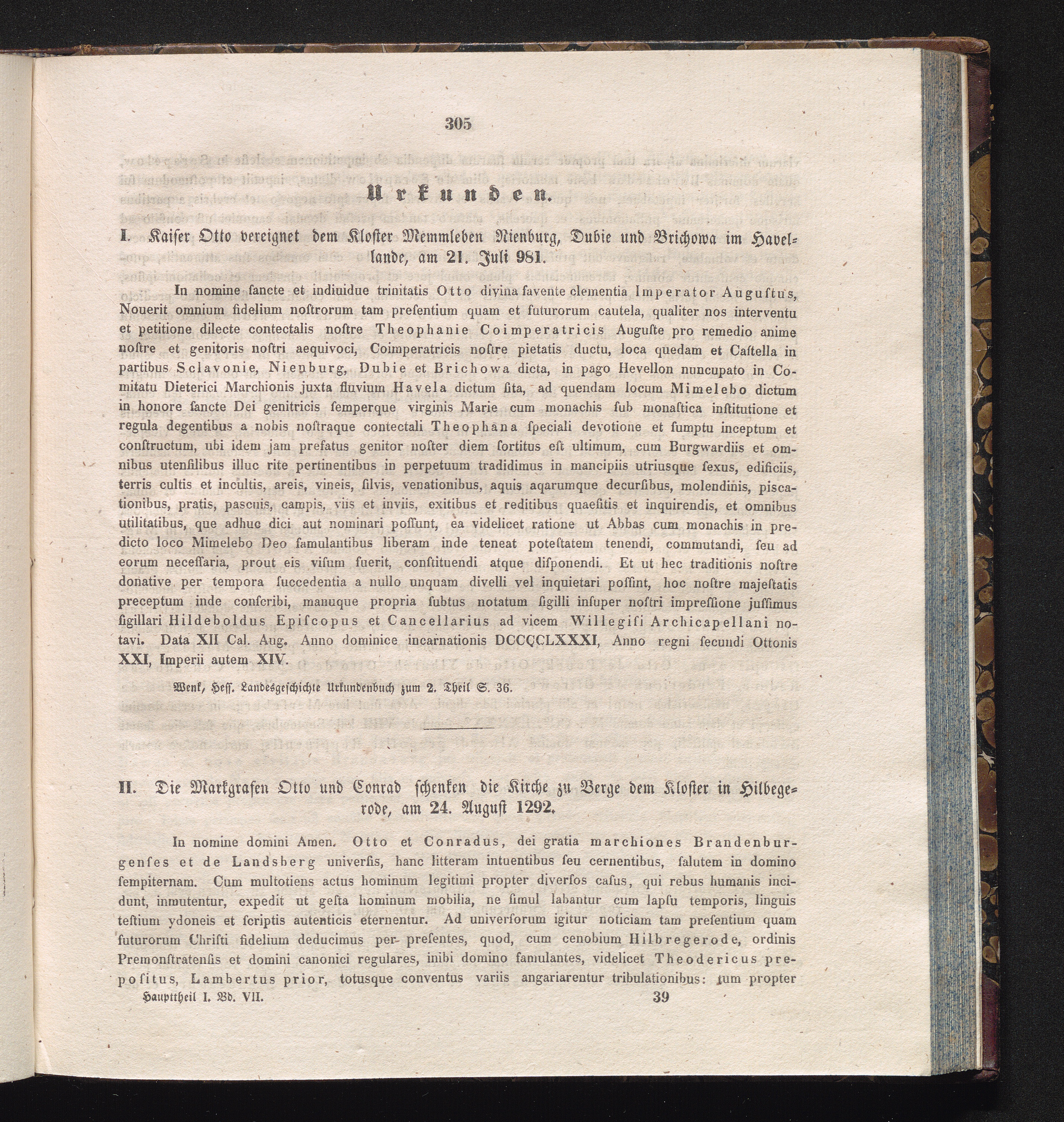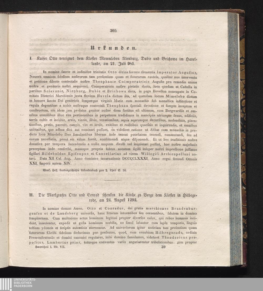II. Die Markgrafen Otto und Conrad schenken die Kirche zu Berge dem Kloster in Hilbegerode,[...]