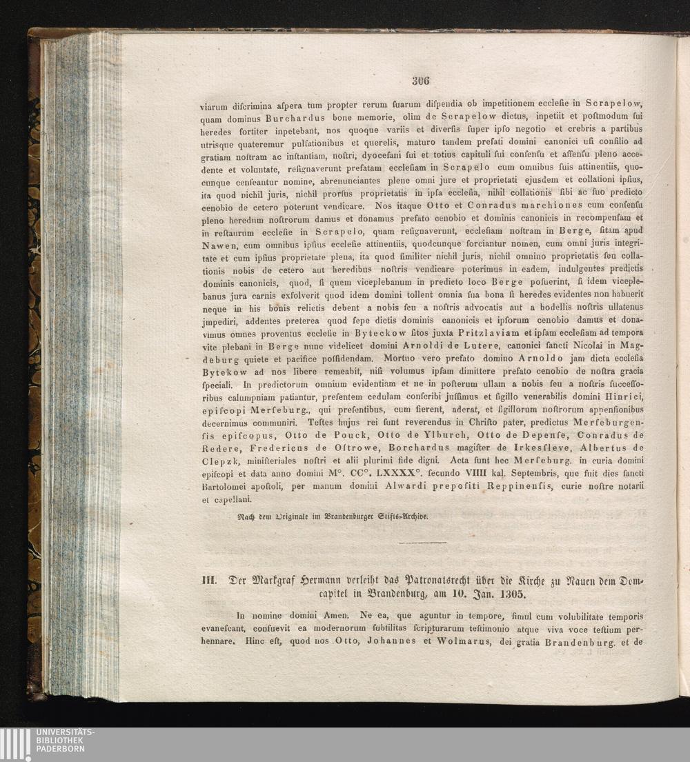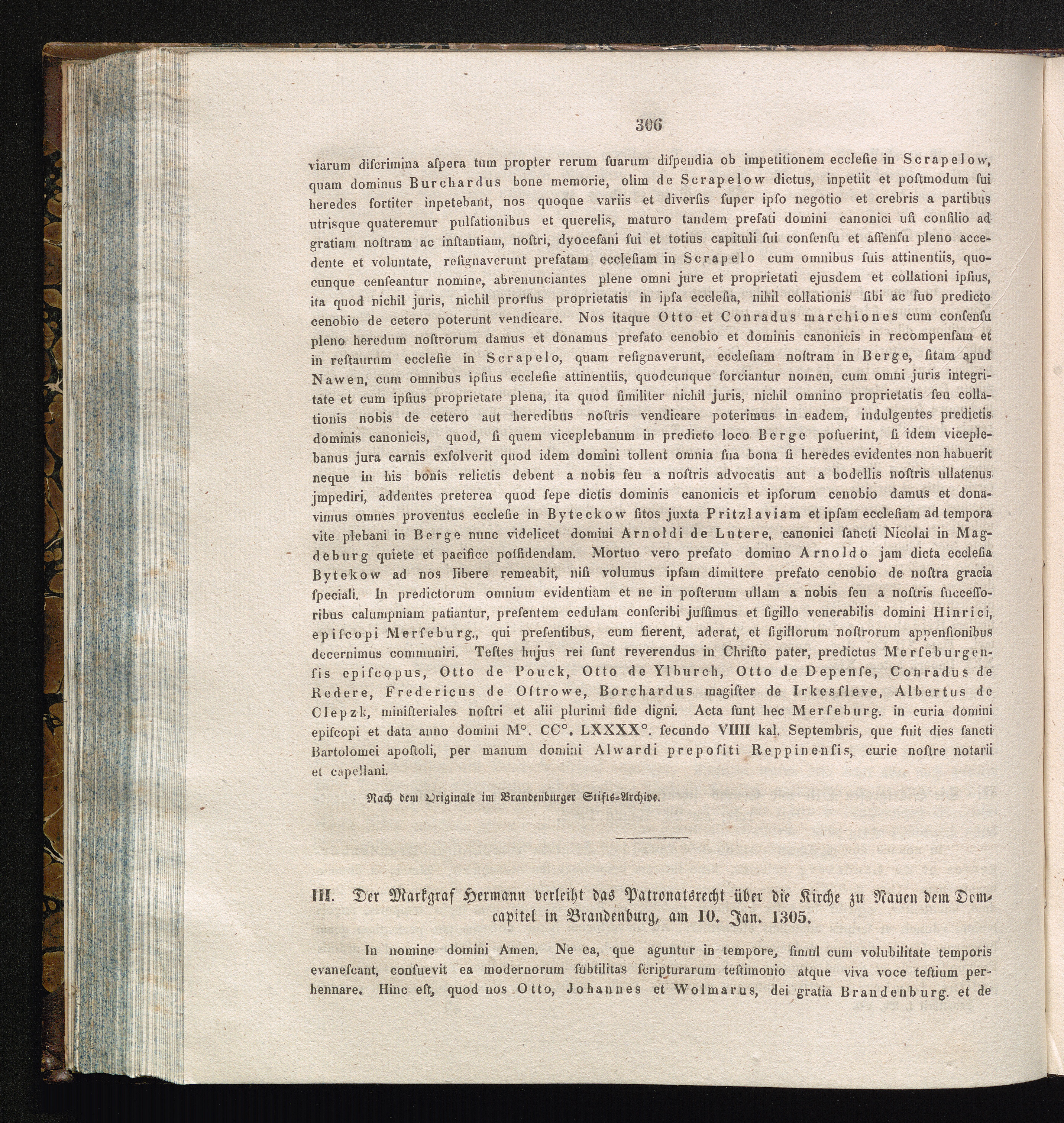 III. Der Markgraf Hermann verleiht das Patronatsrecht über die Kirche zu Nauen dem[...]