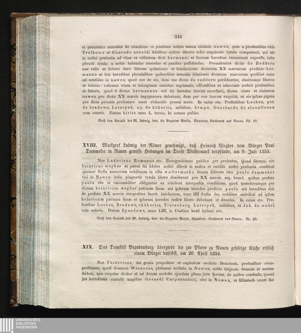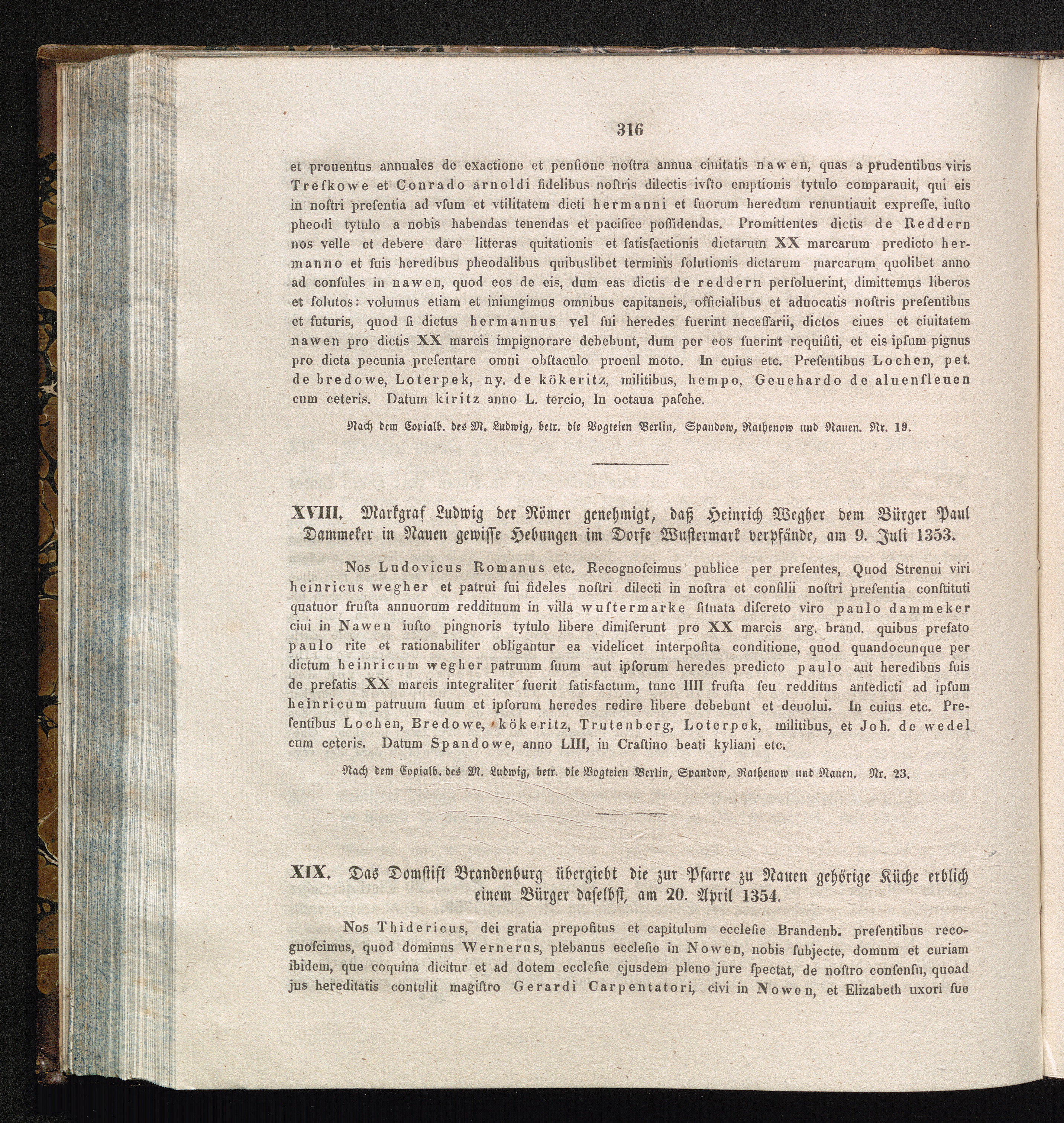 XIX. Das Domstift Brandenburg übergeibt die zur Pfarre zu Nauen gehörige Küche erblich[...]