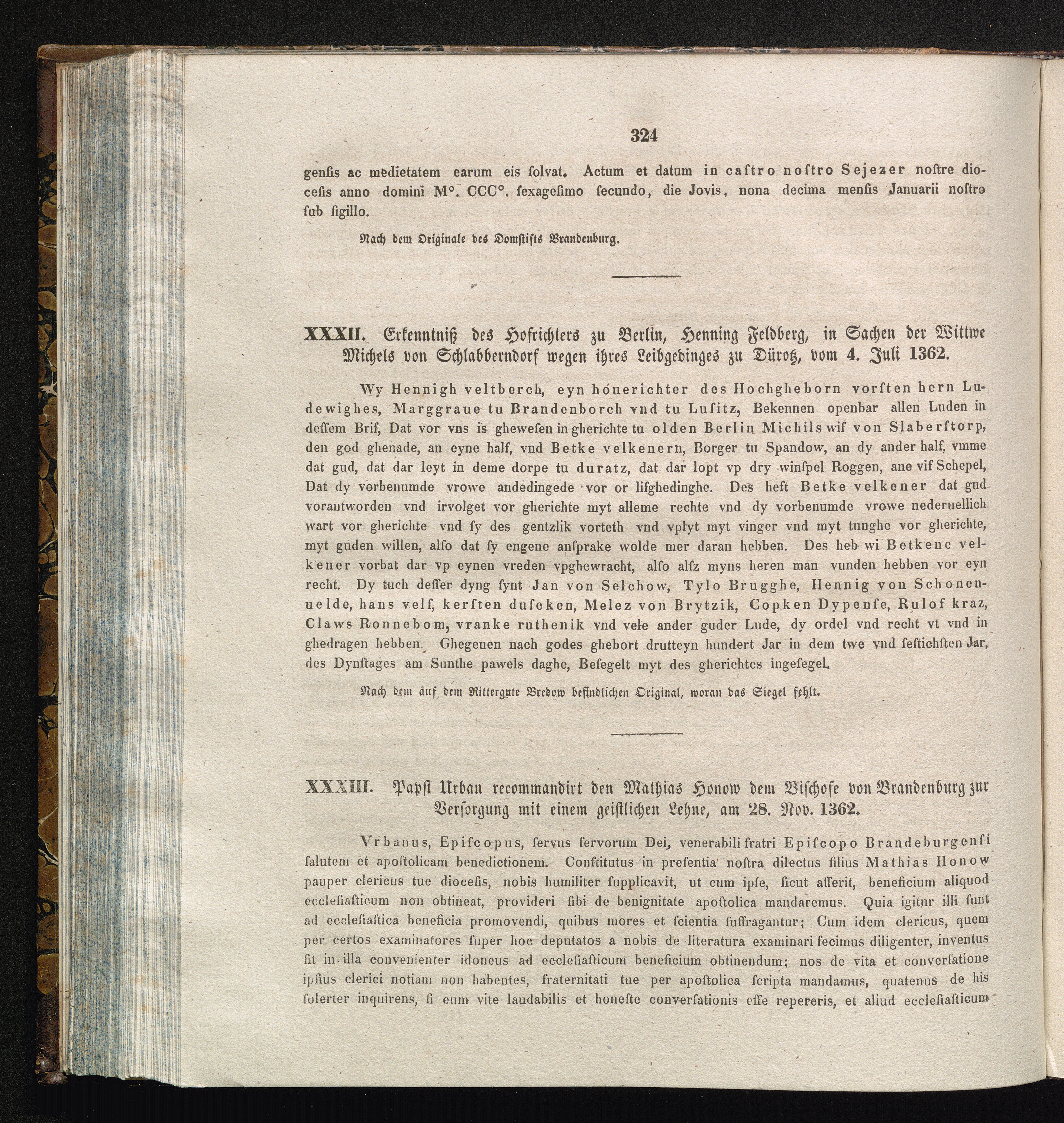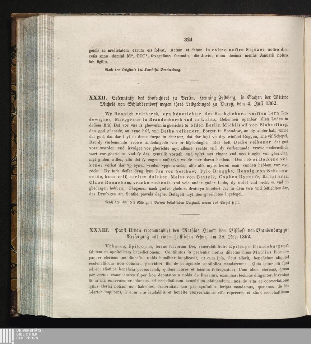 XXXIII. Papst Urban recommandirt den Mathias von Honow dem Bischofe von Brandenburg[...]