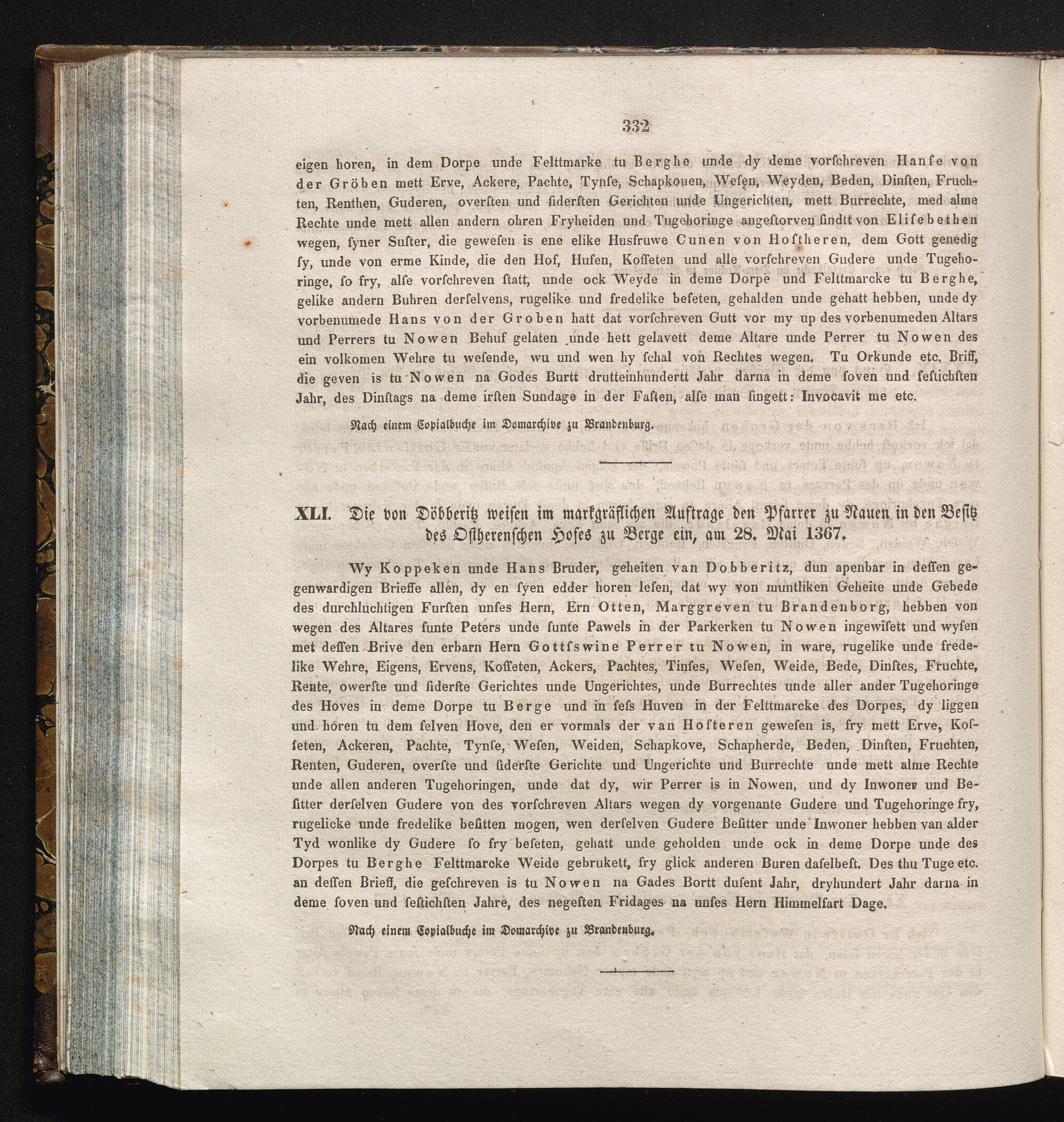 XLI. Die von Döbberitz weisen im markgräflichen Auftrage den Pfarrer zu Nauen in[...]