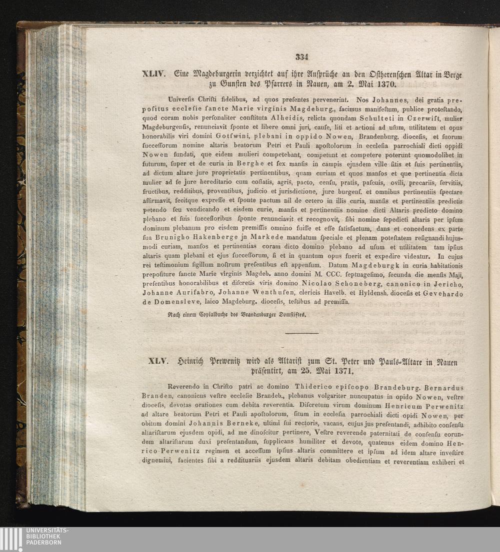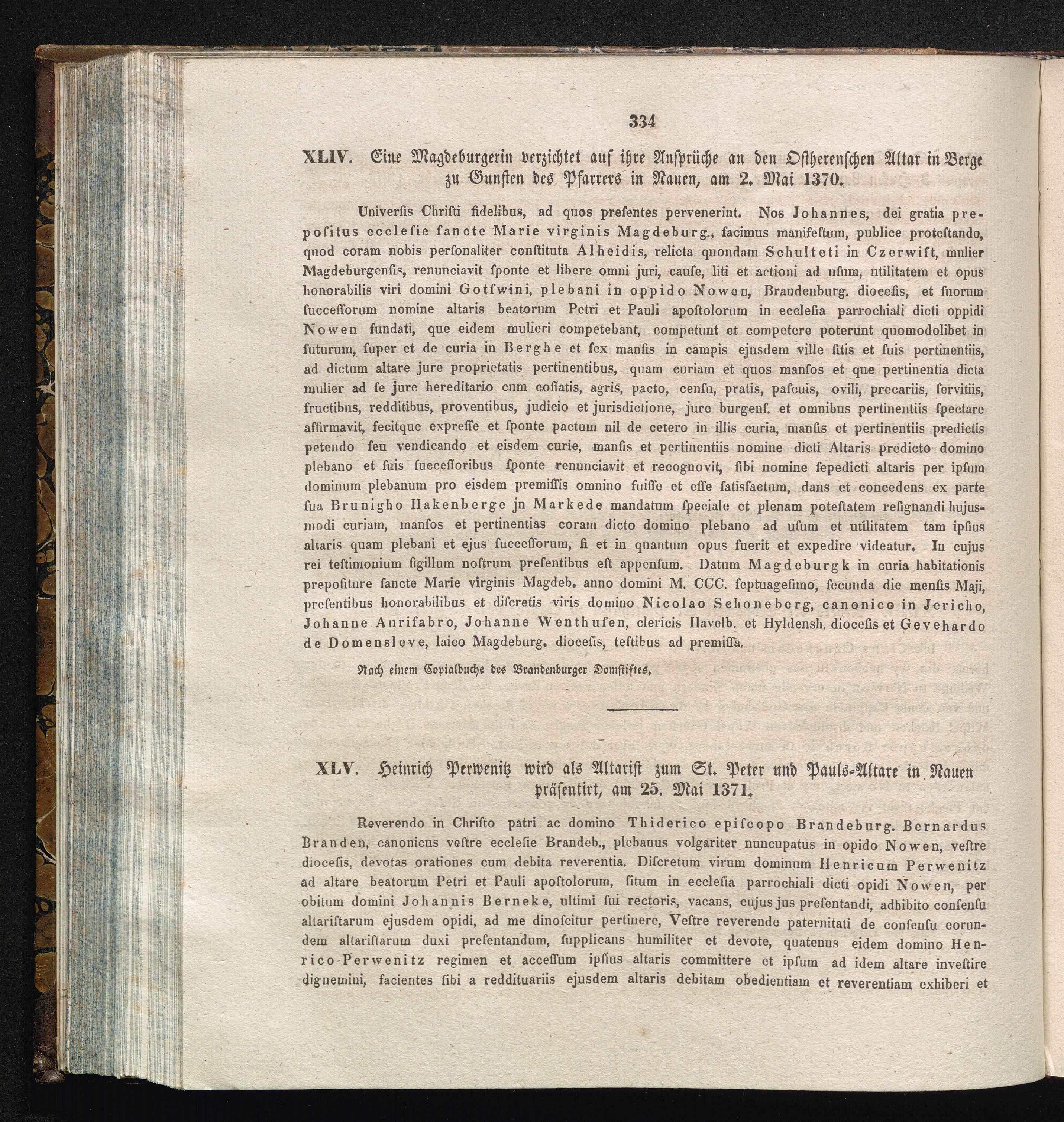 XLV. Heinrich Perwenitz wird als Altarist zum St. Peter und Pauls - Altare in Nauen[...]