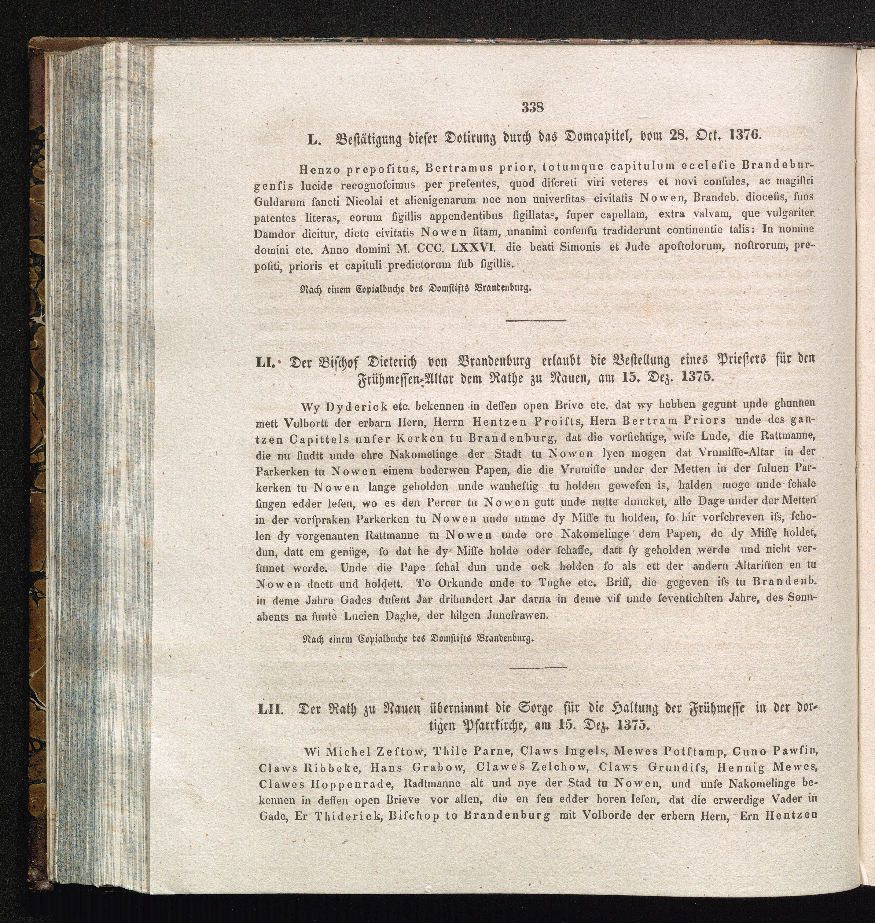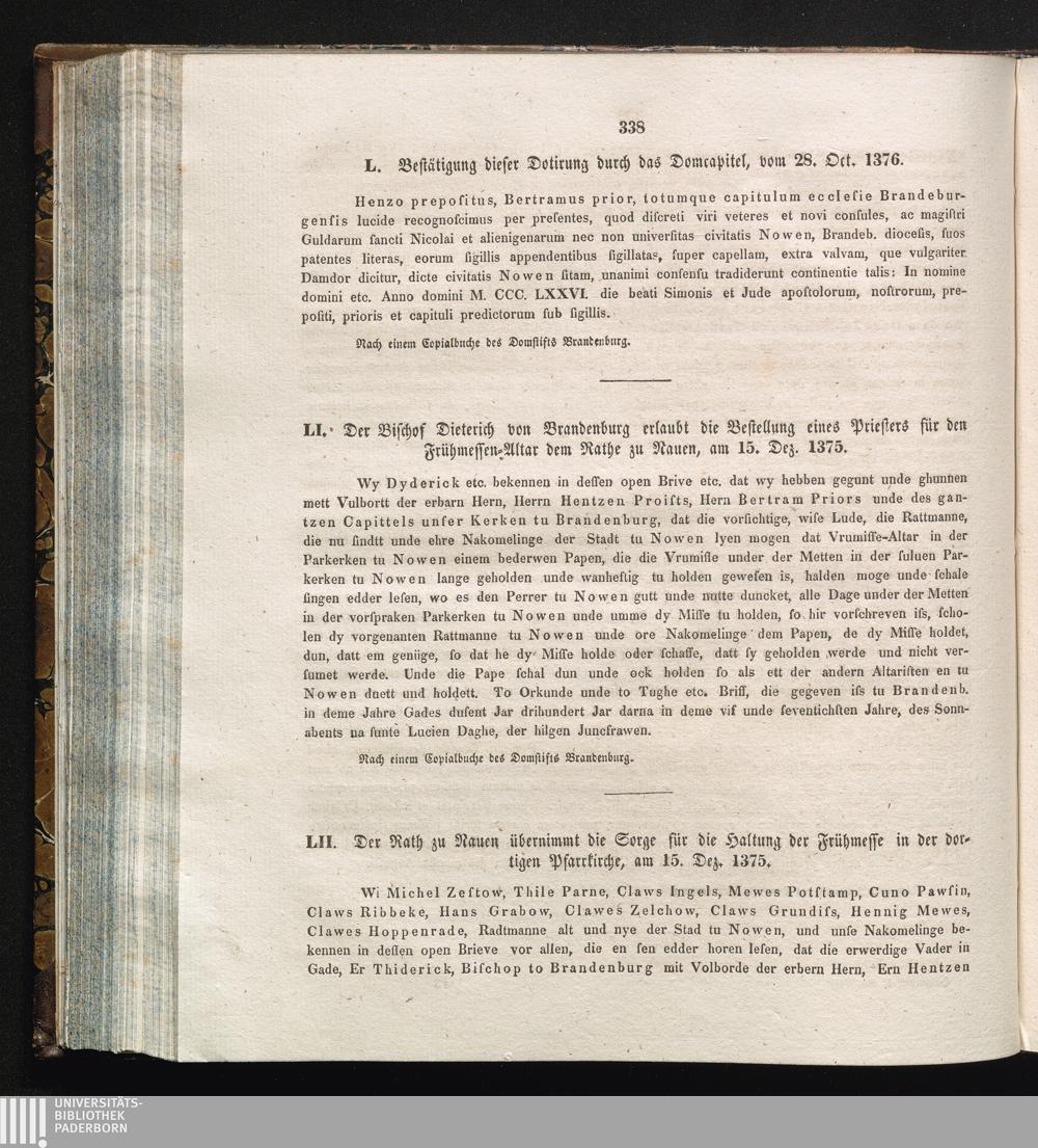 LII. Der Rath zu Nauen übernimmt die Sorge für die Haltung der Frühmesse in der dortigen[...]