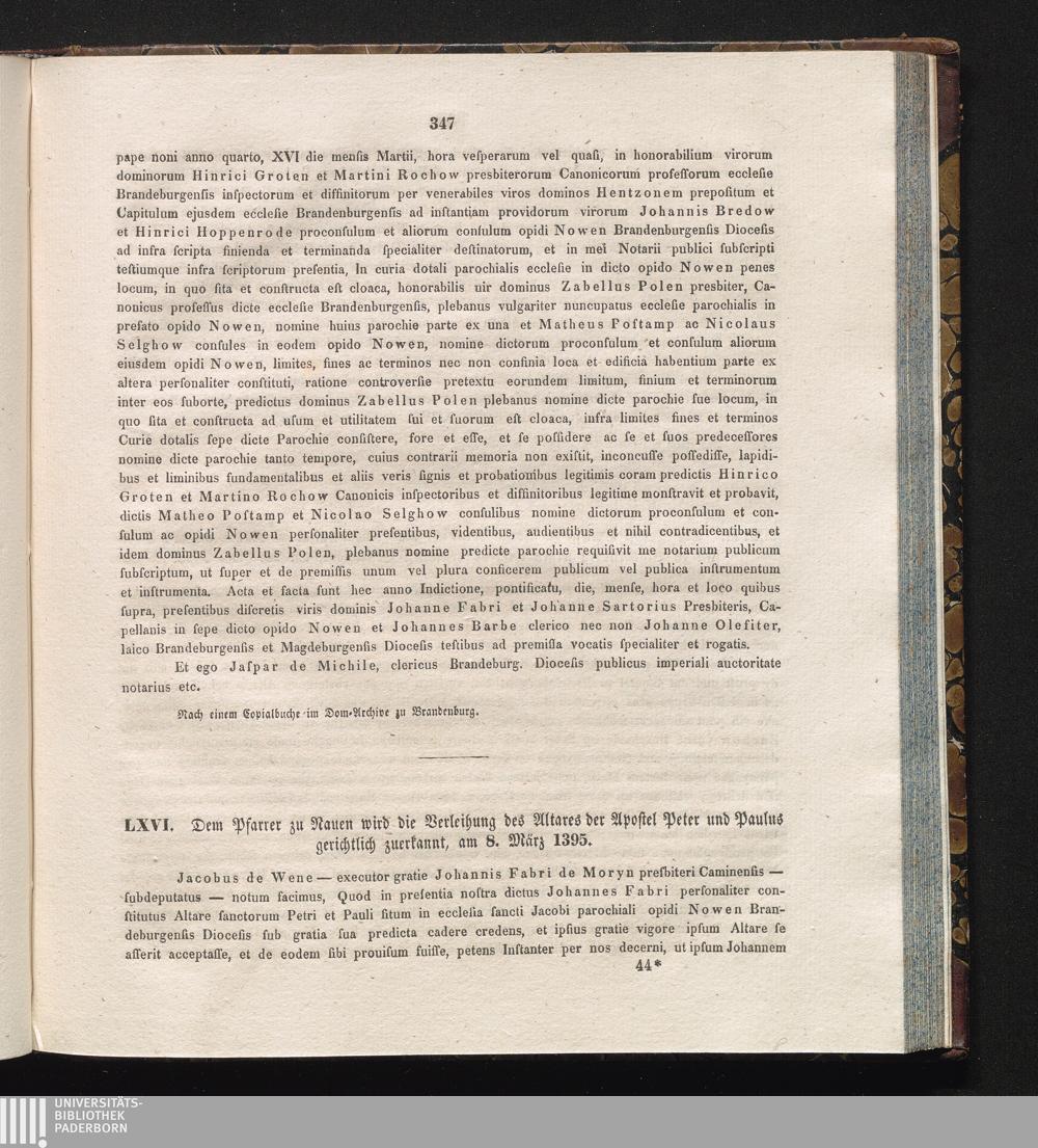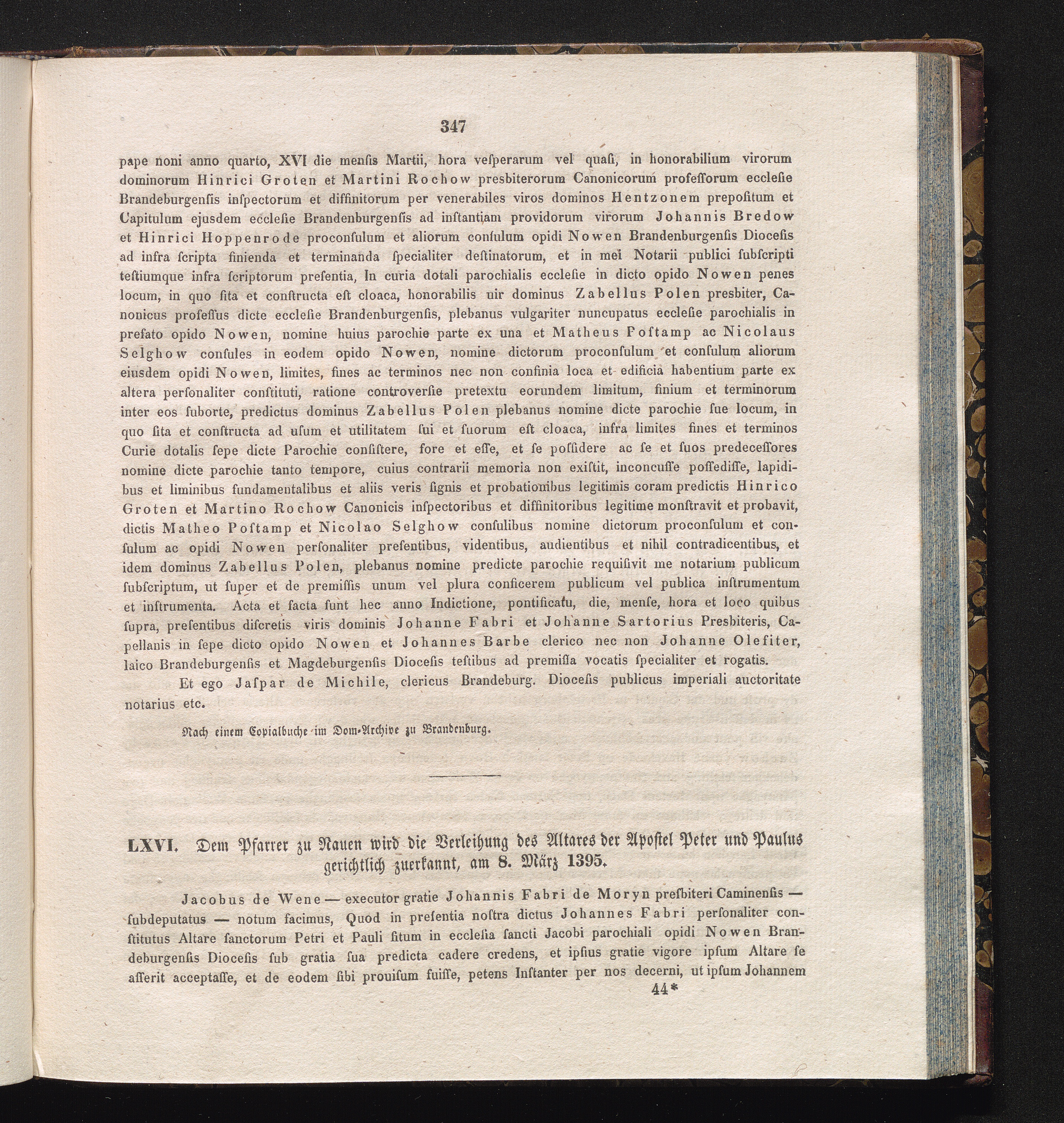 LXV. Notariatsinstrument über den Umfang des Fundus der Pfarrwohnung in Nauen, vom[...]