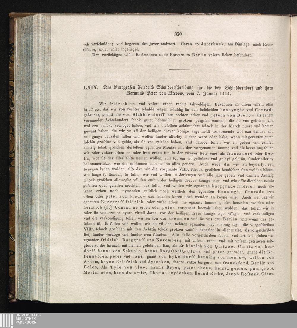 LXIX. Des Burggrafen Friedrich Schuldverschreibung für die von Schlabberndorf und[...]
