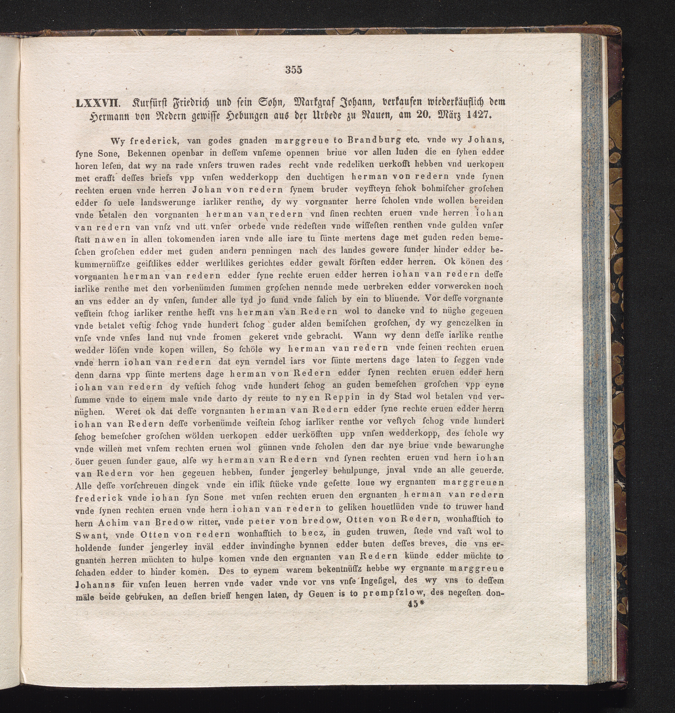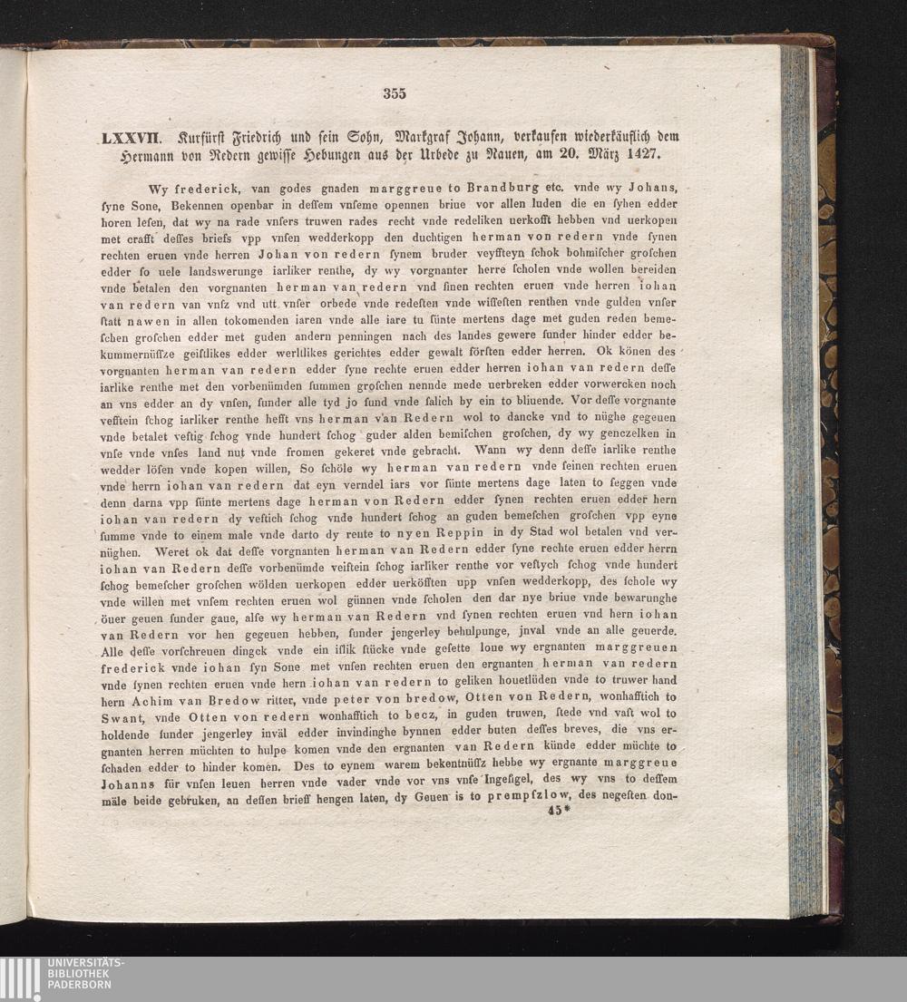 LXXVII. Kurfürst Friedrich und sein Sohn, Markgraf Johann, verkaufen wiederkäuflich[...]