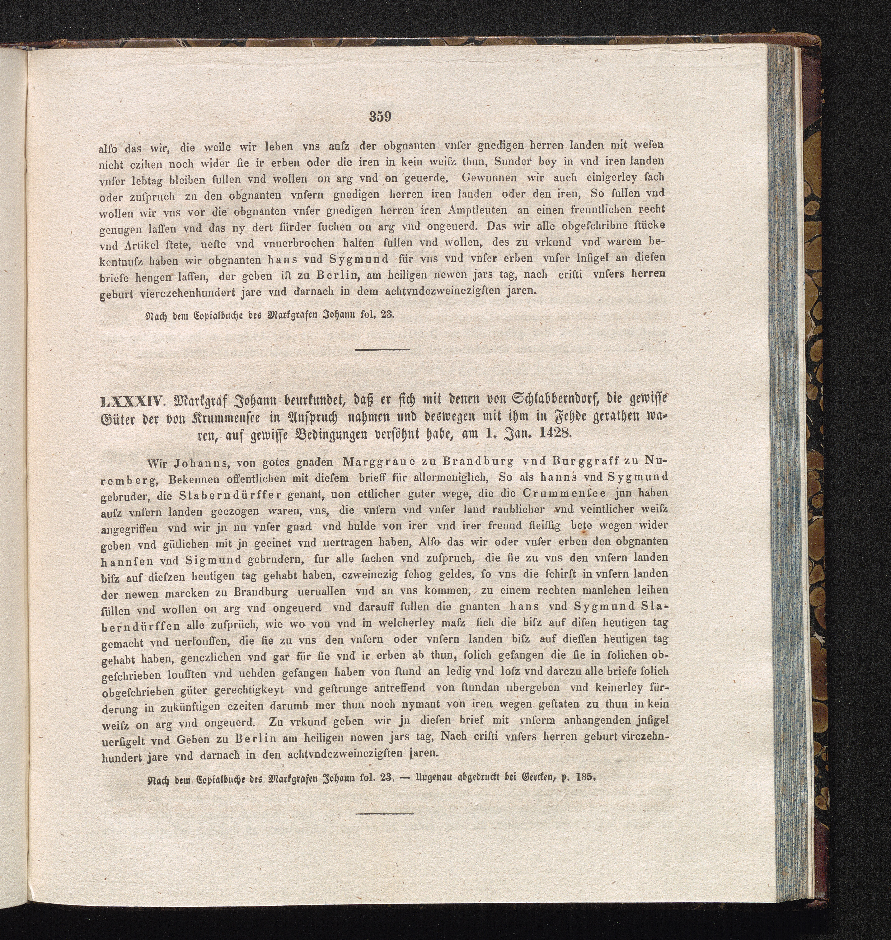 LXXXIV. Markgraf Johann beurkundet, daß er sich mit denen von Schlabberndorf, die[...]