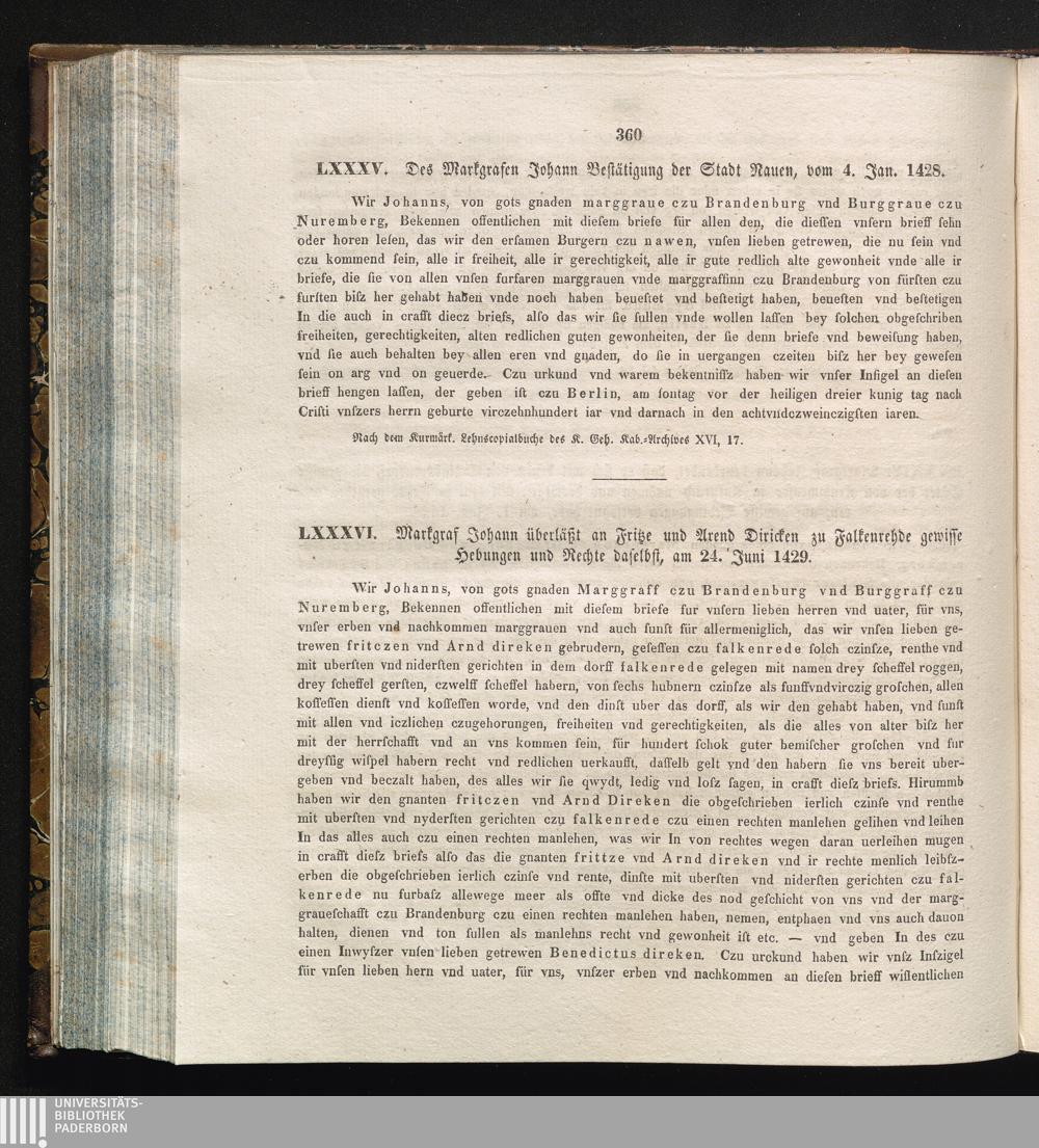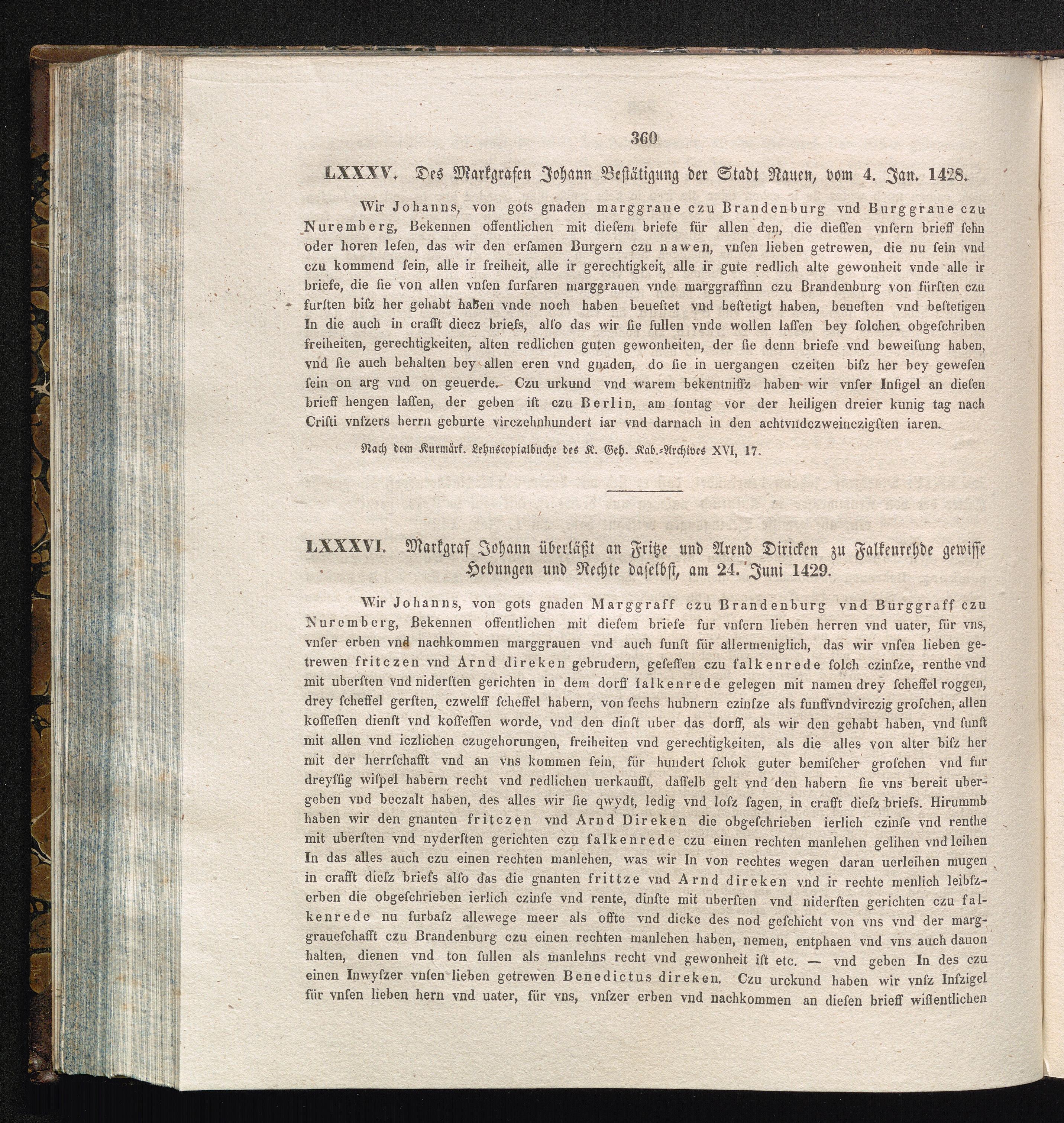LXXXVI. Markgraf Johann überläßt an Fritze und Arend Diricken zu Falkenrehde gewisse[...]