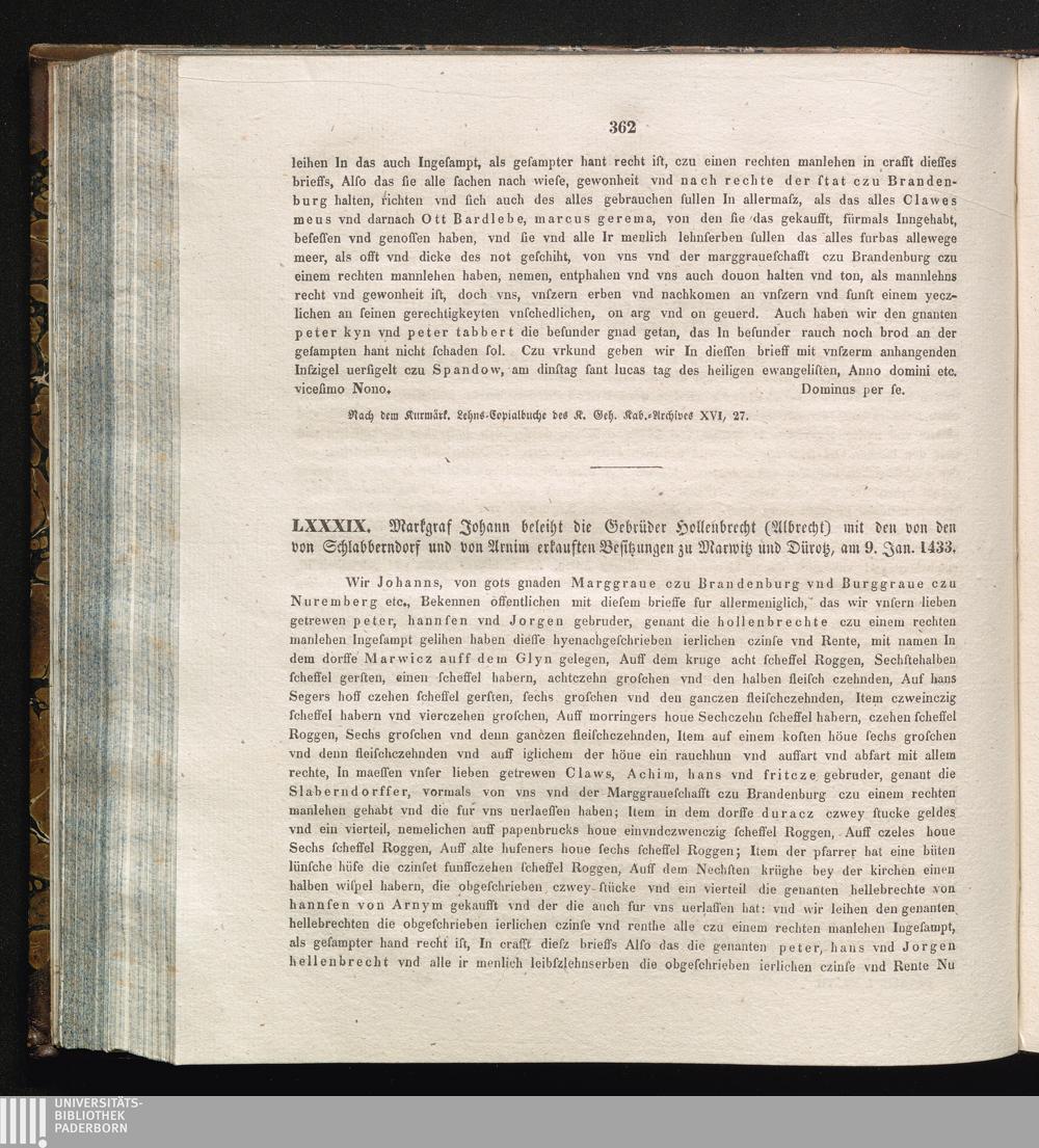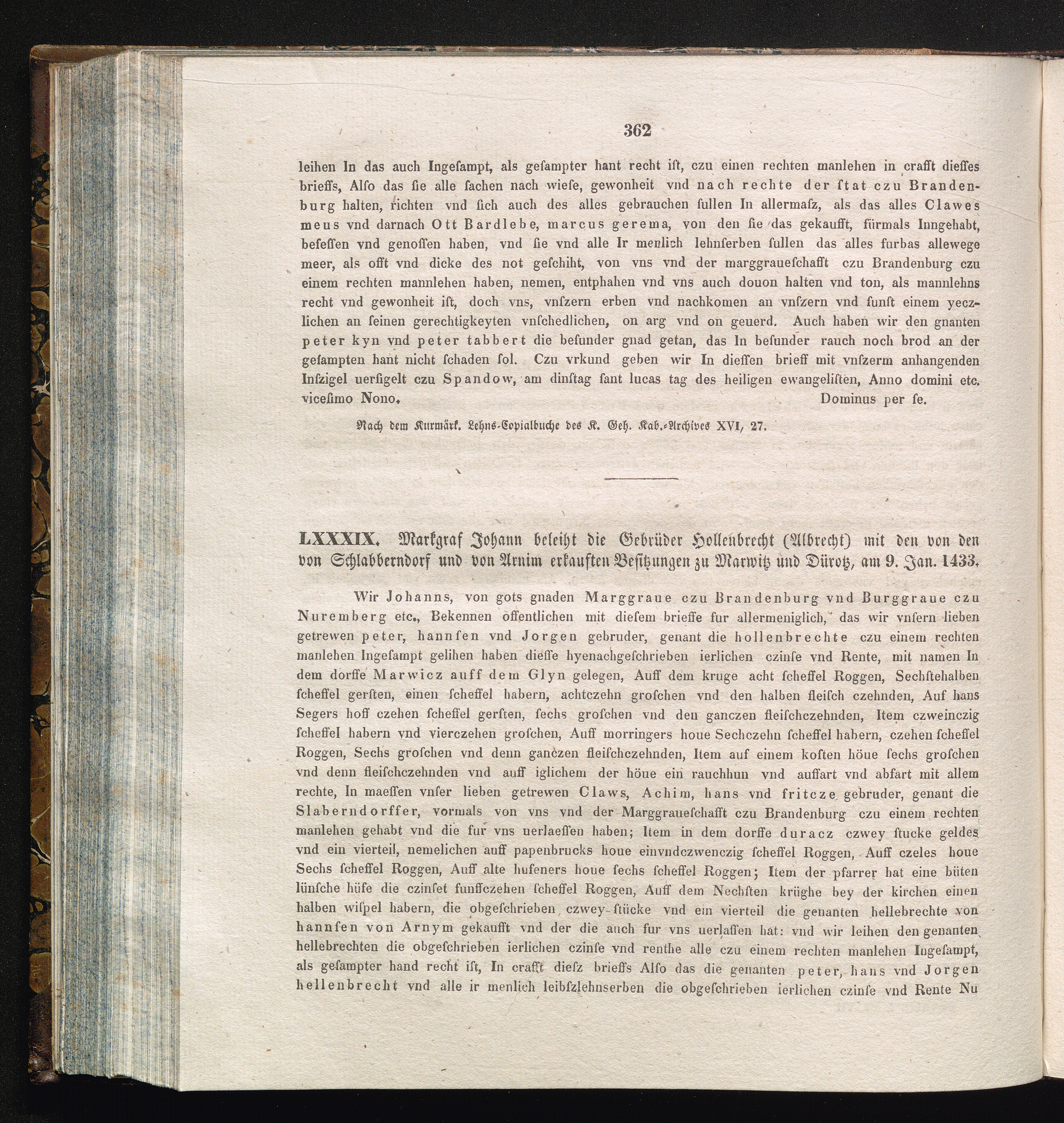 LXXXIX. Markgraf Johann beleiht die Gebrüder Hollenbrecht (Albrecht) mit den von[...]