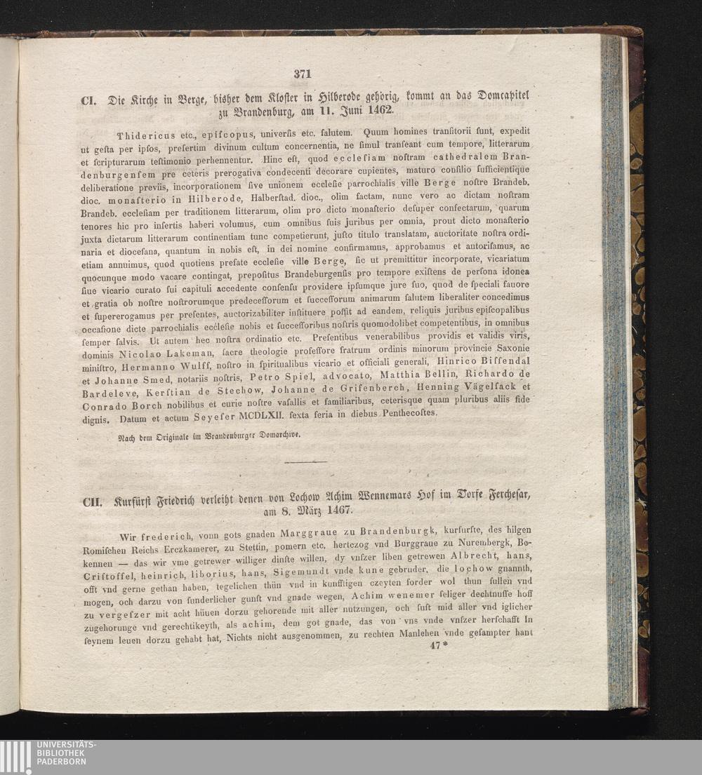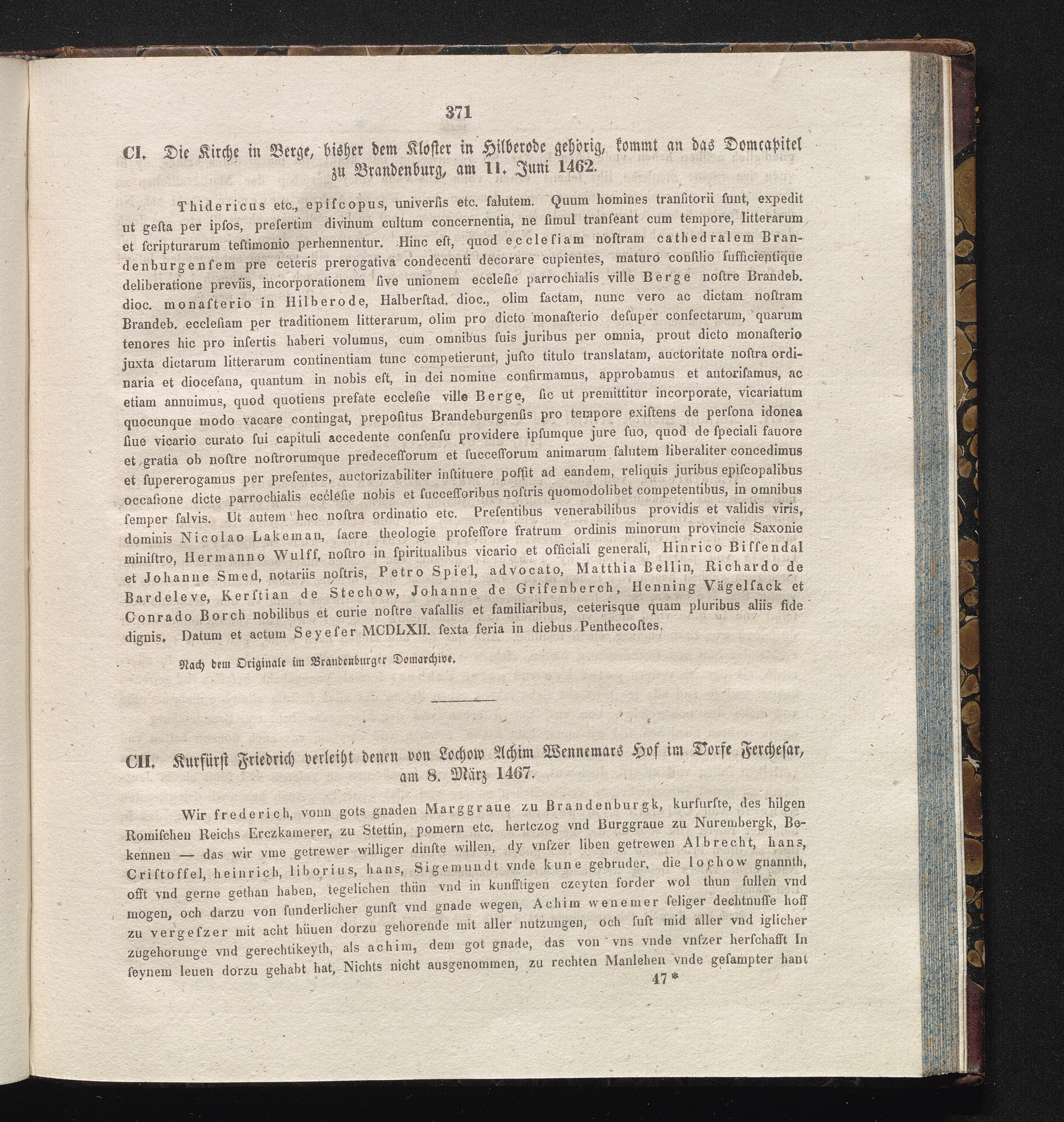 CII. Kurfürst Friedrich verleiht denen von Lochow Achim Wennemars Hof im Dorfe Ferchesar,[...]