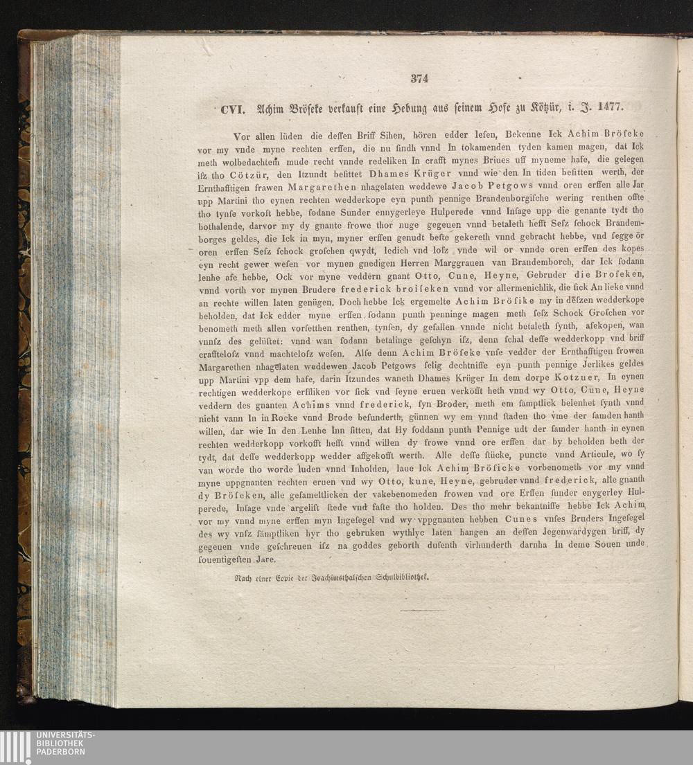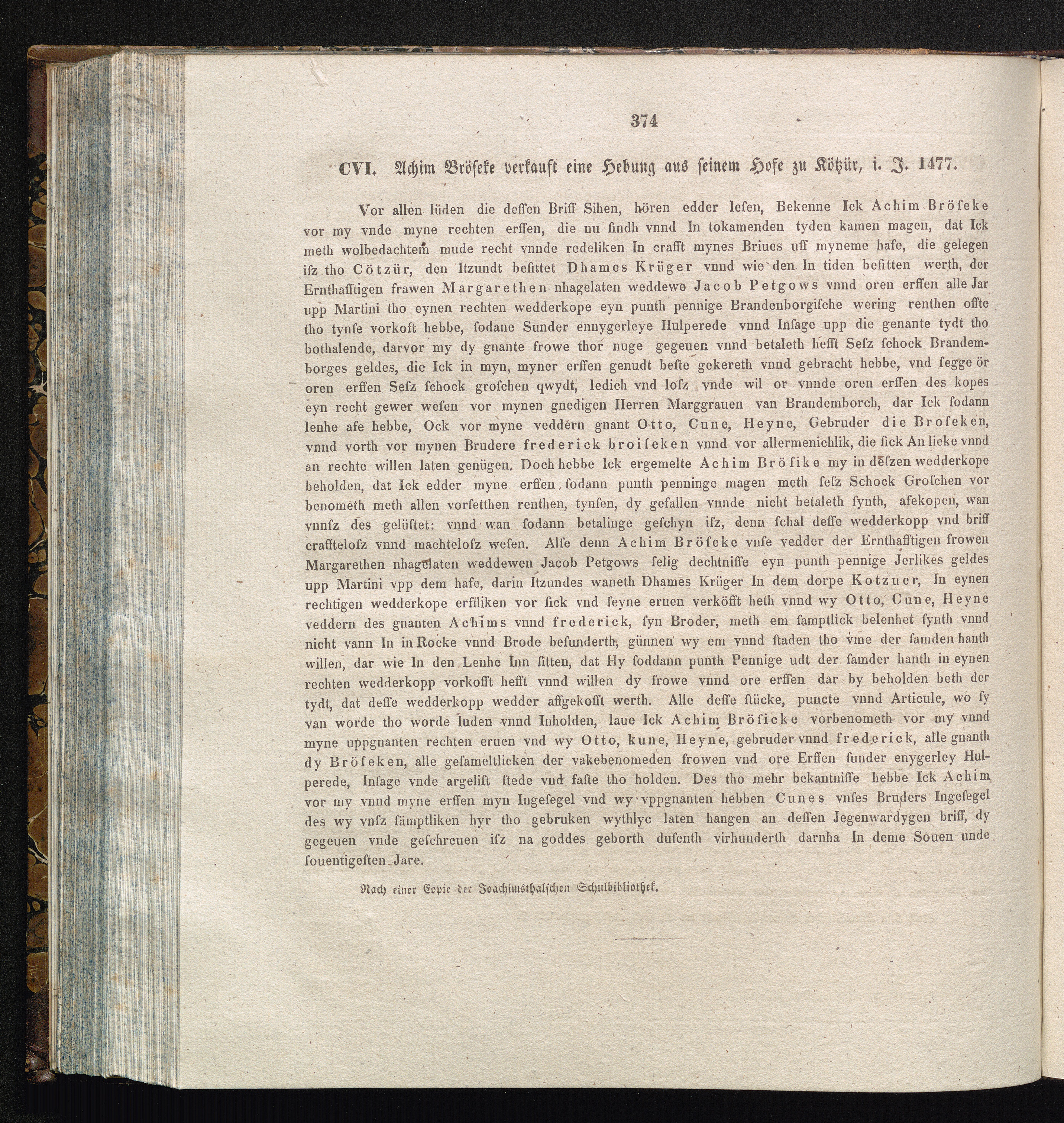 CVI. Achim Bröseke verkauft eine Hebung aus einem Hofe zu Kötzür, i. J. 1477.