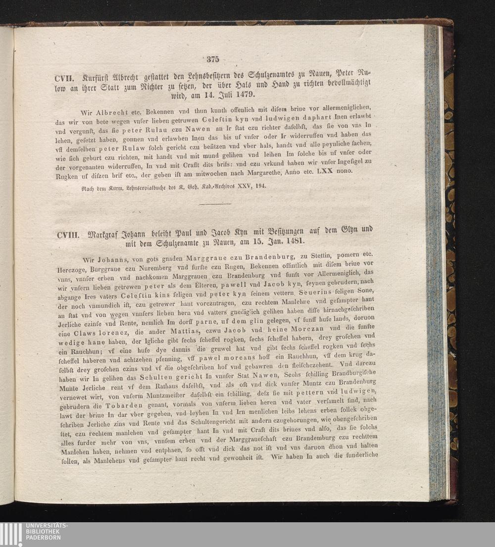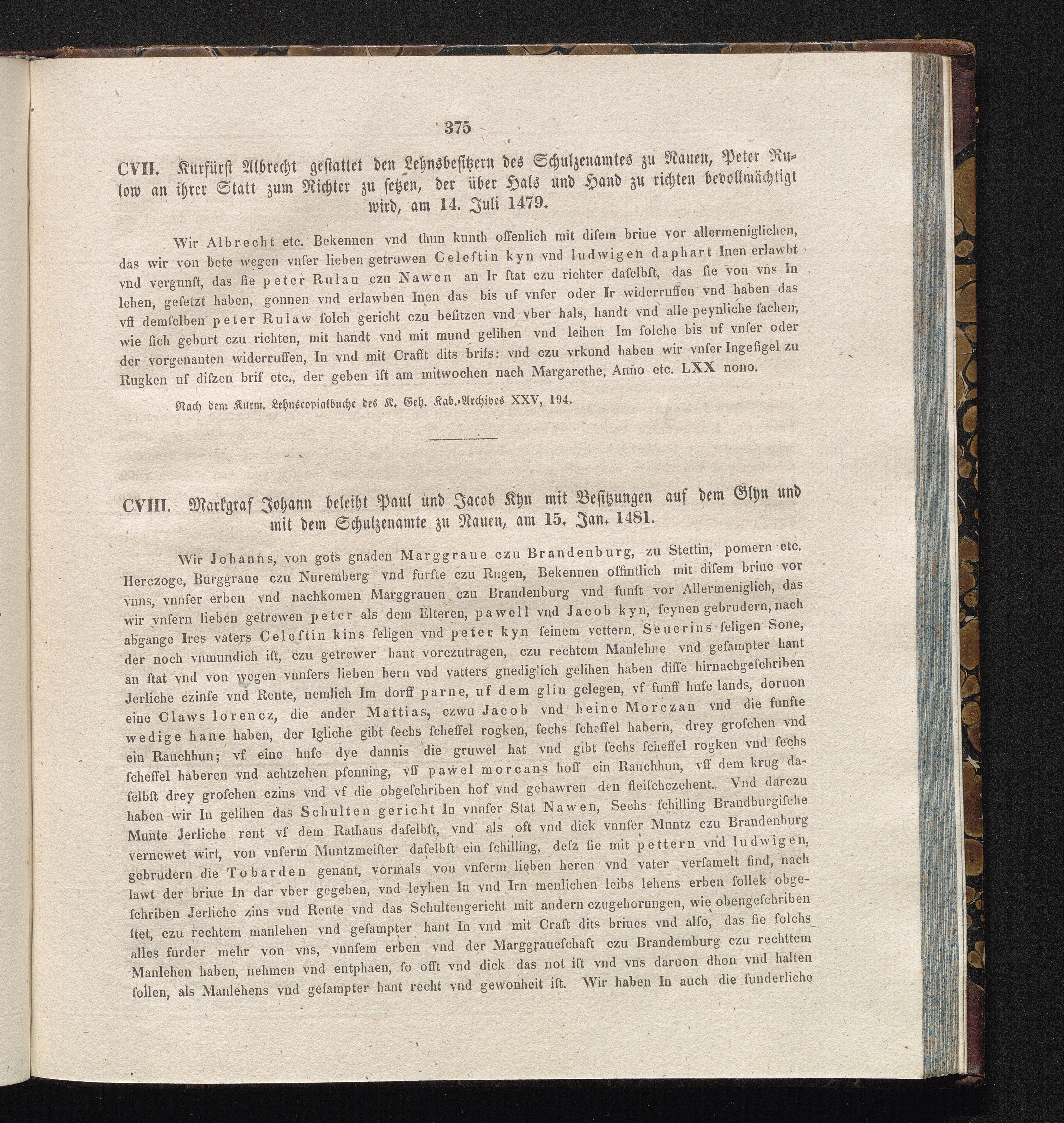 CVIII. Markgraf Johann beleiht Paul und Jacob Kyn mit Besitzungen auf dem Glyn und[...]