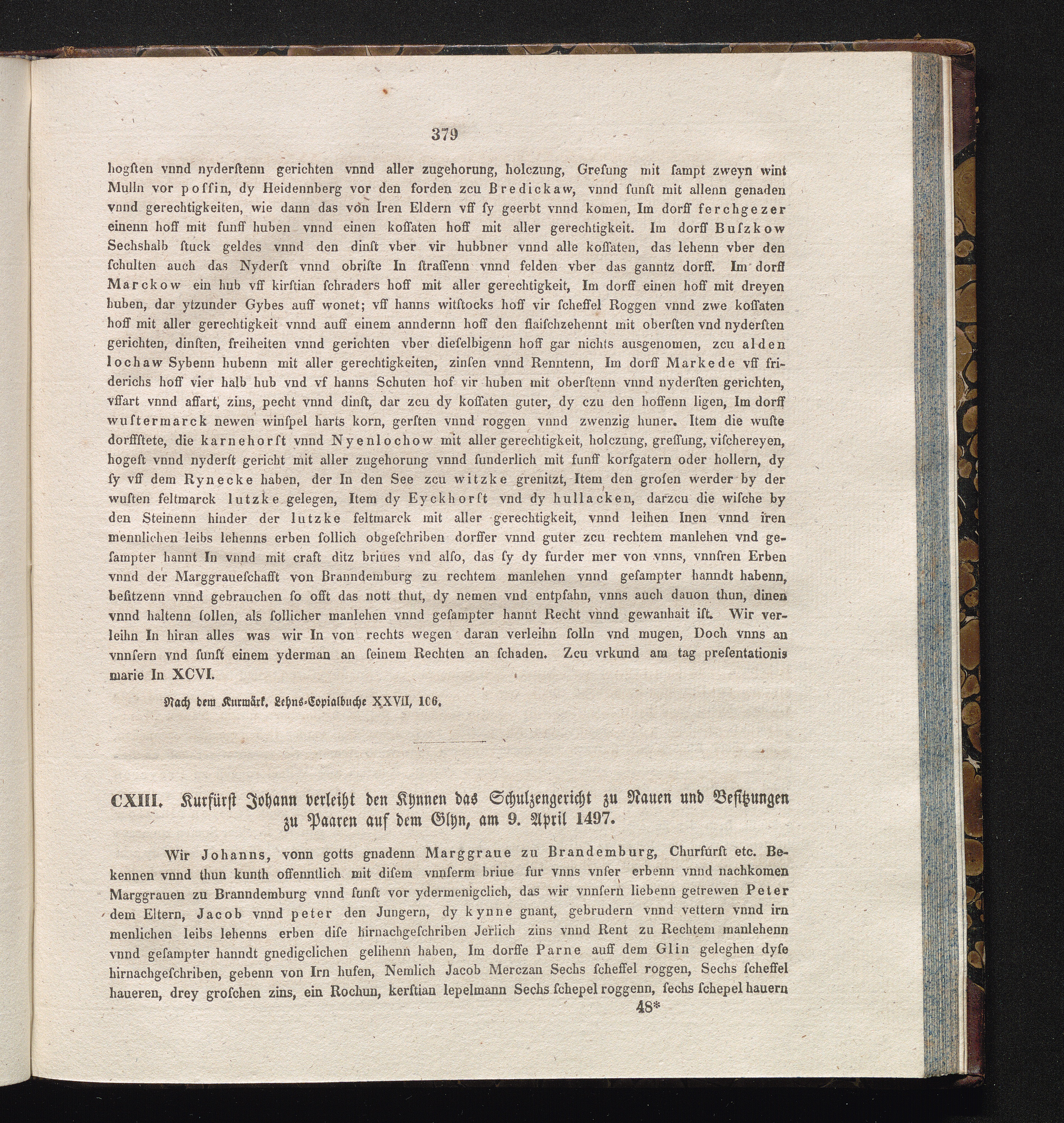 CXIII. Kurfürst Johann verleiht den Kynnen das Schulzengericht zu Nauen und Besitzungen[...]