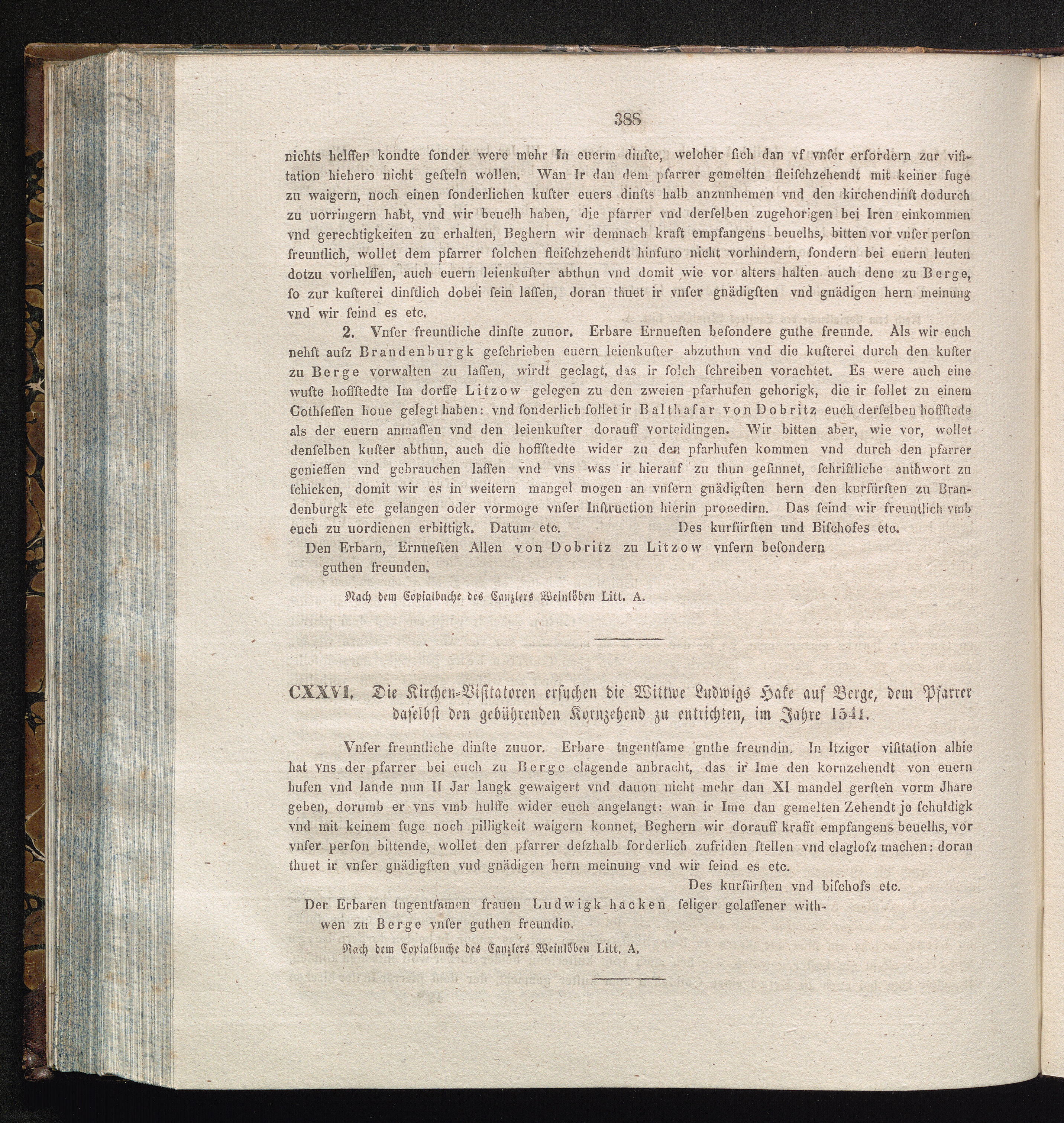 CXXVI. Die Kirchen-Visitatoren ersuchen die Wittwe Ludwigs Hake auf Berge, dem Pfarrer[...]