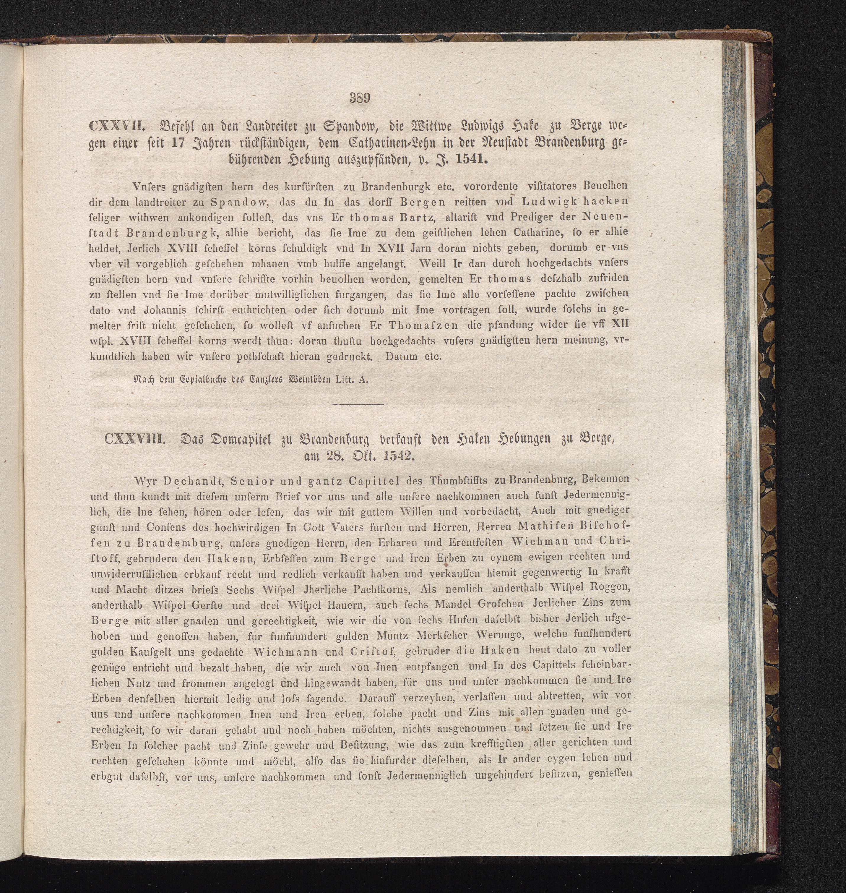 CXXVIII. Das Domcapitel zu Brandenburg verkauft den Haken Hebungen zu Berge, am 28.[...]