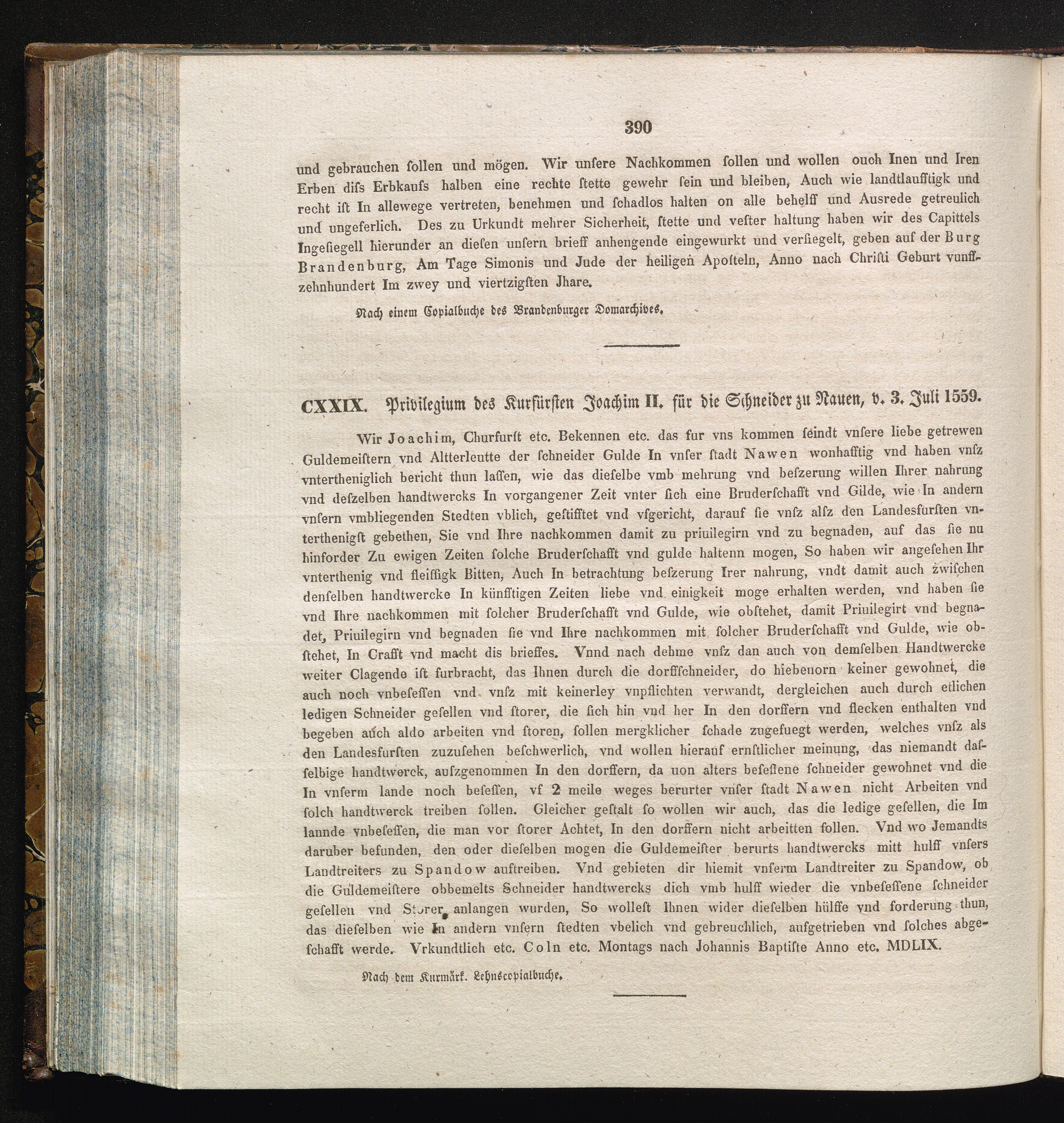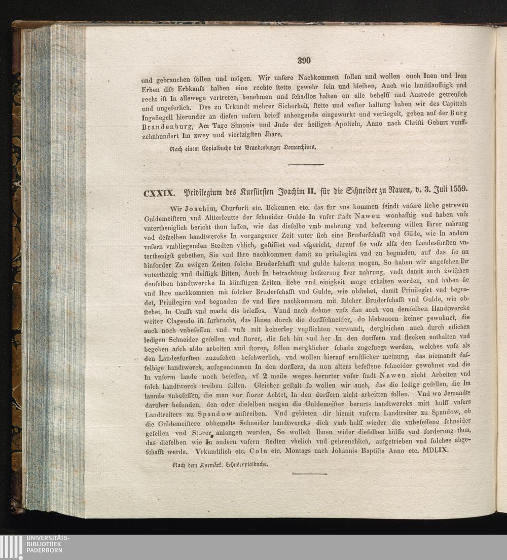 CXXIX. Privilegium des Kurfürsten Joachim II. für die Schneider zu Nauen, v. 3. Juli[...]