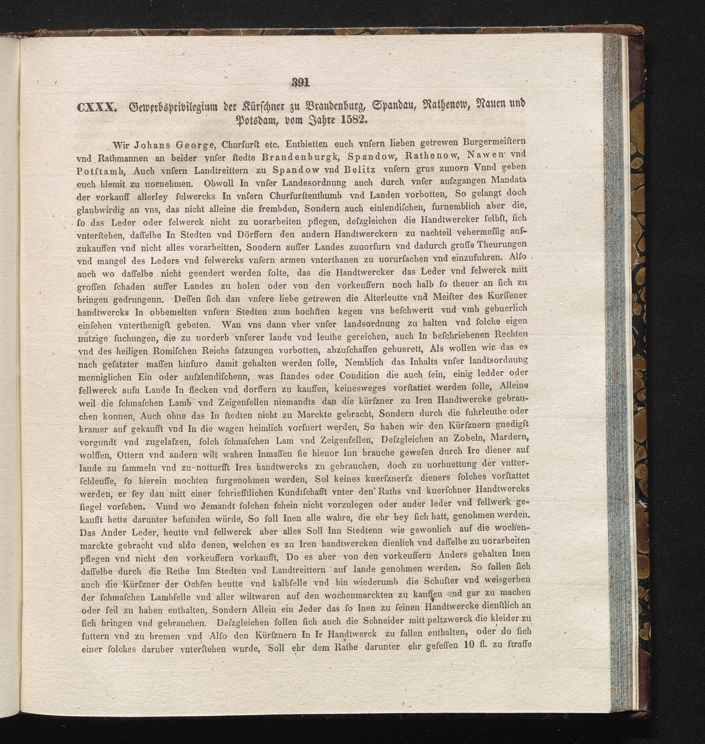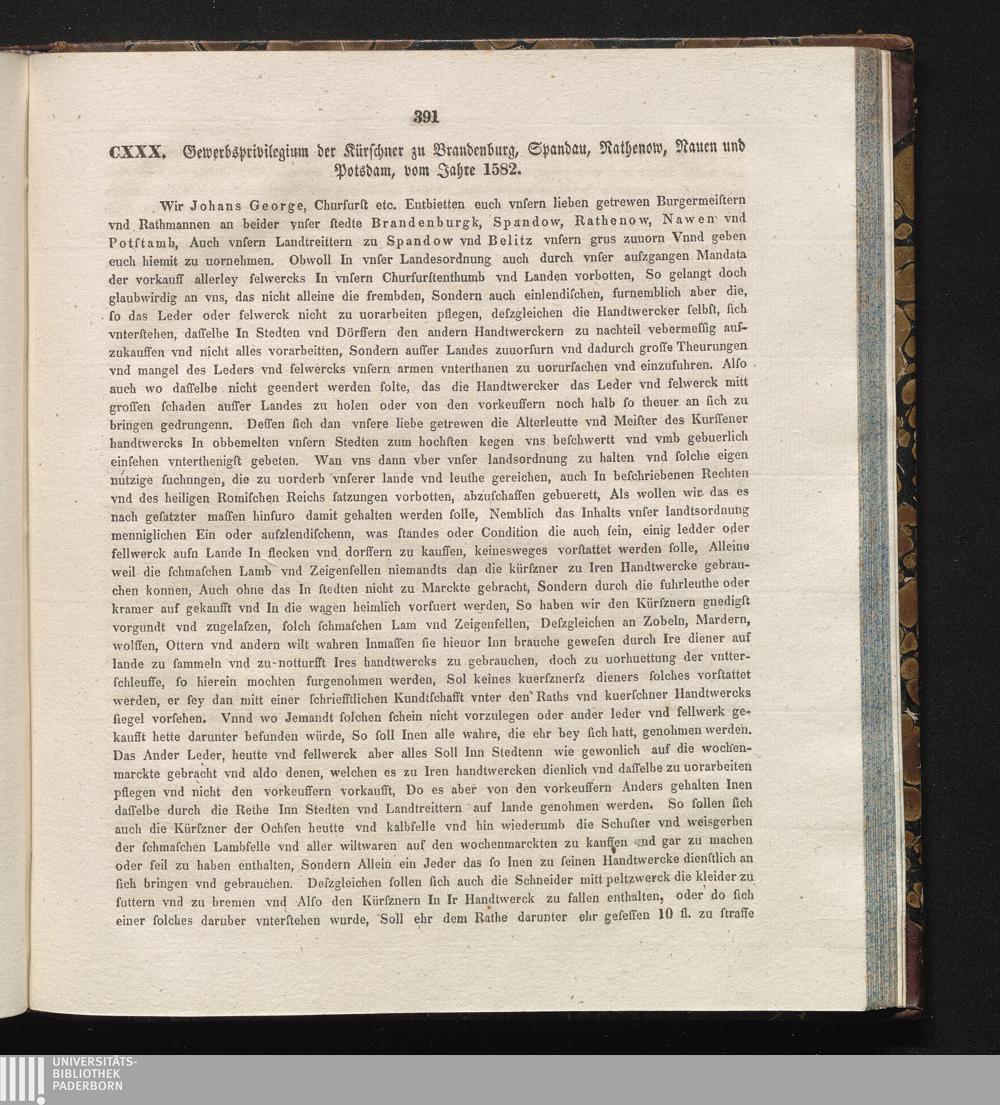 CXXX. Gewerbsprivilegium der Kürschner zu Brandenburg, Spandau, Rathenow, Nauen und[...]