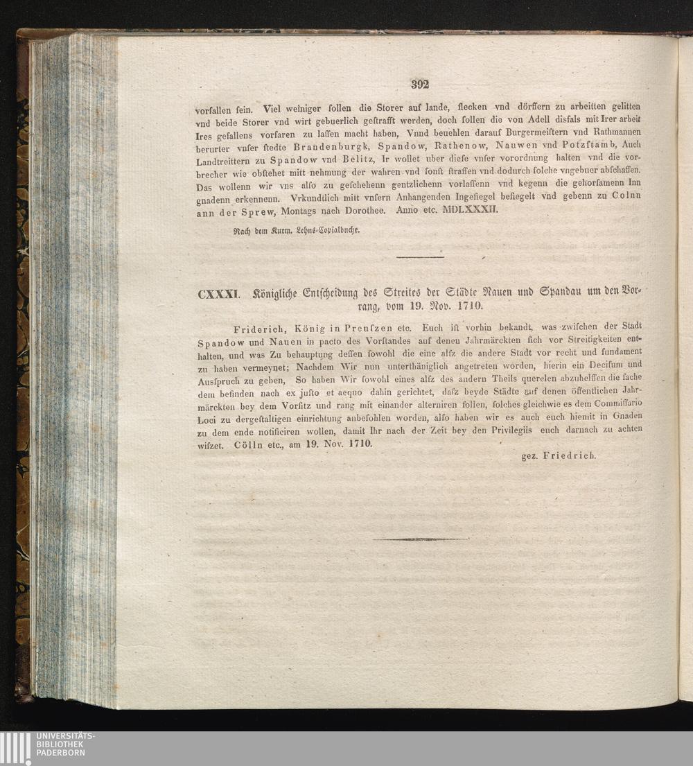 CXXXI. Königliche Entscheidung des Streites der Städte Nauen und Spandau um den Vorrang,[...]