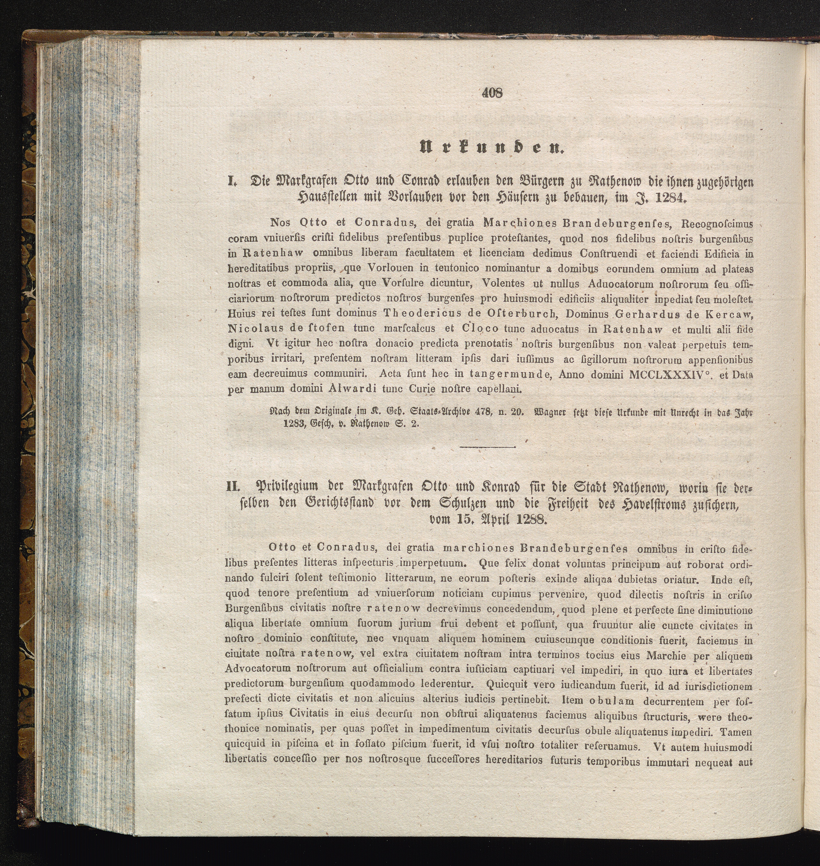 II. Privilegium der Markgrafen Otto und Konrad für die Stadt Rathenow, worin sie[...]