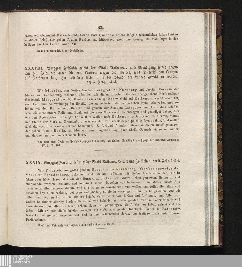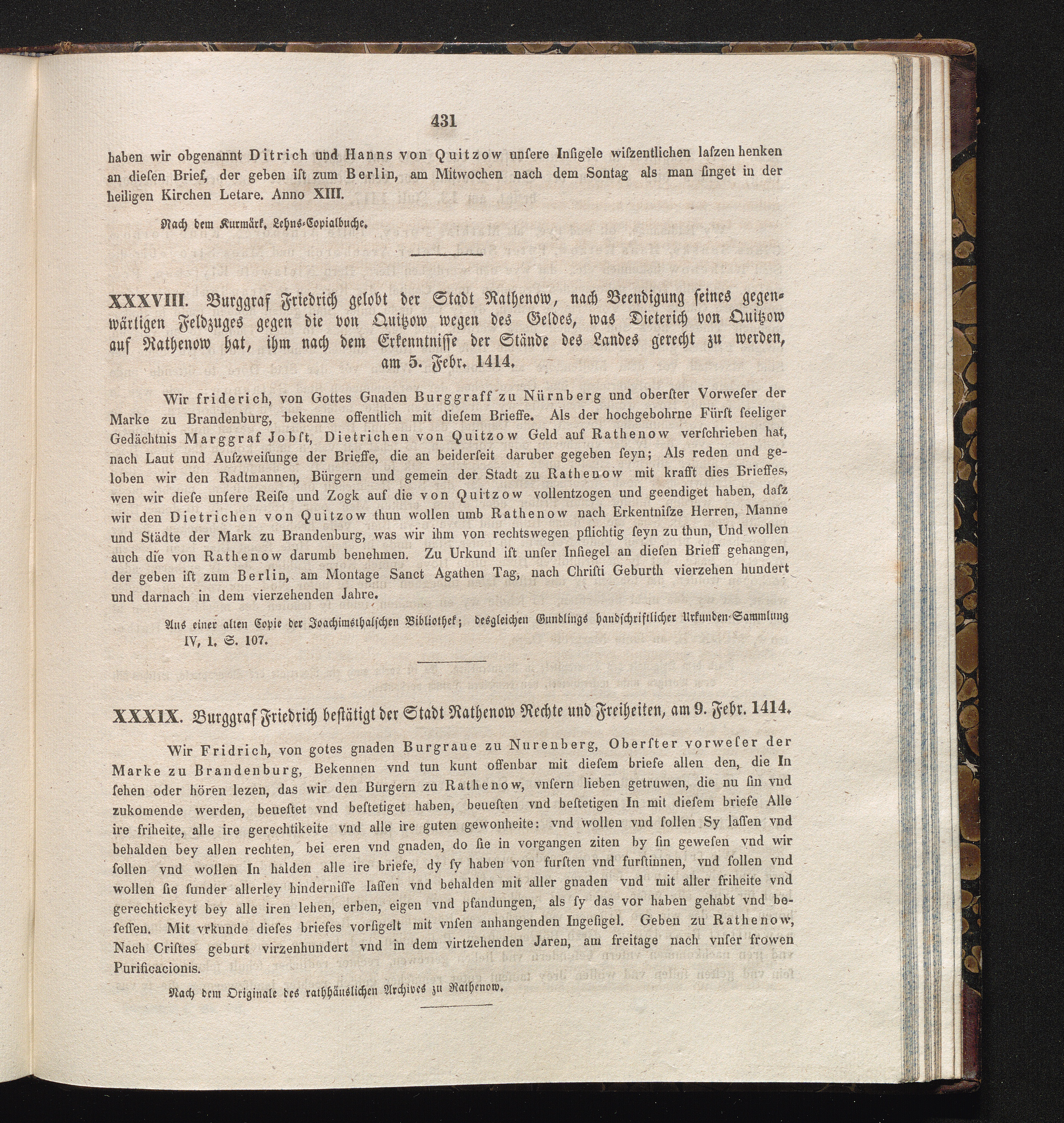XXXIX. Burggraf Friedrich bestätigt der Stadt Rathenow Rechte und Freiheiten, am[...]