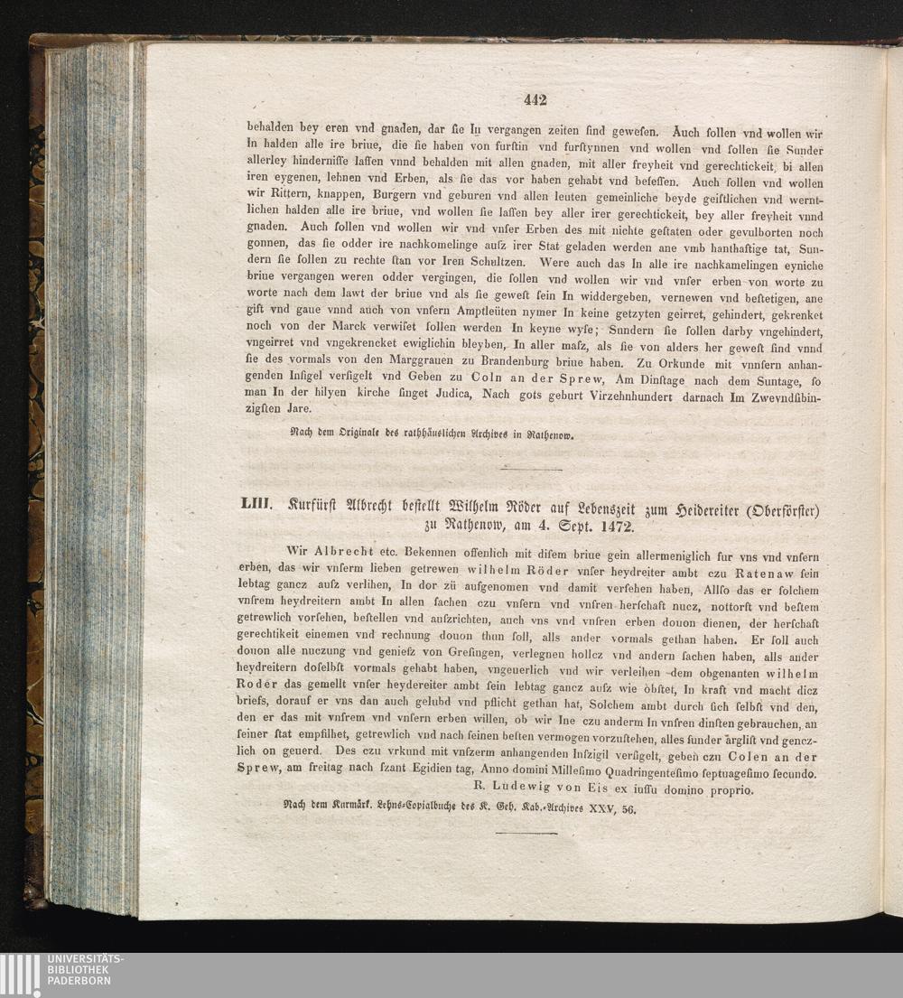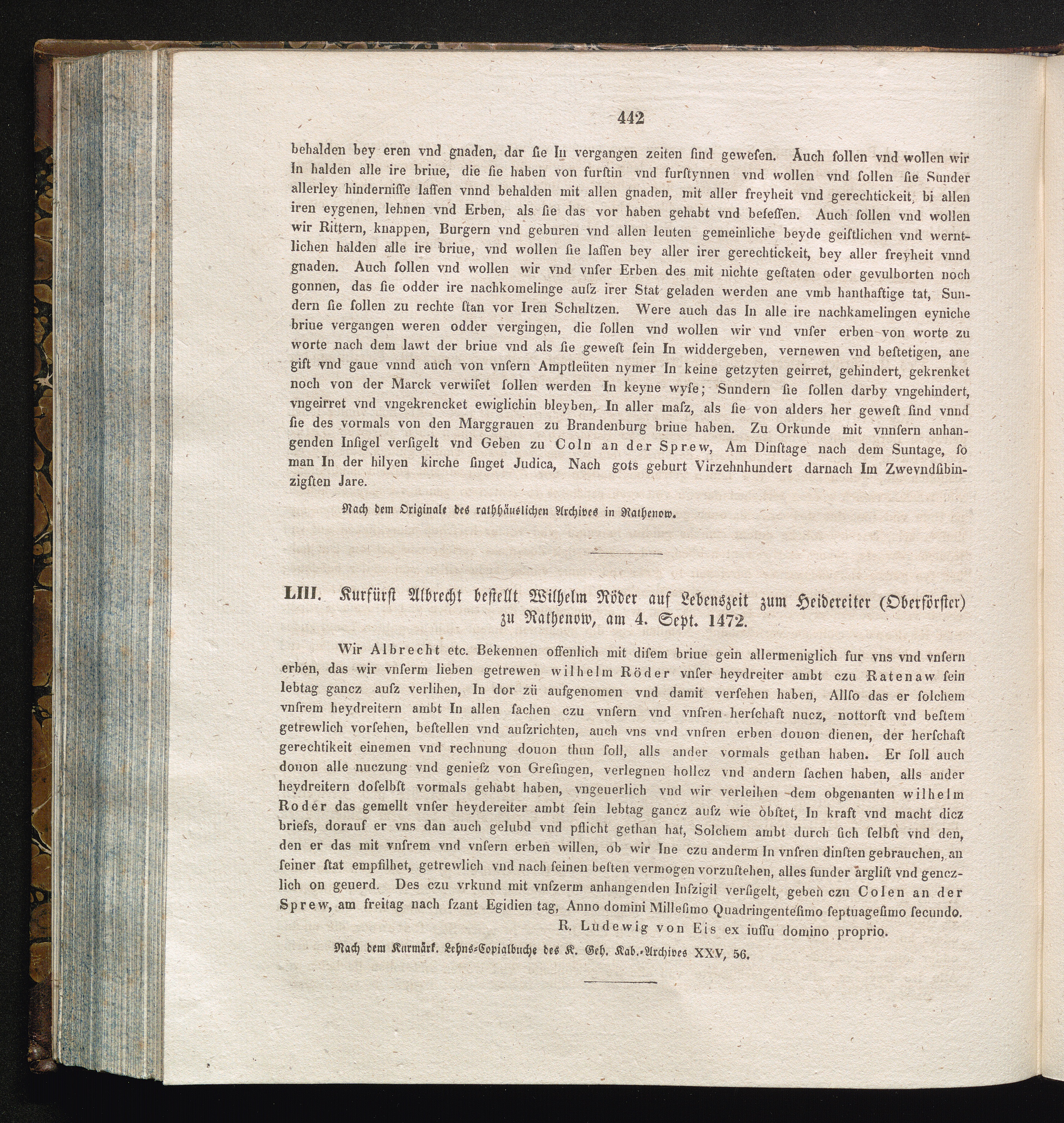 LIII. Kurfürst Albrecht bestellt Wilhelm Röder auf Lebenszeit zum Heidereiter (Oberförster)[...]