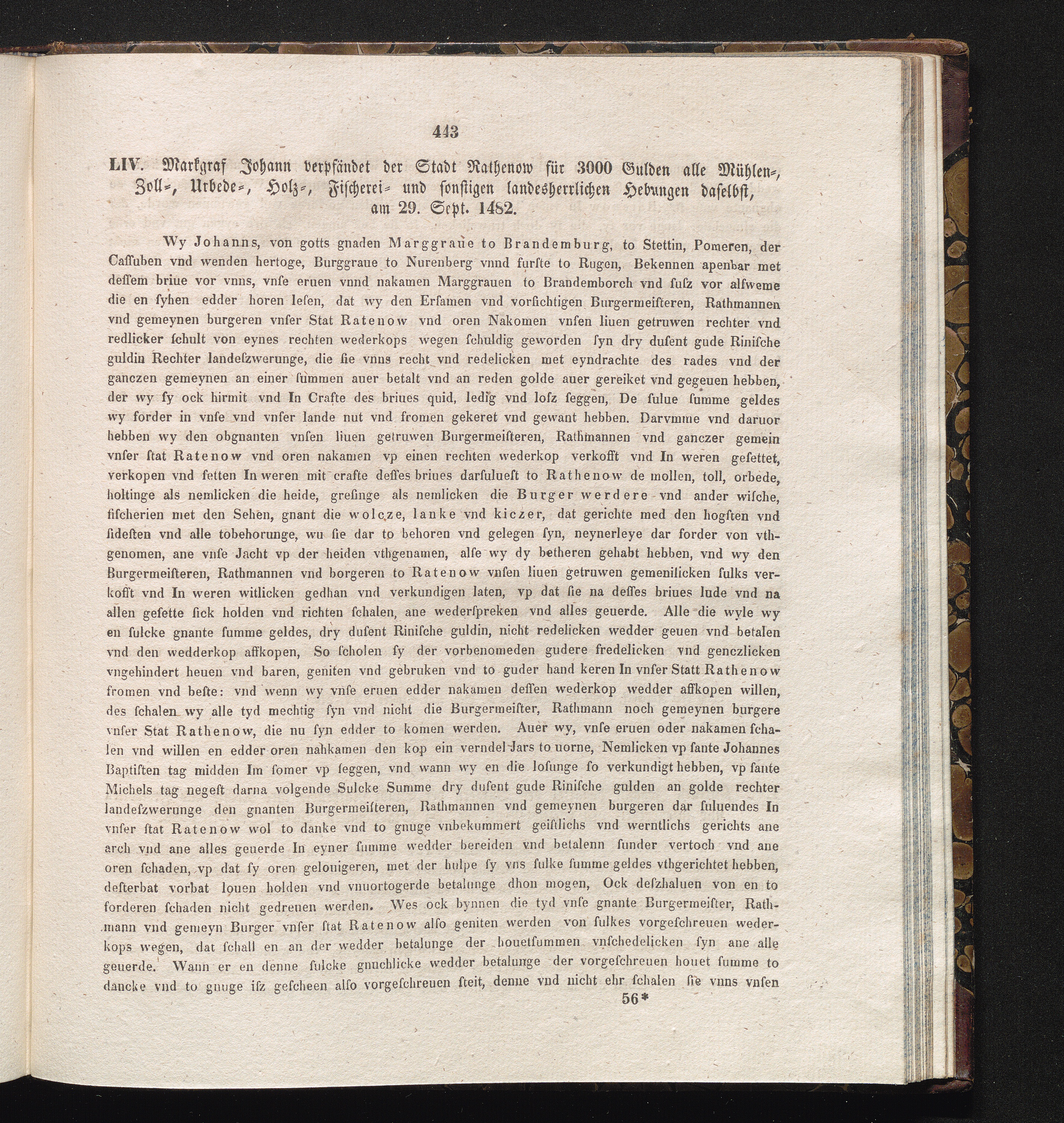 LIV. Markgraf Johann verpfändet der Stadt Rathenow für 3000 Gulden alle Mühlen-,[...]