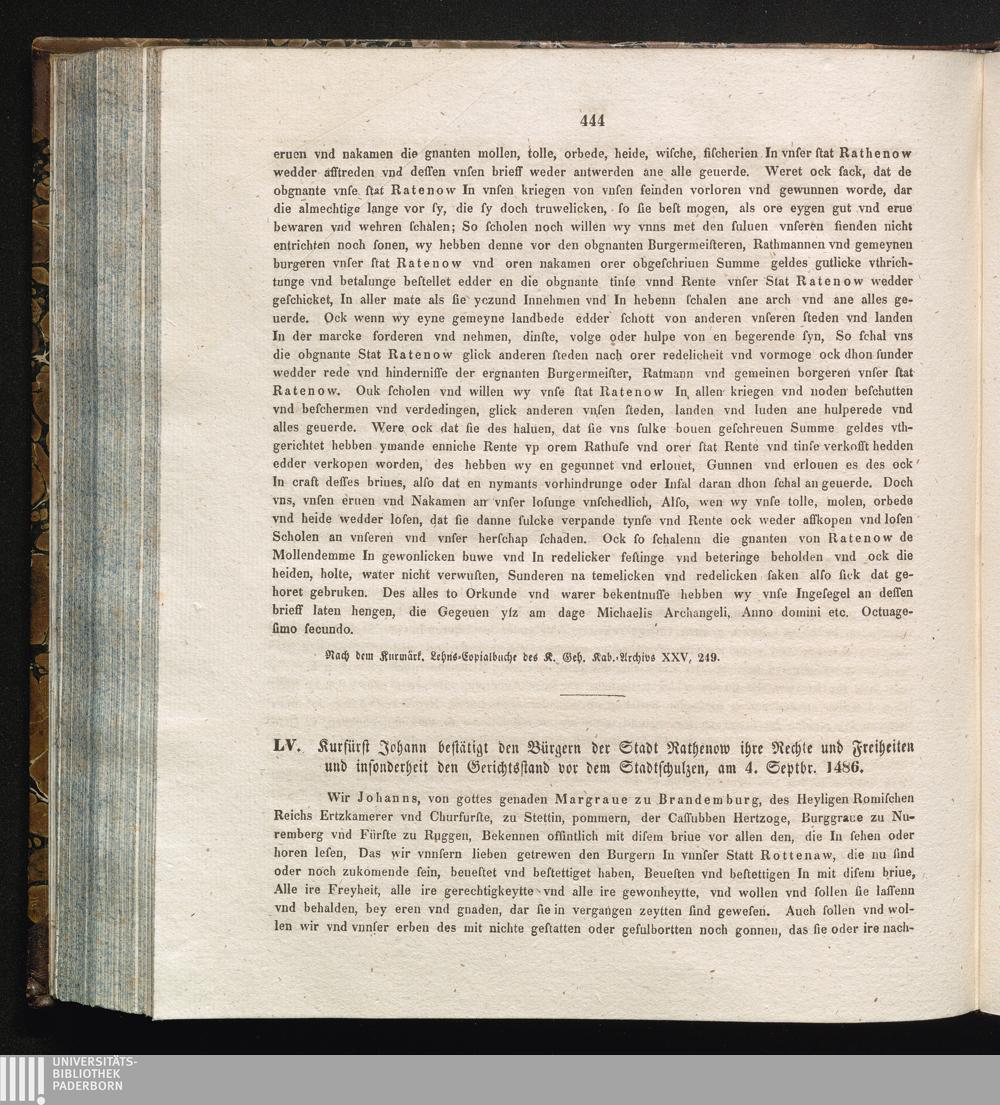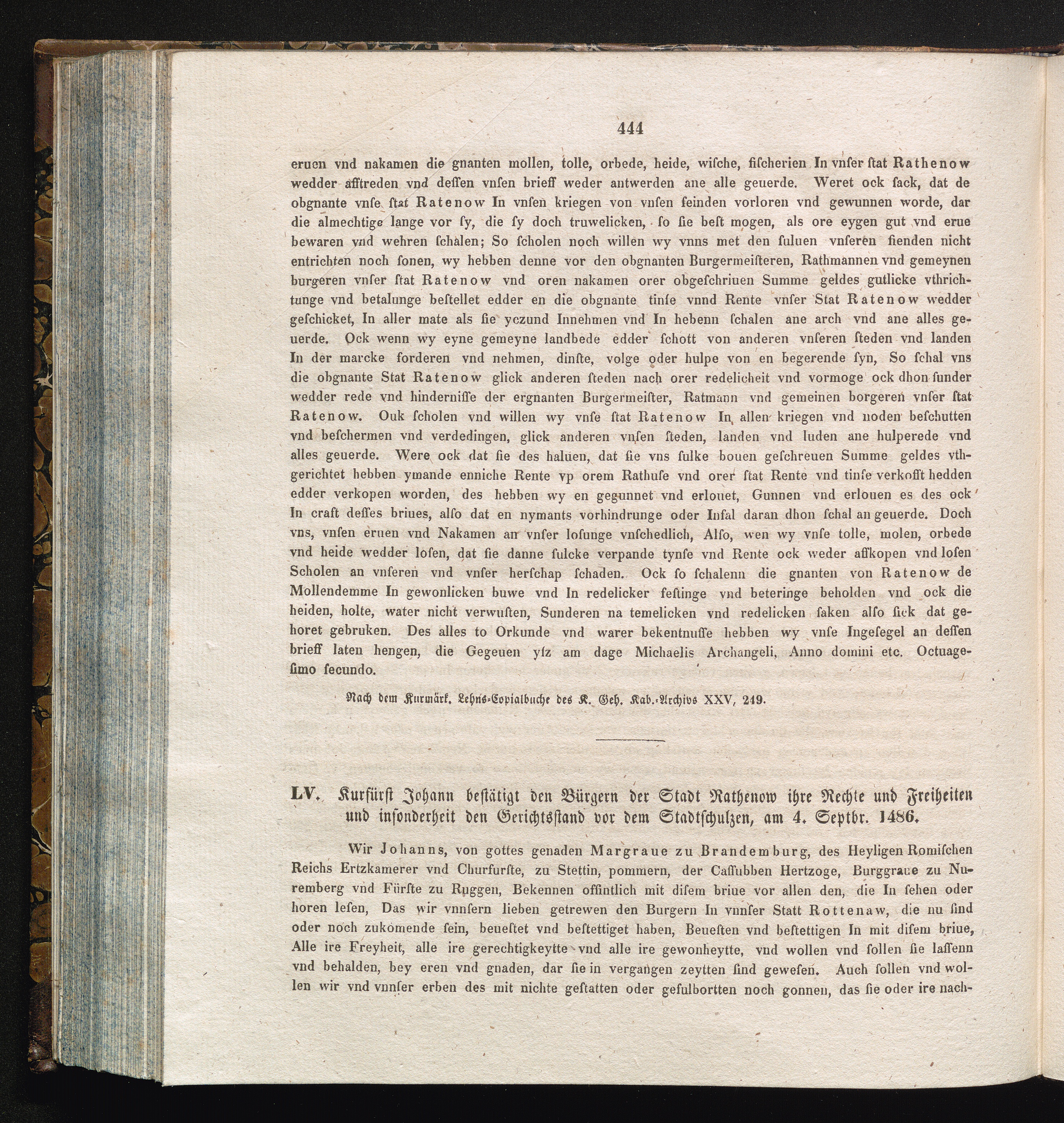 LV. Kurfürst Johann bestätigt den Bürgern der Stadt Rathenow ihre Rechte und Freiheiten[...]