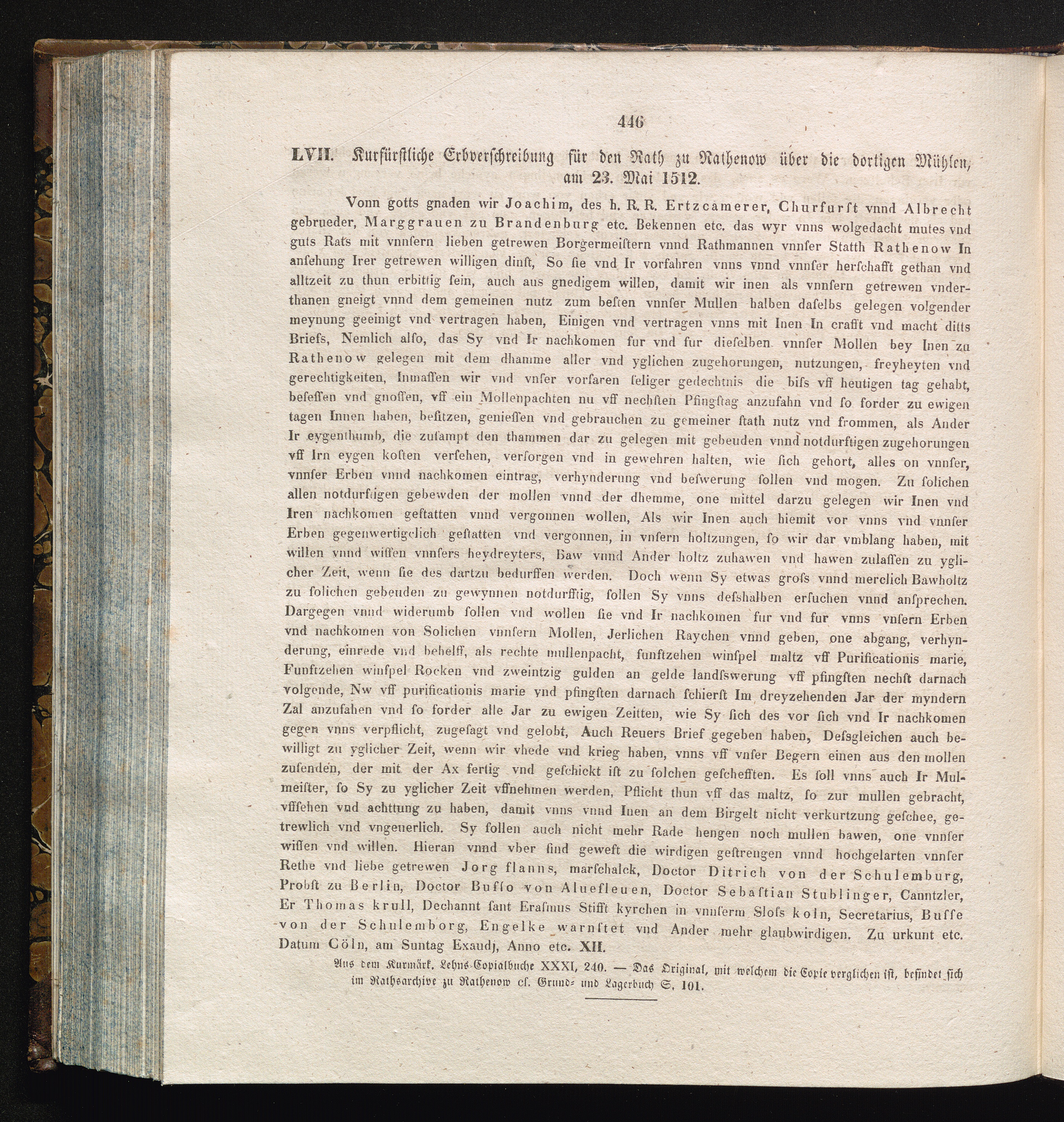 LVII. Kurfürstliche Erbverschreibung für den Rath zu Rathenow über die dortigen Mühlen,[...]