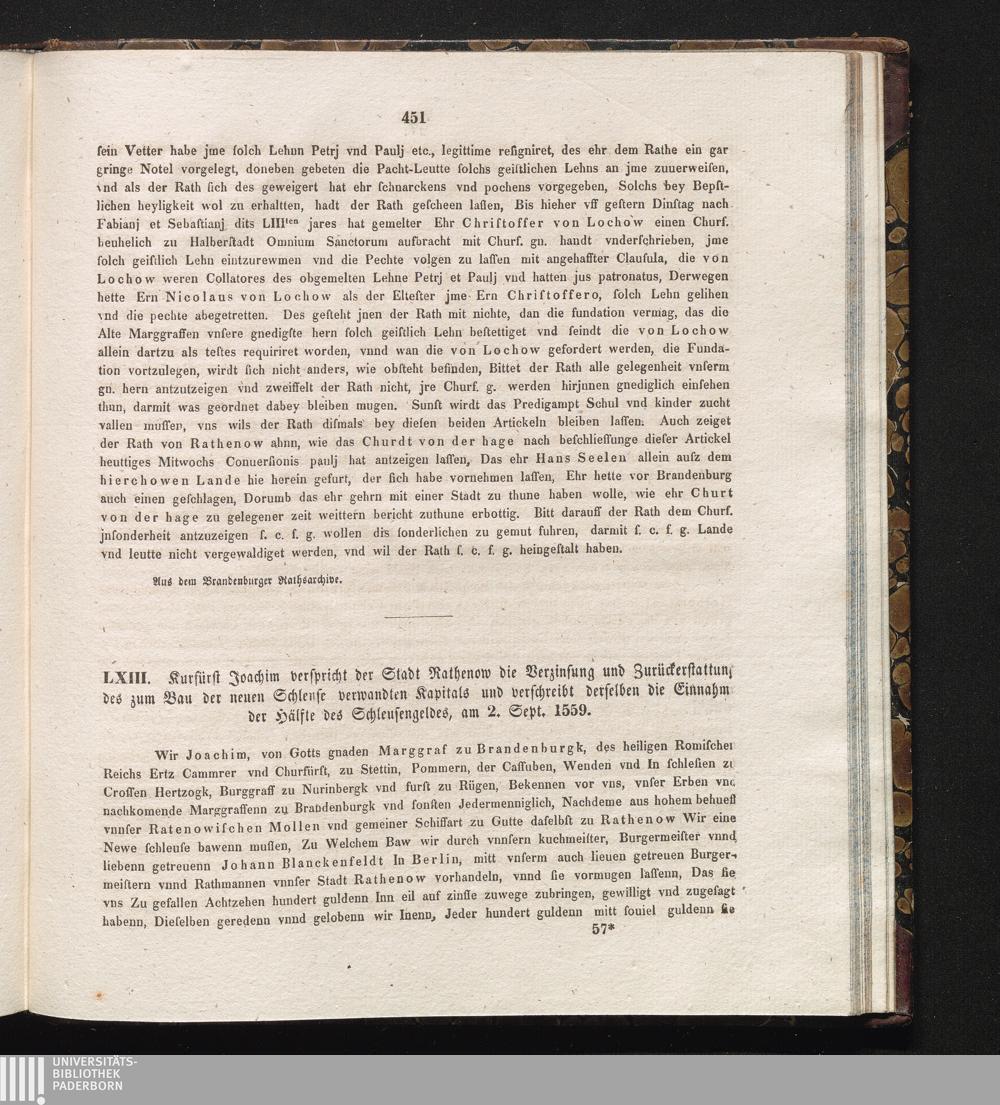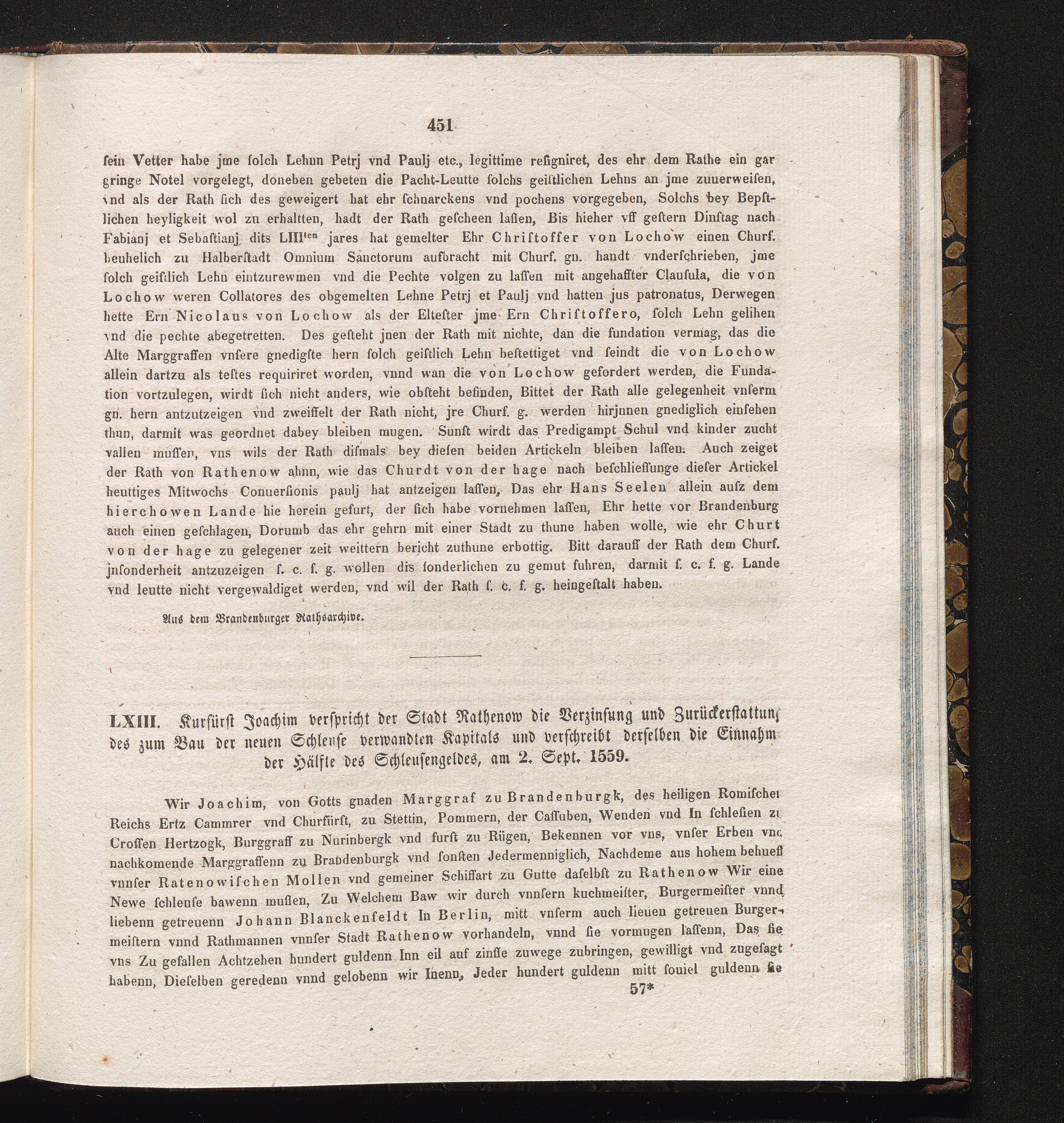 LXIII. Kurfürst Joachim verspricht der Stadt Rathenow die Verzinsung und Zurückerstattung[...]