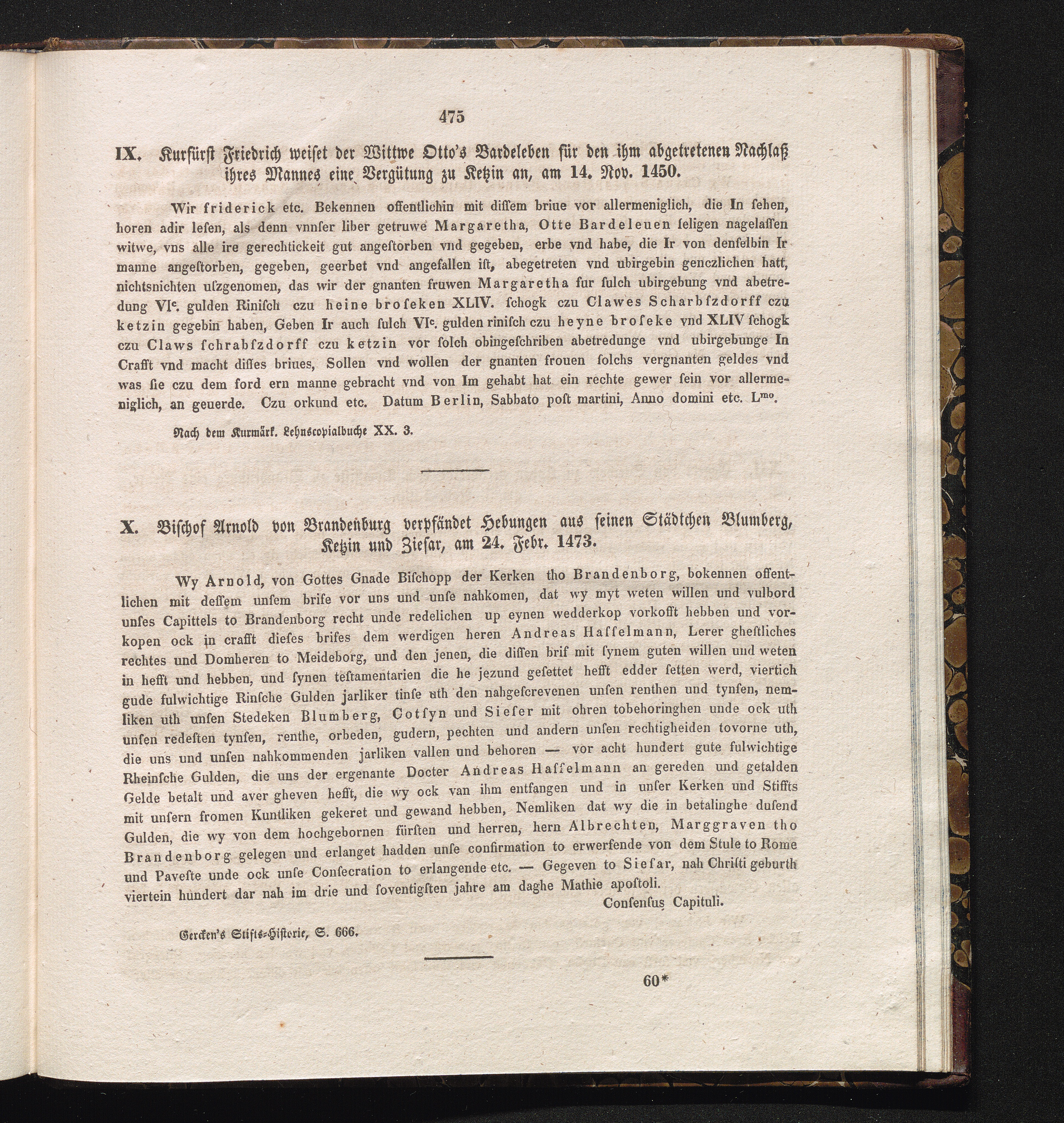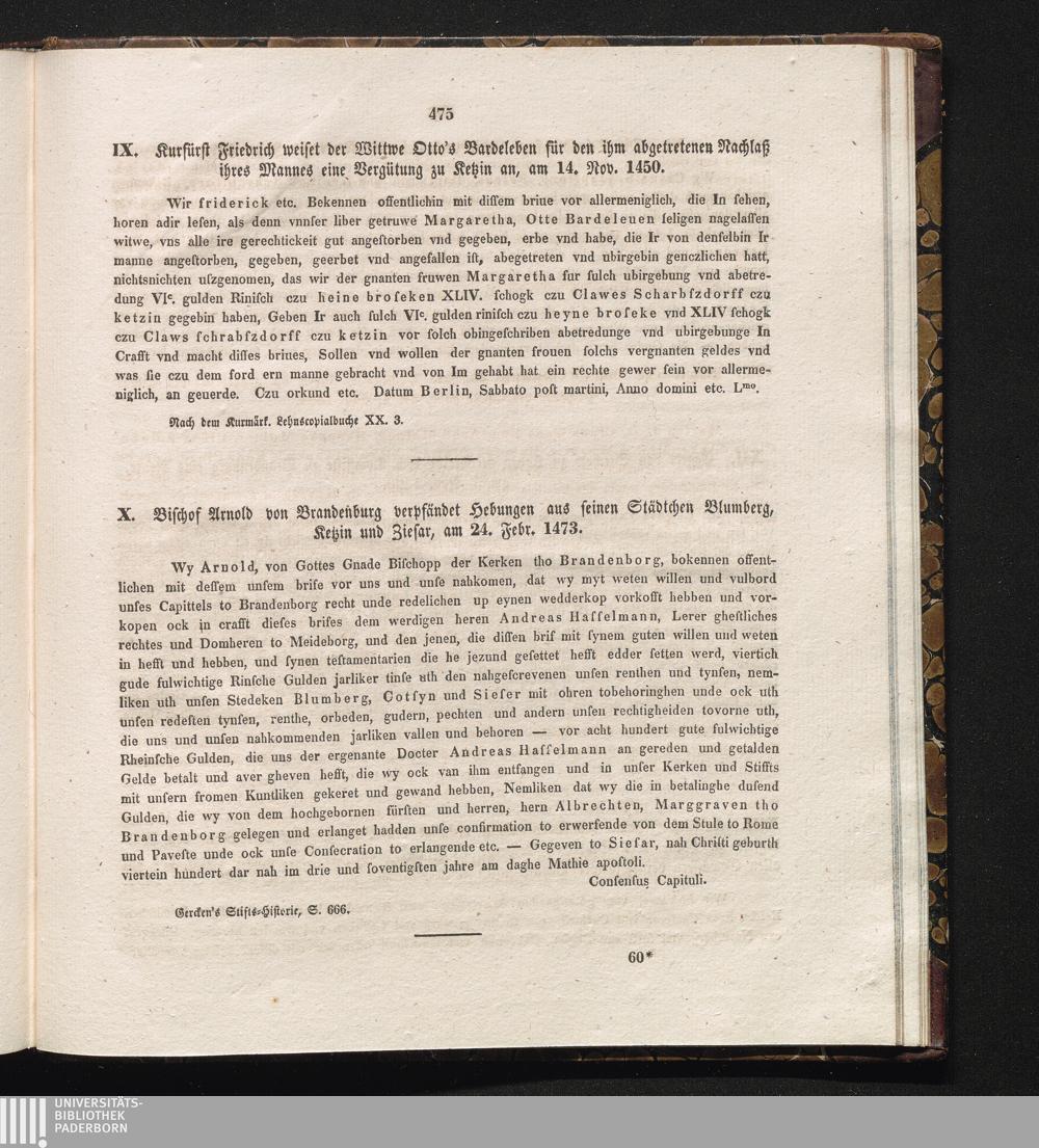 X. Bischof Arnold von Brandenburg verpfändet Hebungen aus seinen Städtchen Blumberg,[...]