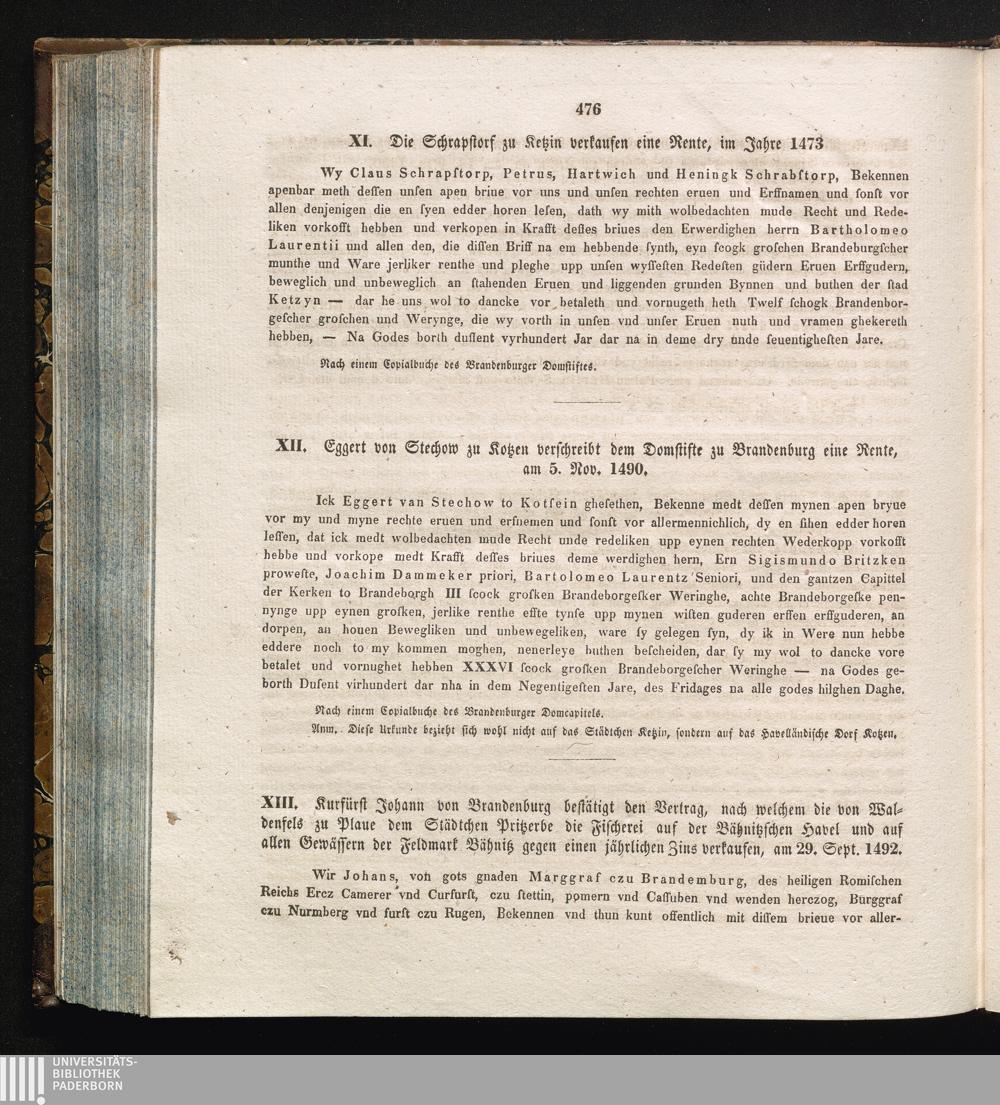 XIII. Kurfürst Johann von Brandenburg bestätigt den Vertrag, nach welchem die von[...]